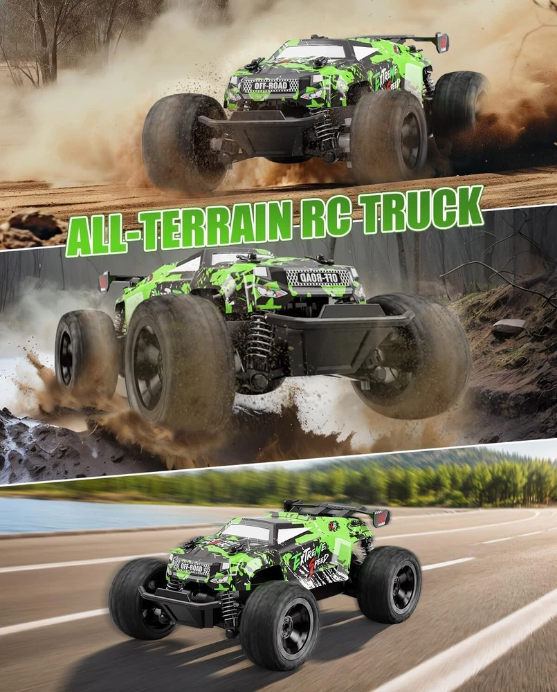 Remote Control Car for Boys 4-7, 2.4Ghz RC Monster Trucks for Boys Age 4-7 & 8-12, 1/18 20 KM/H Off-Road Remote Control Truck Toys W/ 2 Rechargeable Batteries for 40 Min Play, for Boy Girls 【Remote Control Car is a fantastic choice for beginners】 This 1/18 scale remote control monster trucks is equipped with an upgraded motor, reaching top speeds of up to 20 km/h. It not only has excellent acceleration but also allows for agile cornering, making it an easy-to-operate option for beginners. This remote control car for boys 4-7 8-12, serving as an exciting outdoor and indoor toy truck. Its robust structure and dynamic performance promise thrilling experiences, regardless of where your adventures take you. 【Cool Graffiti Car Shells and LED Car Lights】 We have equipped this remote control car with two different color graffiti car shells, so children can choose their favorite color to race. At the same time, we have also fitted the remote control car with cool LED car lights. This allows children to experience the fun of racing even at night. This not only increases visibility for safer night racing but also adds a certain flair to the car's design, making racing even more thrilling and fun.
