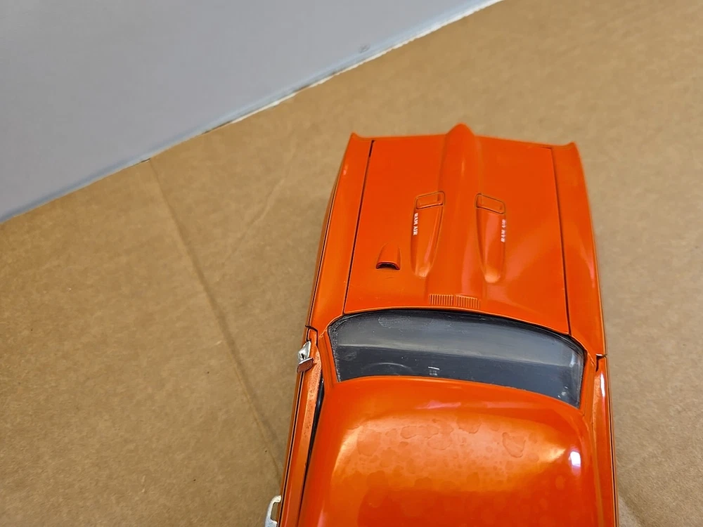 This 1:18 scale diecast model of a 1969 pontiac GTO. It comes with out its original box .No box .this in displayed condition. Littledusty but still very cool in your man cave.driverside door mirroris broken and missing.everthing eles looks ok. So this is being sold as a no box die cast car.comes just as you see it. Please ask any and all questions before purchasing