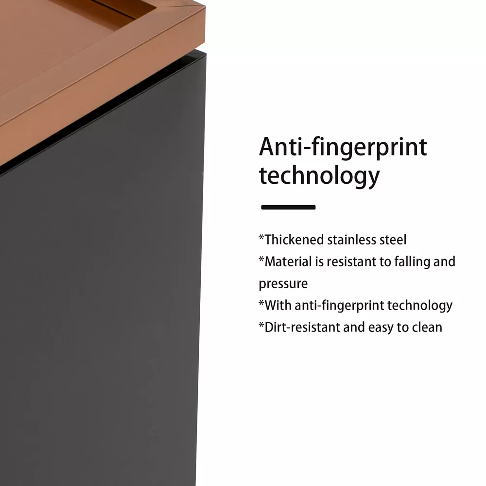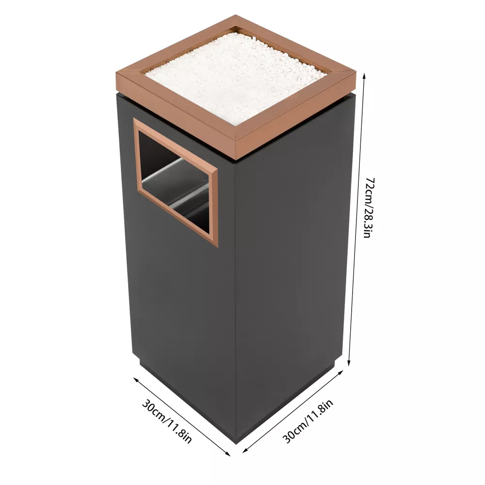 Specifications Color: Black, Rose Gold Material: 201 Stainless Steel, Galvanized Iron Process: Electroplated Mount Type: Floor Mounted Assembly Required: No Capacity: 15L/3.96Gal Product Size: 30*30*72cm/11.81*11.81*28.35in Packaging Size: 32*32*74cm/12.6*12.6*29.13in Gross Weight: 9kg/19.84lbs Net Weight: 8kg/17.64lbs 11.81in Commercial Trash Can Open Top Industrial Garbage Can 15L Capacity Description With solid construction and ample capacity, this trash can be an excellent waste disposal solution for indoor shopping malls. The large opening at the front and the ashtray at the top make it convenient to throw garbage and extinguish cigarette butts from all directions, effectively preventing fires caused by cigarette butts. Additionally, the black and rose gold finish makes this product a great addition to a variety of establishments where it will easily fit in. Key Features Build to Last: The 201 stainless steel, galvanized iron, and electroplated process can protect the product from corrosion, rust, deformation, and abrasion, keeping it glossy and practical for long-term use. Large Capacity: The inner barrel has ample capacity( 3.96gal ) to meet the waste disposal tasks of high-traffic crowds to keep the environment clean. Thoughtful Design: The large opening design allows you to put trash into it with ease. In addition, the ashtray with stones for fire extinguishing prevents hot cigarette butts from directly contacting the product and also prevents it from entering the inner barrel directly and causing fire accidents. Good Appearance: The black and rose gold exterior gives this product a touch of luxury and beauty, making it an ideal complement that can easily blend into a variety of different environments. Easy to Clean: The removable inner barrel allows you to easily dump the garbage. The smooth surface is anti-fingerprint , allowing you to easily clean it with a damp cloth. Simple Installation: Its simple structure and the needed expansion screws allow you to easily and quickly finish the installation. Convenient Design: The inner barrel comes with convenient handles for you to move and carry the barrel and dispose of internal garbage. Customer Service: We aim to provide quality products and services. If you have any problems, please feel free to contact us. We will reply and solve the problem for you as soon as possible. Details Sturdy Base: The thickened and reinforced base is stable, wear-resistant , hard to detach, non-slip , and waterproof , providing sturdy support for the product and preventing the floor from getting scratched. Burr-free Surface: The smooth surface without burrs can protect your hands from getting scratched during installation or in daily use. Application The product is suitable for restaurants, banquet halls, conference venues, cafes, industrial, medical, hallways, hospital corridors, hotel lobbies, office buildings, campuses, kitchens, living rooms, bedrooms, etc. Specifications Color: Black, Rose Gold Material: 201 Stainless Steel, Galvanized Iron Process: Electroplated Mount Type: Floor Mounted Assembly Required: No Capacity: 15L/3.96Gal Product Size: 30*30*72cm/11.81*11.81*28.35in Packaging Size: 32*32*74cm/12.6*12.6*29.13in Gross Weight: 9kg/19.84lbs Net Weight: 8kg/17.64lbs Package Included 1* Trash Can Other Needed Accessories Notes Please check the size carefully before ordering. It is normal that the expansion screw will blow up after the force is applied. Please allow the slight color difference caused by the shooting light and 1-3cm error due to manual measurement, and make sure you do not mind before you order. Payment Delivery details Terms of sales About us Contact us Payment We accept ebay payment 。 Fees such as import duties, taxes are not included in the item price or shipping costs. These charges are the buyer's responsibility. Delivery details Shipping: 2-9 working days to: USA Terms of sales We maintain high standards of excellence and strive for hundred percent customer satisfaction. Feedback is very important to us. We hope that you contact us immediately before you give neutral or negative feedback, so that we can address your concerns. It is impossible to address issues if we do not know about them! About us Your satis faction is our ultimate goal. We work hard to earn your trust and future business. Our certified technicians have tested each item before shipping. The unit comes with 1 year limited warranty on all manufacturing defects. a) If you receive a defective item, you may return it or ask for a discount. Please contact us within 14 days after you receive the package. b) What you returned must be intact and in its original packaging as re? u. Customer is responsible for shipping costs of the returned item. c) We will cover the cost of shipping back t with the shipping rate indicated in the registration page. We will send you a new unit or refund the full payment you paid. Thank you. Contact us Business Hour Business Hour: Monday To Friday: 8:30 AM to 5:00 PM (Beijing China time) Due to time zones, our reply to your questions may not be immediately. But within above working time, we will reply your email within 24 hours. If it's non-workdays, please kindly be patient and wait till Monday. Please contact us with ebay message. Please feel free to contact us if you have any questions. Monday To Friday: 8:30 AM to 5:00 PM (Beijing China time) Due to time zones, our reply to your questions may not be immediately. But within above working time, we will reply your email within 24 hours. If it's non-workdays, please kindly be patient and wait till Monday. Please contact us with ebay message. Please feel free to contact us if you have any questions. Brand Unbranded Item Height 72cm/28.35in Item Length 30cm/11.81in Item Width 30cm/11.81in Type Trash Can Room Home Office/Study Material 201 Stainless Steel, Galvanized Iron Color Black, Rose Gold Size 30*30*72cm/11.81*11.81*28.35in Capacity 15L/3.96Gal MPN Does not apply Shape Rectangle 