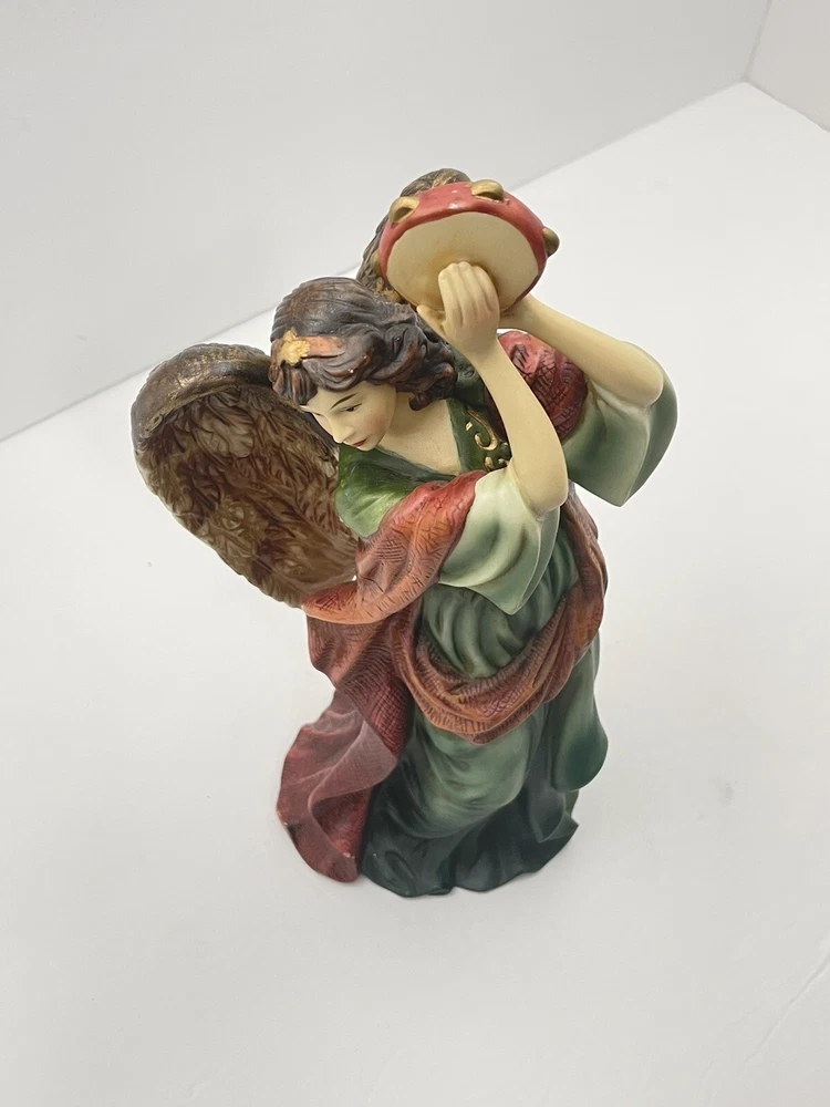 11"H x 4.75" LAngel with Musical Instrument Fine Hand Painted Porcelain Figurine