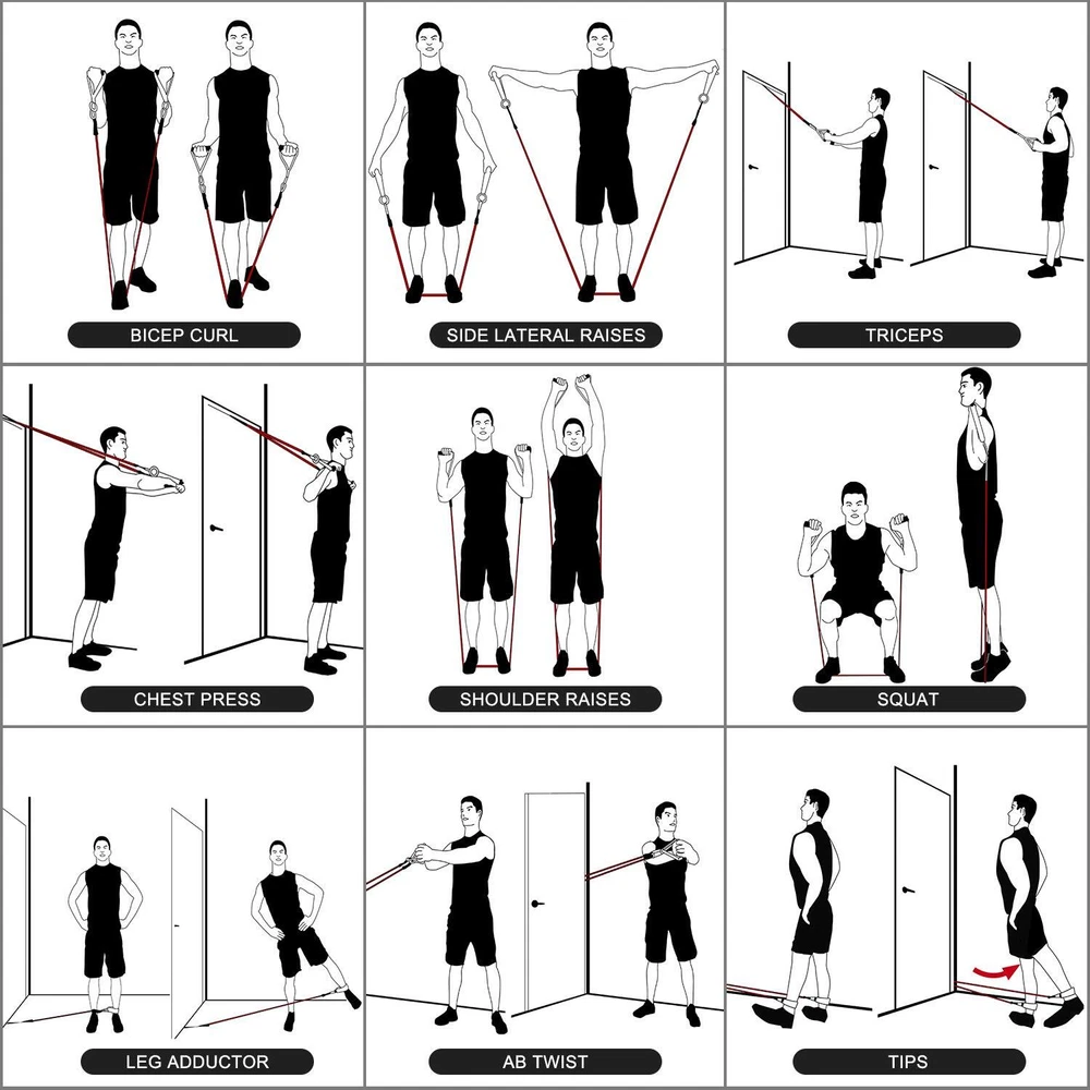 Transform your fitness routine with the 11-Piece Resistance Bands Set, your all-in-one solution for effective home workouts. This comprehensive kit includes everything you need to sculpt, tone, and strengthen your entire body without bulky gym equipment. Our premium-quality resistance tubes offer varying levels of resistance up to 150 lbs, allowing you to customize your workout intensity and progress over time. The set includes a door anchor and ankle straps, expanding your exercise options to target every muscle group effectively. Whether you're a fitness novice or a seasoned athlete, this versatile set adapts to your needs. Its portable design makes it perfect for use at home, in the office, or while traveling, ensuring you never miss a workout. Crafted with durability in mind, our resistance bands are built to withstand intense training sessions and deliver long-lasting performance. To help you get started, we've included a free exercise guide packed with workout ideas and proper technique instructions. Elevate your fitness journey today with the Resistance Bands Set - your key to achieving your health and fitness goals anytime, anywhere. COMPLETE HOME GYM: The 11-piece set provides everything needed for a full-body workout, including various resistance tubes, handles, ankle straps, and a door anchor, eliminating the need for bulky exercise equipment SUPERIOR DURABILITY: Constructed with 100% natural latex, these bands offer unparalleled resilience and performance. Latex outperforms cheaper TPE (Thermoplastic Elastomer) alternatives by providing greater elasticity, higher tensile strength, and better snap-back. This premium material ensures a safer, more effective, and longer-lasting workout experience. CUSTOMIZABLE RESISTANCE: Premium-quality tubes offer resistance levels from 10 to 150 lbs, allowing users to tailor workouts to their strength and gradually increase intensity as they progress VERSATILE EXERCISE OPTIONS: Door anchor and ankle straps expand the range of possible exercises, enabling users to target every muscle group effectively, from upper body to core and lower body ALL FITNESS LEVELS ACCOMMODATED: Suitable for beginners starting their fitness journey, as well as advanced athletes looking to supplement their training, with adjustable resistance to match any skill level EXPERT GUIDANCE INCLUDED: A comprehensive free exercise guide provides professional workout routines, proper form instructions, and tips to maximize results and prevent injury ONE-YEAR WARRANTY: Our commitment to quality and customer satisfaction is reflected in this warranty, which covers defects in materials and workmanship for a full year from the date of purchase. If you experience any issues with our products during this period, please don't hesitate to contact us. We will work with you to resolve the issue or provide a replacement product if necessary.