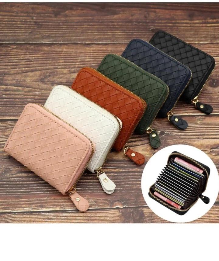 11 Credit Card Slots Wallet for Men Women Woven Debossed Leather Zipper Around