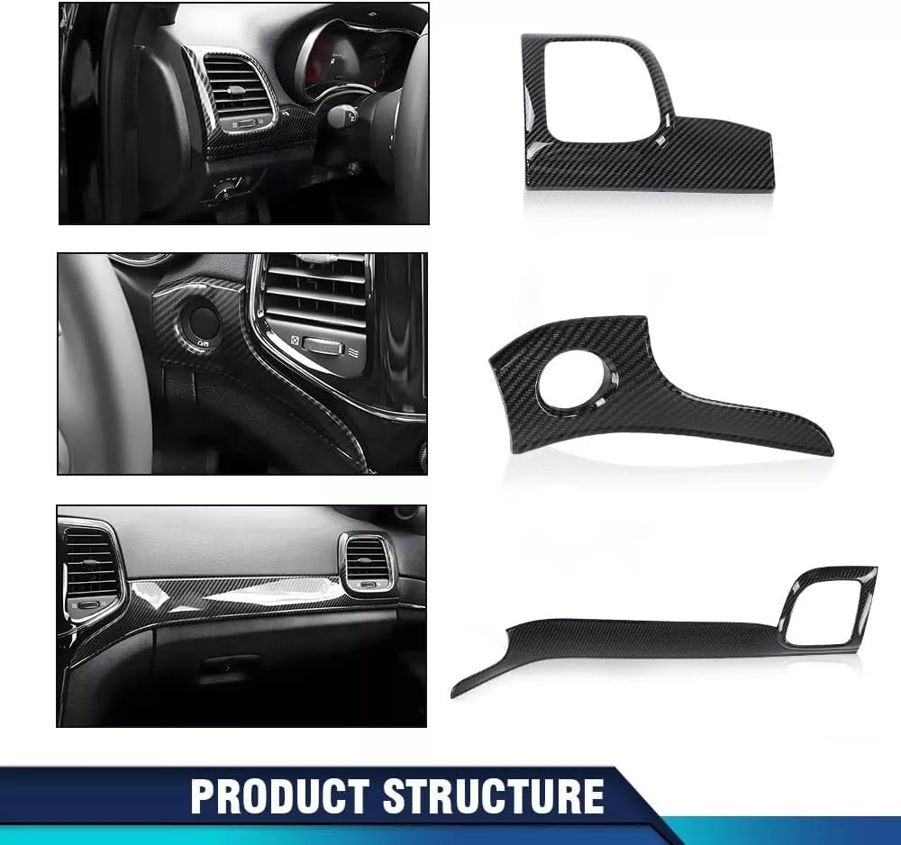 11X Carbon Fiber Interior Decor Cover Trim Strip Kit for Jeep Grand Cherokee 11+ Product description 【PERFECT FITMENT】Interior Accessories Decor Center Console Interior Trim Kit Compatible with Jeep Grand Cherokee 2011-2020 【HIGH QUALITY】Made of high quality ABS plastic, sturdy and durable.Will not fade and crack when driving 【CARBON FIBER GRAIN】Carbon fiber grain design, made your car looks more fancy and sporty, performs like a racing car when you driving 【EASY INSTALLATION】Easy installation with self-adhesive tape, fit quite tight and nice (Do a little cleaning and heat the tape a little before installation will help the cover stick in place better) Fitment Fit For For Jeep Grand Cherokee 2011-2020 Features - Material: Made of High Quality ABS - Paint Baking and UV Treated on surface - Easy installation with double-sided tape - Color: Carbon fiber Grain - it was not the replacement part. - Please confirm your car model is as same as the picture before submitting your order - NOTE- In case it fall off for some car models, just add some tape and put the cover back on,then they will work perfectly Package include: • 11 pieces/set Dashboard Panel &Door Handle Trim Bezel Installation Guide: Step1: Please clean the installation place and keep it dry and no dust on. Step2: Tear off the self-adhesive on the back. Step3: If the weather is below 15 degrees,you may need to heat the Self-adhesive with a hair dryer for better adhesion. Step4: Do not wash the car within 48 hours after installation. Attention: If you do not want,you can remove it easily.No glue left or you can erase it. Payment Return Shipping About Us FAQ Payment Payment Information Immediate payment is required upon selecting "Buy It Now" or upon checking out through the basket. We only accept payment via PayPal. When making a payment to us via PayPal, you can use your existing PayPal account. No financial information, passwords, credit card numbers or personal information other than your name, email address and shipping address is received by us. Although PayPal is extremely secure, Jecar is not responsible for protecting the personal information you share with them. You are encouraged to read the related PayPal policies carefully. Promotional:Please note that website discounts, coupons, and gift cards are not valid for use on eBay. Return -We hope that you will be pleased with your order. However, in the event that your order is not suitable, we are happy to accept returns for a refund (excluding postage) or an exchange with 30 days of purchase. -It is very important that you include a note with your eBay ID, name, reason for returning and return requirements. -In the event of a return, the customer is responsible for postage costs. It is highly unlikely that a product may be faulty, however in the case returning postage will be refunded on arrival. Exchange and Refund Process Returns are handled on a daily basis therefore your exchange or refund will be posted on the day that your return arrives; you will also receive an email to confirm this. Exchanges will be posted to the address associated with the original order (unless otherwise stated) and refunds will be issued to the original payment method only. PLEASE NOTE: All products that have been used or original packaging is incomplete will be charged 25% restock free Shipping Delivery Information: All orders are dispatched within 1~3 working day upon receipt of payment. This is an insured and tracked service with a transit time of 1-5 working days depending on postal service selected. Delivery times may vary, especially during peak periods. We currently ship to the United States. About Us Welcome! Welcome to TESIN, one of the fastest-growing online retailers of automotive parts and accessories today! We're proud to offer all of the leading brands in performance gear, interior accessories, and style upgrades, at prices suitable for any budget. Most importantly, we back every one of our products with the best one-on-one customer service you'll find anywhere. Customer Service Forget about those faceless online stores that hide behind hard-to-find contact info and robotic phone menus. At TESIN, serving our customers is priority number one. That's why, when you give us a call or chat with us online, you'll be communicating with a real person right here in Illinois. Whether you have questions about a particular product, want to place an order, or need to return an item, our experienced sales and service staff is ready to take your call. After all, YOU the customer are the most important part of our business! Don't just take our word for it, either. TESIN is proud to be a Better Business Bureau-accredited business with an A+ rating, a Google Trusted Store, and a Bizrate Customer Certified Store. With these kinds of credentials, we're a company you can count on. Customer Reviews If you want the most real, road-tested info about one of our products, don't take it from us - let your fellow auto enthusiasts share their experiences with our Customer Reviews. All of our Customer Reviews are written by real Jecar customers who have used our products and want to share their opinions. From fit and finish to performance and durability, our Customer Reviews will help you decide on the perfect parts for your vehicle. FAQ Frequently Asked Questions Q: How do I order? A: You can place your order online at any time using eBay secure shopping cart. Q: How do I pay for my order? A: We accept Visa, Mastercard, Discover, American Express, PayPal. Q: How will my order be shipped? A: We offer Ground Shipping for US orders ONLY (including Alaska and Hawaii). Q: What are your shipping and handling rates? A: Shipping and handling rates vary by product. Almost all of our items shipped within the continental U.S. come with Free Shipping, however, due to weight and occasional handling fees some of our products have a shipping charge. All shipping fees will be displayed on individual items bef