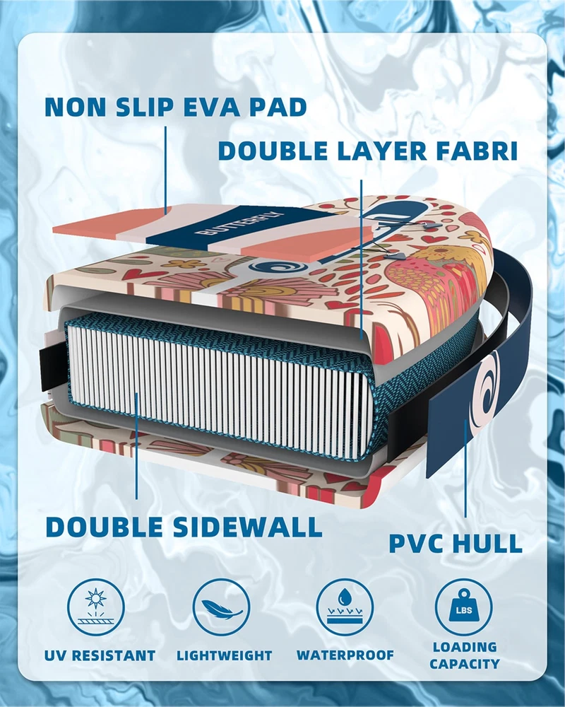 Sup Inflatable Paddle Board for Adults Youth, Stand Up Paddle Board Inflatable with Accessories, Blow up Fishing Paddle Board for Yoga, Isup Board Classic Series: The color combination of Paddle board has a unique charm, like the foam shining on the waves. can both meet the outdoor lovers' pursuit of fashion and quality. Material&Size: sup board is made of High-quality military-grade PVC material, which's more lightweight and durable. Measuring 11' x 33" x 6", sup can carry up to 400 pounds on water. All-round Sup: Four detachable fins and extra-wide design create extreme balance and stability for isup, Suitable for adults and teens of all skill levels. Paddleboard also suitable for Yoga, Surfing, Fishing, Travel and other Water Sport. Isup Accessories: sup suit includes 1 adjustable paddle, 3 removable fins, 1 safety leash, 1 pump(show PSI Reading), 1 surf backpack, 1 waterproof phone bag. Great Service: inflatable paddleboards come with one-year manufacturer's warranty. If you have any questions about isup board, please feel free to contact us.