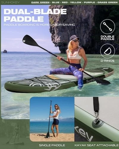 Return Policy Fast Delivery Trusted seller 11'×34'' Extra Wide Inflatable Paddle Board with Seam Welded Technology, Stand Up Paddle Board, 420lb Capacity for Adults, Sup Board for All-Level with 2-Blade Paddle/Dual-Action Pump/Leash Product Description 【Welded Rail Technology—Zero Leakage, Lifetime Durability】Engineered with advanced heat-welding, the board’s top/bottom layers bond seamlessly with rail bands for a permanent, airtight seal. No more worrying about leaks—conquer calm lakes or choppy rivers with confidence, knowing your SUP is built to last. 【Double-Action Pump (50% Faster) + Floating Dual-Blade Paddle】Included double-action pump inflates/deflates 50% quicker than single-action models, getting you on the water in no time. The lightweight dual-blade paddle floats effortlessly (never sinks!) and reduces arm fatigue by 30%, paired with removable triple fins for precise tracking—perfect for beginners and pros. 【34-Inch Wide Deck & 420LB Capacity—Family-Friendly & Fishing-Ready】Crafted with military-grade PVC, the 11ft SUP features an extra-wide 34-inch deck to comfortably fit adults, kids, and pets. Mid/tail handles ease single-person transport, while front/rear bungee cords secure fishing rods, coolers, or speakers. 14 reinforced D-rings support kayak seat attachment (sold separately) for versatile lakeside adventures. 【Versatile Water Adventures, Day or Night】The 11ft large deck accommodates standing fishing, seated picnics, or SUP yoga sessions. Attach LED lights via D-rings (sold separately) for magical moonlit paddling. Conquer calm lakes, gentle ocean waves, or winding rivers with confidence. Share the board with loved ones – every glide becomes a cherished memory of laughter and exploration. 【Risk-Free Purchase, Reliable Support】 Backed by a 30 - day return policy and a 1 - year warranty, along with an instruction manual. Our 24/7 customer team resolves issues swiftly and ships replacement parts globally. Focus on making family water memories – handles the rest! Shipping Returns Payment Shipping Shipping is FREE to all addresses other than APO/PO boxes in the lower 48 states. All our stock ships from US-based warehouses. Shipped via USPS or UPS (depending on location and package weight) Unless stated otherwise, all orders will ship within 24-72 hours of your payment being processed. Check our feedback to see the great reviews of FAST shipping we offer. Returns Seller does not accept returns Payment We currently accept payment via eBay managed payments only. Once payment is cleared, we will dispatch your shipment within 1-3 business days. Please refer to the "Shipping" tab for more information regarding shipping speed to your destination.