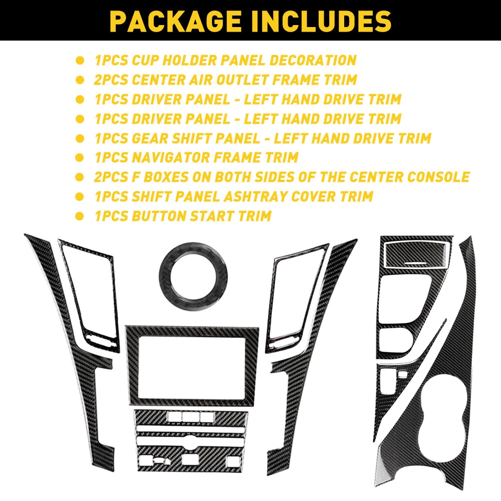 Carbon Fiber Full Interior Kit Set Cover Trim For Infiniti Q50 Q60 2014-2019 Fits for: Infiniti Q50 Q60 2014-2019 Material: Real carbon fiber Features: *High-quality material The real carbon fiber made by glue dropping process is completely different from the carbon fiber made by water transfer printing process. *Perfect match Manufactured according to the original one for matching your vehicle perfectly. *Protection The exquisite texture of gear shift cover improves the interior grade and protects the car's body. *Simple installation There will be no damage or curling problems during installation. 11x Carbon Fiber Full Interior Kit Set Trim Cover For Infiniti Q50 Q60 2014-2019 Carbon Fiber Full Interior Kit Set Cover Trim For Infiniti Q50 Q60 2014-2019 Fits for : Infiniti Q50 Q60 2014-2019 Material: Real carbon fiber Features: *High-quality material The real carbon fiber made by glue dropping process is completely different from the carbon fiber made by water transfer printing process. *Perfect match Manufactured according to the original one for matching your vehicle perfectly. *Protection The exquisite texture of gear shift cover improves the interior grade and protects the car's body. *Simple installation There will be no damage or curling problems during installation. Packaging include: 11 xCarbon Fiber Decals Note: 1.Please allow 1-2cm differs due to manual measurement. 2.The real color of the item may be sligtly different from the pictures shown on website caused by many factors such as brightness of your monitor and light brightness. 3.For any questions please feel free to contact us. 4.Please check your car model before purchasing!!! Item Specifics Brand unbrand Finish Smooth Fitment Series For Infiniti Q50 Q60 2014-2019 Color Black Fitment Type Direct Replacement Material Carbon Fiber Placement on Vehicle Front, Left, Right Type Car Accessories Performance Part Yes Manufacturer Warranty 1 Year FAQ ♥ If you have a decoding problem or any other problems, please contact us first, we will help you with it. We will reply you within 24 hours in working days. I'm a new seller, thanks a lot for your trust and convince! I will serve you with all my heart. ♥ Q1: Will this bulb fit my vehicle? A: We can match almost any vehicle to one of our bulb sizes. eBay only lets us include some vehicle fitments per listing, but if your vehicle does not show up on the compatibility table at the top of our listings, welcome you to contact us for free consulation before purchasing a product. Q2: My item has not arrived, what's taking so long? A: Sometimes items take longer than expected, especially if it’s going far or to rural area. Check with your post office to see if your item has been held up. Sometimes Royal Mail will not update a tracking number until it has arrived at its destination. If your item still don't arrive after a few days, let us know so we can double check for you and help solve it asap. Q3: My bulbs won't fit, help! A: Special bulb holder may be required. See if you can take the holder from the stock bulb. If not, let us know. The bulb size may be wrong, double check the item you received with the item you ordered. Do you have an aftermarket lighting housing? These may not be perfectly fitted for aftermarket bulbs and will require some manual modifications. Q4: Neither side lighting up? Both sides flicker, hyper flash, or work inconsistantly. A:Check the light fuses, and then check the ballast plugs to insure correct installation. If this doesn't work, there may be a voltage problem with the vehicle. You probably just need a relay or capacitor. Even though some bulbs are builtin resistors, they may still need a decoder. Pay & Ship (1). We gladly accepts payment via PayPal, We will ship your item(s) within 24 hours. (2). Before payment, please keep the consistency of Paypal address and ebay address. (3). Quantity orders are welcome! Returns (1). We offer 60 days free return policy. Please contact us within 60 days from the date you receive your order if you have any issues with the product or want return. Refund will be send after we got your resend package. (2). All returned items should be in the original packaging , return tracking information should be provided . Contact Us (1).Negative feedback will not help resolve any problems you have, please contact us via eBay messages before leaving negative feedback , our customer service will make best effort to help you with the issues. (2).We maintain high standards of excellenceand strive for 100% customer satisfaction! Feedback is very important to us. We request that you contact us immediately before you give us neutral or negative feedback, so that we can satisfactorily address your concerns. About us We're professional in car and motorcycle accessories, especially in LED bulbs. We have our own factory and R&D team. Our belief is to sell top quality items that fit your car and serve you with our heart. Anything please feel free to contact us! Our customer service is very responsibility. Come and follow us! DESCRIPTION NEW ARRIVED HOT SALE CONTACT US SAVE US Store Category Store Home Other Hot Item Windshield Reveal Surround Molding Trim For 2006-2011 Honda Civic 73150-SNA-003 USD 12.98 For Dodge Charger 2011-2021 6pc Black Pillar Posts Set Door Trim Piano Cover Kit USD 12.99 Car Trunk Organizer Oxford Interior Accessories Back Seat Storage Bag 4 Pocket USD 15.89 4x Car Accessories Universal Front Rear Mud Flap Flaps Splash Guard Mudguards US USD 24.99 Fire Extinguisher Holder,Car Accessories for Jeep Wrangler Tj Jk Jl 1997-201 USD 9.79 New List Item Rubber Seal Shape U Protector Slim Weather Edge Stripping Waterproof 10ft Car EC USD 23.99 For 2014-2020 Windshield Rogue Nissan Window Wiper Cover Cowl Panel Right Left USD 14.99 10FT Car Door Protector Sill Scuff Cover Sticker Bumper Body Anti-Scratch Strip USD 10.84 Front Windshield Wiper Side Cowl Extension Cover Trim For Toyota RAV4 5386742012 USD 12.99 Front Right Side Fog 