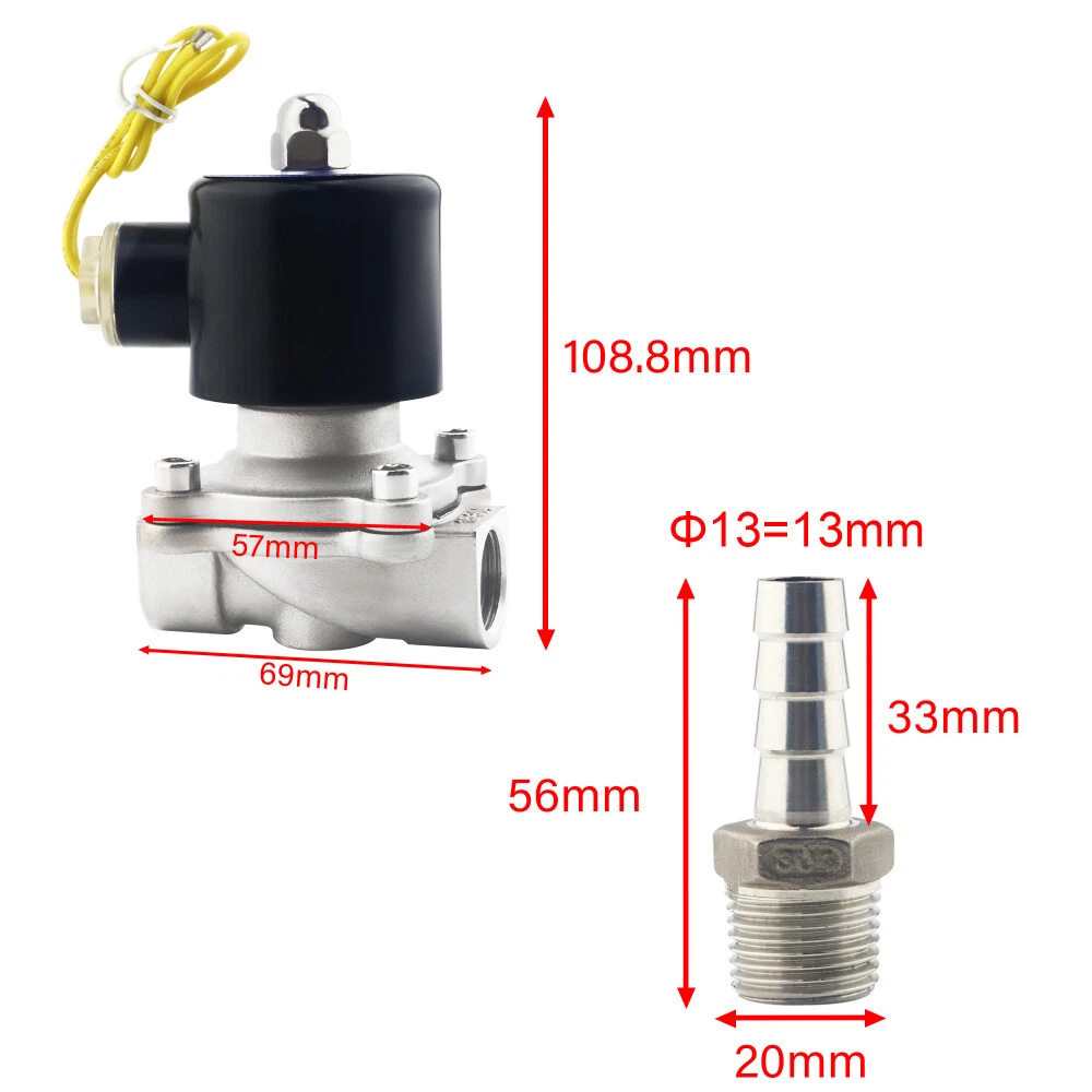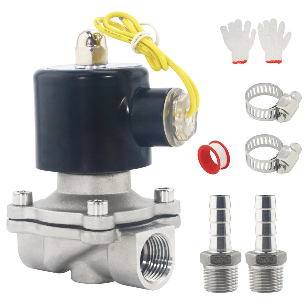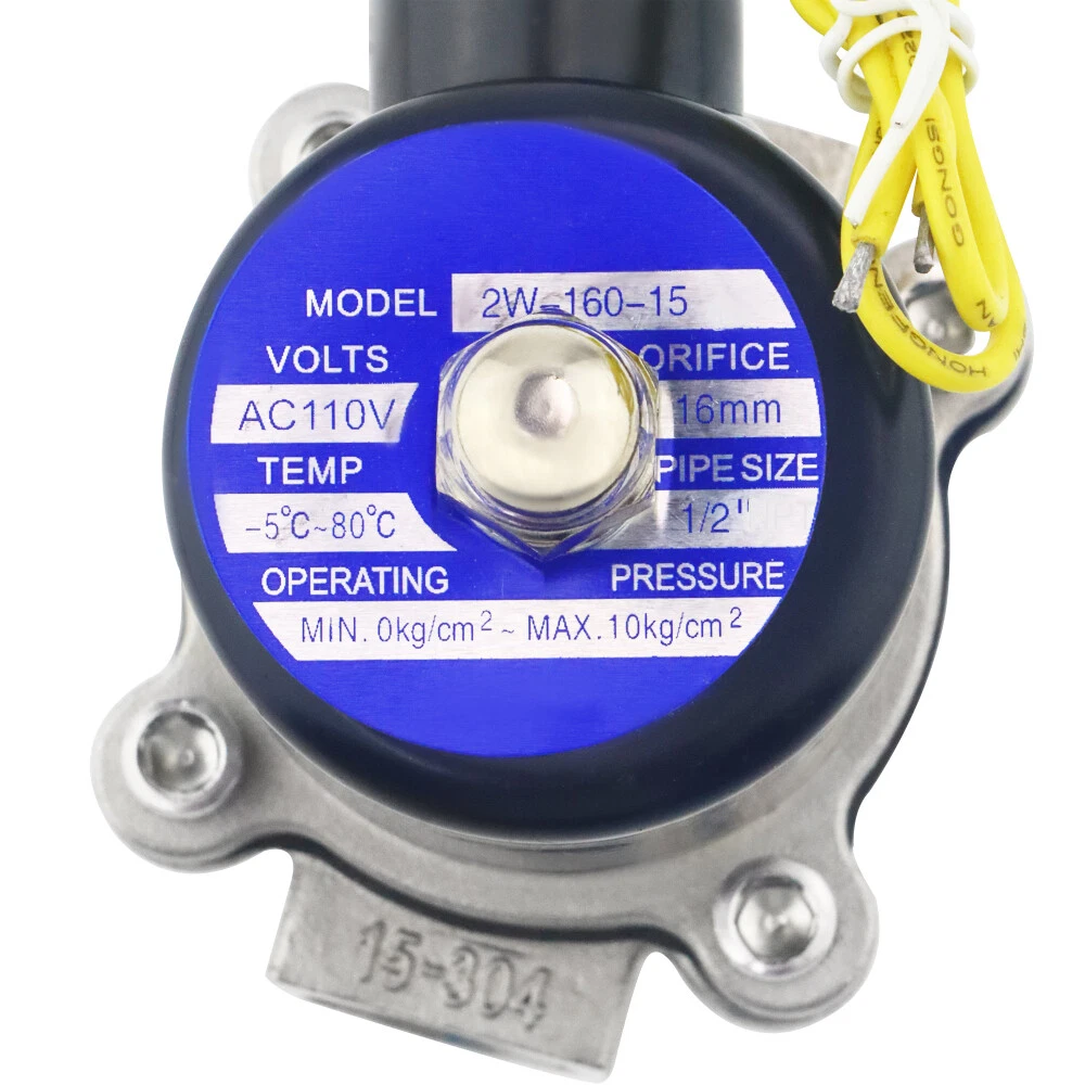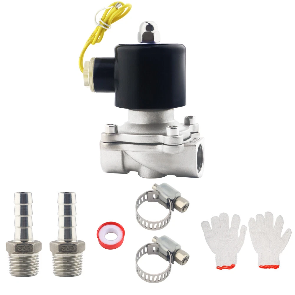 ★Feature★-------------------------------------------------------------------------------------- 1.Constructed with 304 stainless steel, this valve is very durable and resilient, leak resistant, corrosion resistant, and optimal for higher pressure and temperature projects. It can be used with drinking water or other water projects, gasoline, diesel fuel, kerosene oil, natural gas, air etc. 2.This valve with the ability to resist high temperatures and corrosive chemicals and other fluids like gasoline, diesel fuel, oils, and lubricants. 3.This highly responsive valve will open and close in less than 1 second when actuated; meaning it will open or close the flow instantaneously when energized or de-energized. 4.PLEASE NOTE: This valve is NOT a continuous duty valve and should NOT be in continuous use for more than 8 hours in a single cycle; to do so will shorten the life of the valve and may cause the core of the valve to burn out. ★Package Content★--------------------------------------------------------------------------- 1 × 2W-160-15B AC110V (Solenoid Valve) 1 × Teflon Tape 2 × Brass Fitting 1 x pair of gloves 2 × Hose Clamp Payment Shipping Returns Contact Us ★We accept Paypal payment only. ★We will leave a positive feedback immediately after payment is received. We appreciate a positive feedback as much as you do. If for some reason there is any issue with the purchase, please contact us prior to leaving feedback, we will be glad to work together and provide a satisfying solution. Package handling only takes 1 business day at our warehouse, so please make sure entering correct payment and shipping information before checking out. Please contact us before you open a return case,we'd offer you the best solution. Please contact us if you have any questions about the product,we're waitting to help you all the time.