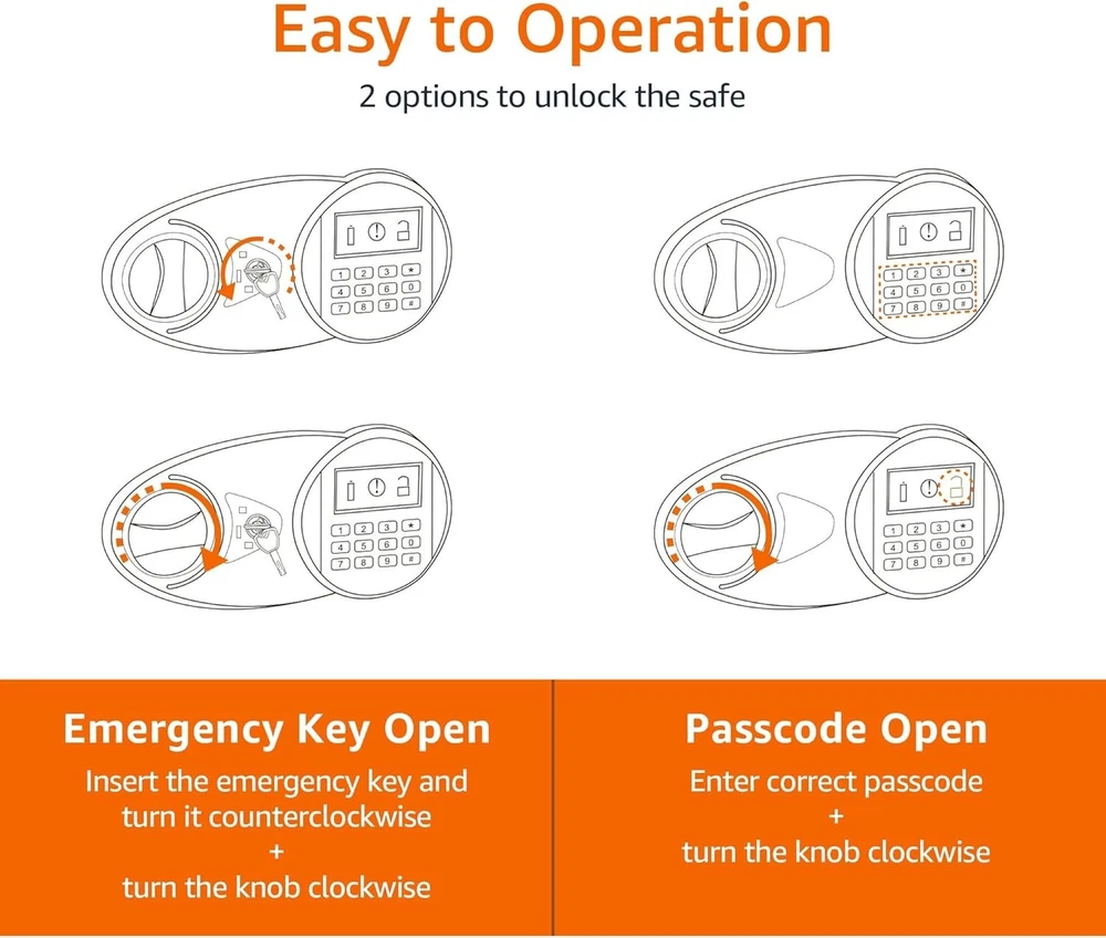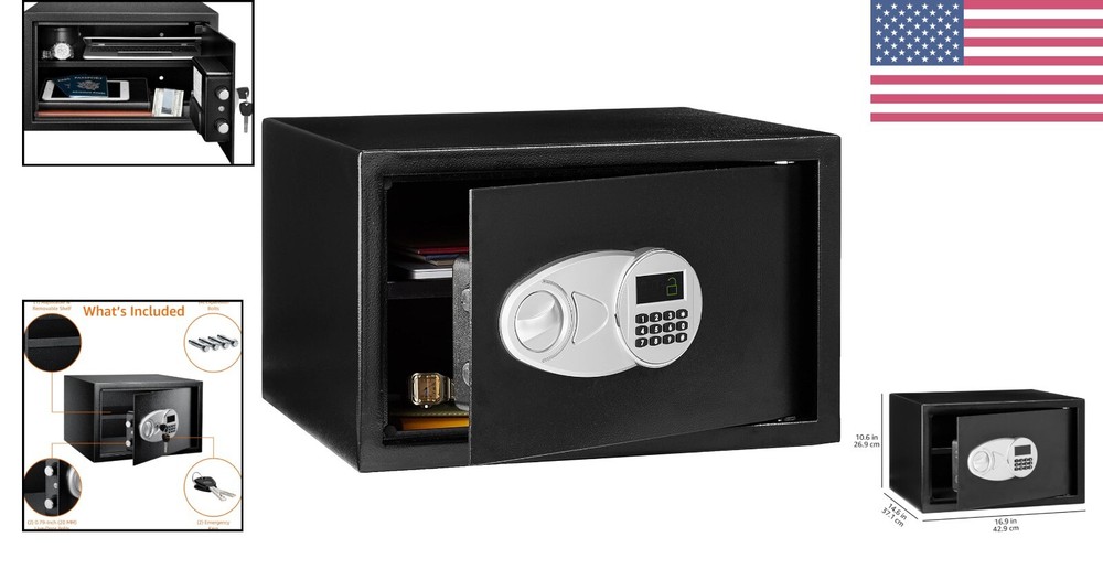 Compact 1.2 Cubic Feet Security Safe with Electronic Lock and Adjustable Shelf < class="slides"> ‹ › ‹ › ‹ › ‹ › ‹ › ‹ › ‹ › ‹ › ‹ › ‹ › ‹ › ‹ › Compact 1.2 Cubic Feet Security Safe Secure your most valuable possessions with the ultimate peace of mind using our Compact 1.2 Cubic Feet Security Safe . Designed for both convenience and security, this state-of-the-art safe is ideal for home, office, or travel. Key Features: <> Generous 1.2 cubic-foot capacity provides ample space for valuables, documents, and more. Advanced electronic lock system with two emergency override keys for added security and easy access. Top-grade steel construction combined with a carpeted floor to protect your items from scratches and damage. Reprogrammable digital access; operates using four AA batteries (batteries not included). Fortified with 2 live-door bolts and pry-resistant concealed hinges for superior security. Features an adjustable/removable interior shelf to maximize storage options. Includes four bolts for secure mounting to the wall, floor, or shelf, ensuring stability and safety. Weighs 26.84 pounds, offering a robust yet manageable design. Dimensions: Exterior - 16.93 x 14.57 x 10.63 inches (WxDxH); Interior - 16.77 x 11.93 x 10.47 inches (WxDxH); Door thickness of approximately 2 inches for enhanced security. Why Choose Our Security Safe? Invest in the safety and security of your cherished items with our Compact Security Safe . Its state-of-the-art electronic locking mechanism paired with heavy-duty steel construction ensures optimal protection against unauthorized access. The added flexibility of the adjustable shelf allows you to customize the storage space according to your needs. When you choose this security safe, you are not just purchasing a product; you are making a wise choice for the safety of your most important possessions. Don’t compromise on security—opt for our high-quality security safe today! Shipping <> <> Free & Fast Shipping - We offer free shipping to most of the USA with a normal delivery time of 3-7 days. However, due to the current situation, additional delivery time (up to 3 weeks) may be required for some items. Alternative Carriers - We may use alternative carriers (e.g. USPS, FedEx, UPS, etc.) to ensure your package arrives safely and on time. Due to the use of multiple carriers, we are unable to provide a tracking number automatically. Handling Time - Orders are processed and shipped within 1-2 business days of receiving cleared payment. Shipping Restrictions - Shipping to Alaska, Hawaii, Puerto Rico, Guam, and other US territories may incur shipping charges or delivery restrictions. Please contact us before ordering, or your order can be refunded/cancelled. State Restrictions - There may be restrictions based on your state of purchase. For example, certain items may not be shipped to California due to state regulations. Contact for Tracking Updates - If you require tracking updates or have any concerns about the delivery of your order, please feel free to contact us, and we will be happy to assist you. Return <> <> 30-Day Hassle-Free Returns - We want you to be completely satisfied with your purchase. If you are not, you can return the item within 30 days of receiving it for a full refund or exchange. Easy Return Process - To start a return, simply contact us and we will provide you with a prepaid return shipping label and detailed instructions. Restocking Fee - There are no restocking fees for returns. However, the buyer is responsible for return shipping costs if the return is not due to a seller's error. Refund Processing Time - Refunds will be processed within 5 business days of receiving the returned item in its condition. Payment We accept all major credit cards, PayPal, and Apple Pay for your convenience. Your payment information is secure and encrypted to ensure a safe and seamless transaction. Please complete your payment within 3 days of purchase to avoid any delays in shipping. Feedback Your feedback is extremely important to us. We strive to provide the best products and customer service possible. If you are satisfied with your purchase, please take a moment to leave us a positive review. If you have any concerns or issues with your order, please contact us before leaving negative feedback. We are committed to resolving any problems and ensuring your satisfaction. Contact Us If you have any questions or concerns, please feel free to out to our customer support team. You can contact us through the eBay messaging system. We are available Monday to Friday, 9:00 am to 5:00 pm EST, and we will do our best to respond to your inquiry within 24 hours. Buy it now and enjoy a pleasant shopping experience! Material: Alloy Steel Type: Details In Description Size: 1.2 Cubic Feet Lock Type: Electronic Color: Black Item Weight: 11.79 Kilograms