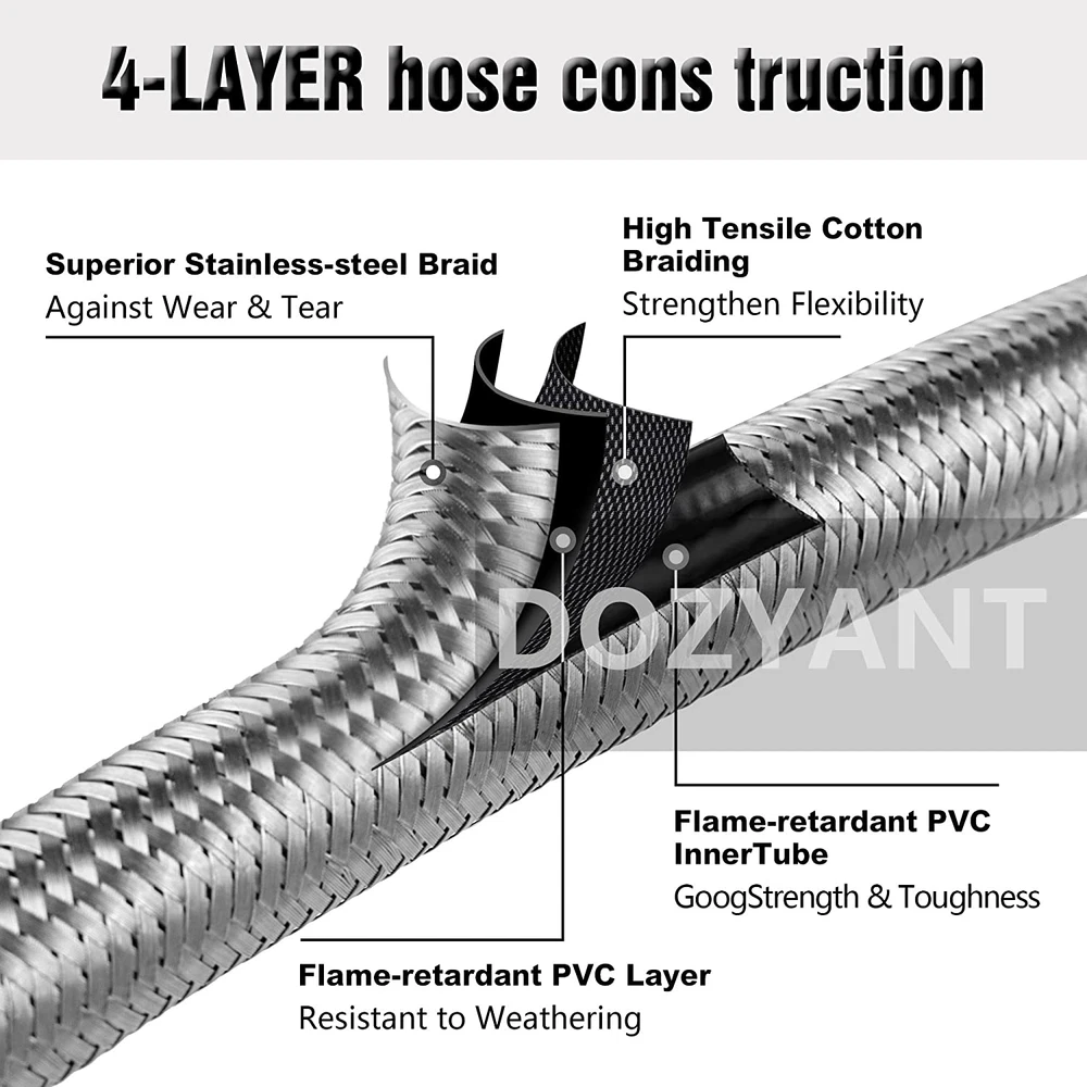 Measure Your Pressure : Use the pressure gauge to determine and regulate your propane PSI. Measuring from 0-60 psi (as well as 1-4 100xKPA), the Pressure Gauge lets users control their heat with a precise level of accuracy End Fitting to Appliance : 3/8” female flare fitting,fit for gas grills, gas stoves, turkey fryers, burners, smokers, cooker, fire pit and heater, hot water heater, as long as your appliance connection is 3/8’’ male flare connector Durable Material Design: The propane hose body is made of stainless steel it will long lasting for your appliance, provides secure, airtight connection between grill and turkey fryer or burner and tank Hose Connector to Propane Tank: Black part fitting is POL connector, you can directly connect your 40 Pound propane tank to 100 Pound, Don't need to move your atmospheric bottle Propane regulator and hose has excess flow protection and will automatically shut off, easy to install your propane bottle and propane appliance 0-30 PSI High Pressure Adjustable Propane Regulator with Gauge is your best choice. The propane has a Gauge that will tell youhow much pressure you are turning the knot to release gas,Let you adjust yourfire better,make your stove/Grill/Buner/Smoker/turkey fryerslike new. If the stove/Grill/Buner/Smoker and moreactually needs more or less pressure, you can adjust it with this instead ofjust being screwed by having the default regulator pressure. The propane hose body is made of stainlesssteel it will long lasting for your appliance, Prevent being bitten by smallanimals This propane hose with regulator has excessflow protection and will automatically shut off. Protect you from danger.
