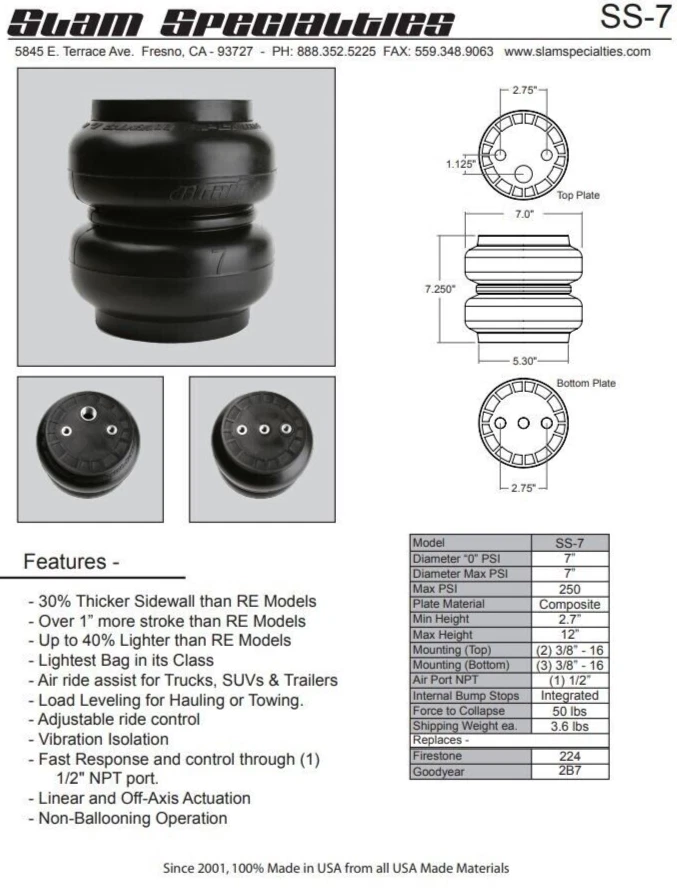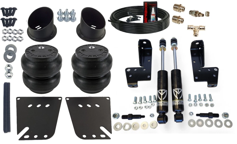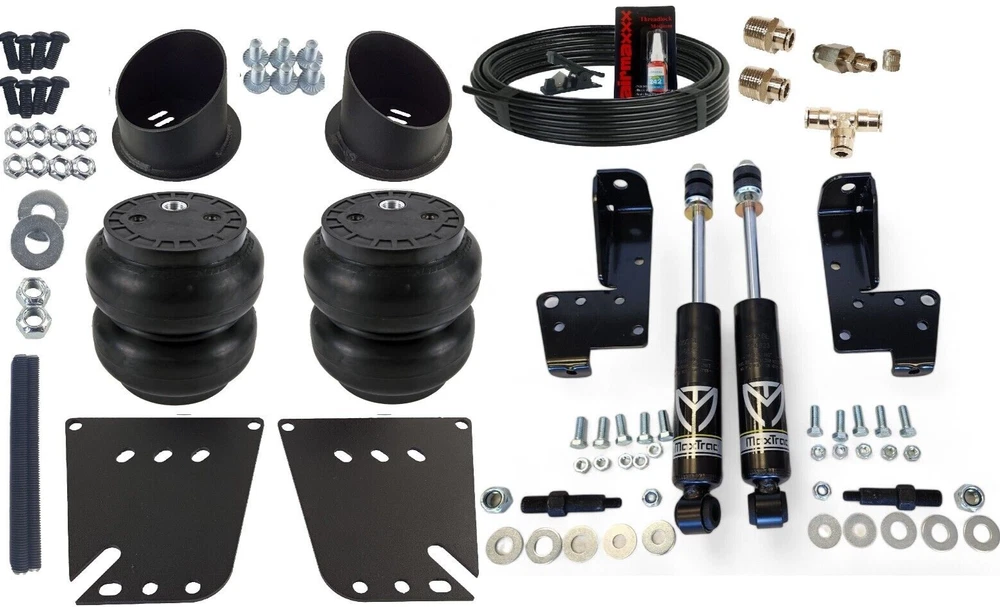 Front Air Ride Suspension Kit (1/2 Inch) Fits- 1958-64 GM Cars Includes: airmaxxx Front Bolt In Upper Cups & Lower Mounts 2 - Slam Specialties SS7 1/2"npt Port Air Bags 2- Bolt in Shock Relocator Frame Brackets 2 - P19 Lower Shock Bolt 2 - Twin Tube Maxtrac Performance Shocks 20ft 1/2 DOT Air Hose Nickle Plated Brass PTC Fitting Kit 1 - 1/2 Schrader Valves airmaxxx Air Hose Cutter & Thread Sealer Free Shipping USA 48 States Upgrade your classic 1958-64 GM car with our Front Air Ride Suspension Kit for superior stance and ride quality. This kit allows you to lower your vehicle to the ground for a sleek, modern look without the need for cutting or welding. It features Slam Specialties SS7 air bags, renowned for their internal bumpstops and exceptional travel range. The non-ballooning design ensures a perfect fit within your car's suspension system. Our kit is designed for easy installation, allowing you to replace your coil springs with a high-quality air ride suspension system. The 1/2 inch components guarantee durability and Fast operation. Transform your vintage GM car with our air ride suspension kit, and enjoy the ultimate low-profile appearance with improved handling. With easy installation and top-of-the-line components, this kit delivers a modern edge to your classic ride. See Our Air Managements to Complete Your Kit Click Here