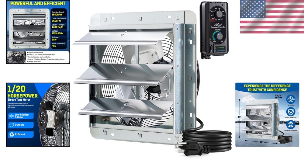 12 Inch Wall Mount Exhaust Fan Aluminum Shutter Thermostat Speeds for Ventilation ‹ › ‹ › ‹ › ‹ › ‹ › ‹ › ‹ › ‹ › ‹ › 12 Inch Wall Mount Exhaust Fan Features: Powerful Air Ventilator: Delivers an impressive 960 CFM, suitable for areas up to 1400 square feet. Speed and Thermal Control: Equipped with the latest Thermospeed(TM) Controller ILG8SFST, allowing variable speed and temperature regulation from 32°F to 130°F. Built to Last: Constructed with an industrial-grade galvanized steel frame, aluminum shutters, and fan blades, ensuring durability for to come. Efficient Design: Features 12-inch steel blades with a deep pitch angle, achieving maximum air movement while maintaining a noise level of less than 65dB. Customer Support: Local support available to address any questions or concerns, ensuring total peace of mind with your purchase. Benefits: Eliminates excess heat, moisture, and unpleasant odors efficiently. Ideal for various commercial spaces including warehouses, garages, greenhouses, and workshops. Automatic shutters open and close seamlessly with fan operation for added convenience. Permanently lubricated motor ensures reliable, low-maintenance operation. Why Choose Our 12 Inch Wall Mount Exhaust Fan? Experience unparalleled ventilation with our 12 Inch Wall Mount Exhaust Fan, engineered for superior performance in demanding environments. With an impressive airflow capacity and innovative speed and thermal controls, this fan is designed to optimize air circulation while maintaining a whisper-quiet operation. Enjoy the peace of mind that comes with /cUL listing and local customer support, all while transforming your commercial space into a fresher, more comfortable place to work and thrive. Don’t settle for less when it comes to airflow solutions—choose our durable, efficient exhaust fan and elevate your ventilation strategy today. Shipping Free & Fast Shipping - We offer free shipping to most of the USA with a normal delivery time of 3-7 days. However, due to the current situation, additional delivery time (up to 3 weeks) may be required for some items. Alternative Carriers - We may use alternative carriers (e.g. USPS, FedEx, UPS, etc.) to ensure your package arrives safely and on time. Due to the use of multiple carriers, we are unable to provide a tracking number automatically. Handling Time - Orders are processed and shipped within 1-2 business days of receiving cleared payment. Shipping Restrictions - Shipping to Alaska, Hawaii, Puerto Rico, Guam, and other US territories may incur shipping charges or delivery restrictions. Please contact us before ordering, or your order can be refunded/cancelled. State Restrictions - There may be restrictions based on your state of purchase. For example, certain items may not be shipped to California due to state regulations. Contact for Tracking Updates - If you require tracking updates or have any concerns about the delivery of your order, please feel free to contact us, and we will be happy to assist you. Return 30-Day Hassle-Free Returns - We want you to be completely satisfied with your purchase. If you are not, you can return the item within 30 days of receiving it for a full refund or exchange. Easy Return Process - To start a return, simply contact us and we will provide you with a prepaid return shipping label and detailed instructions. Restocking Fee - There are no restocking fees for returns. However, the buyer is responsible for return shipping costs if the return is not due to a seller's error. Refund Processing Time - Refunds will be processed within 5 business days of receiving the returned item in its condition. Payment We accept all major credit cards, PayPal, and Apple Pay for your convenience. Your payment information is secure and encrypted to ensure a safe and seamless transaction. Please complete your payment within 3 days of purchase to avoid any delays in shipping. Feedback Your feedback is extremely important to us. We strive to provide the best products and customer service possible. If you are satisfied with your purchase, please take a moment to leave us a positive review. If you have any concerns or issues with your order, please contact us before leaving negative feedback. We are committed to resolving any problems and ensuring your satisfaction. Contact Us If you have any questions or concerns, please feel free to out to our customer support team. You can contact us through the eBay messaging system. We are available Monday to Friday, 9:00 am to 5:00 pm EST, and we will do our best to respond to your inquiry within 24 hours. Buy it now and enjoy a pleasant shopping experience! Unit Quantity: 10.2 lb Material: Aluminum,Alloy Steel Features: Adjustable Thermostat,Automatic Shutter,Corrosion Resistant,Manual Speed Control,Temperature Control,Weather Resistant Room: Bathroom,Bedroom,Garage,Kitchen Mounting: Wall Power Source: Electric Control Style: App Control,Push Button Type: Shutter Exhaust Fan Ventilation System: Exhaust Fan Color: Silver Item Depth: 5.75 in Item Diameter: 12 in Item Weight: 10.2 lb Number of Blades: 3 Number of Speeds: 3 Voltage: 115 V Finish: Silver Power: 65 W Operating Sound Rating: 65 dB Unit Type: lb