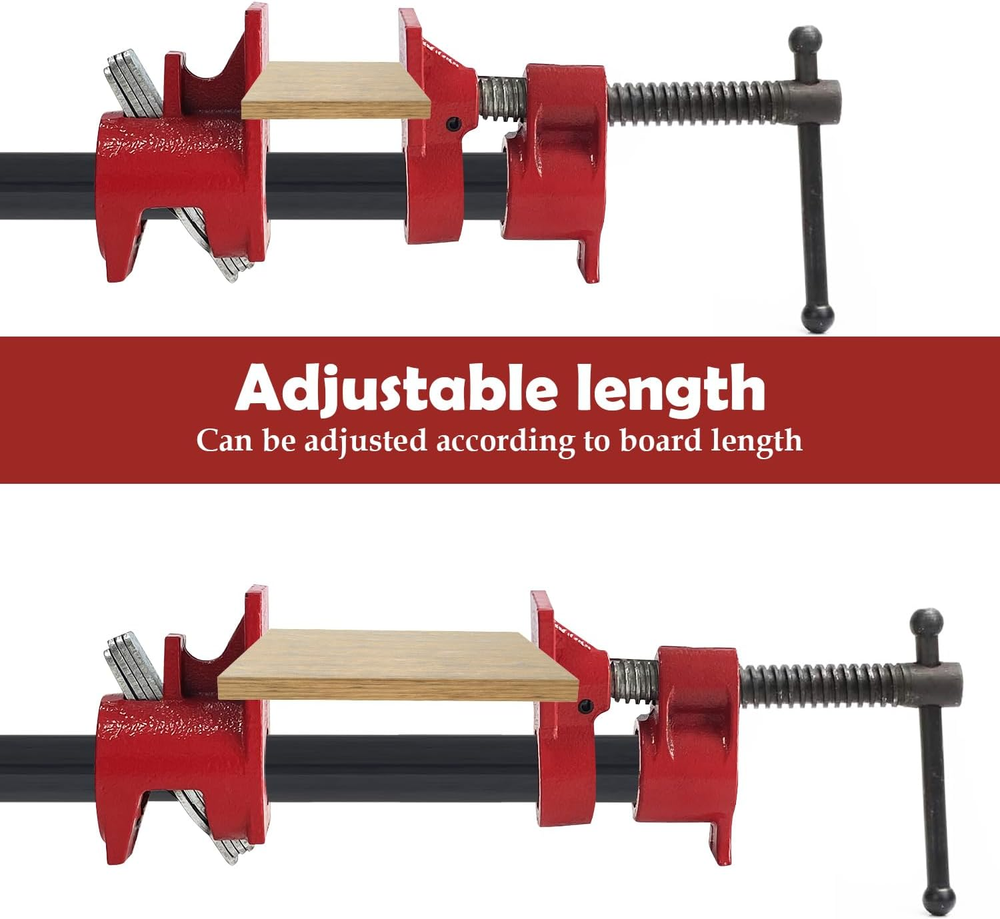 Store New Arrivals Add to Favorite View Feedback Contact Pipe Clamps 1/2 Inch 2 PACK Wood Gluing Pipe Clamp Set Bar Clamps Heavy Duty Woodworking Cast Iron Clamp Fixture (1/2 Inch) Description Item model number clamp pro50 Style 1/2 Inch Power Source hand_powered Color Red Material Cast Iron Country of Origin China Batteries Required? No Item Weight 1.62 Kilograms Batteries Included? No Package Dimensions 6.73 x 4.96 x 4.29 inches Included Components clamps Package Include 2 sets of 1/2-inch pipe clamps, total weight is about 3.3lbs. Made of premium cast iron with painted surface which is rust-resistant and wear-resistant, our clamps are durable and designed for long service time. Ergonomic design providing smooth rotary, comfortable operation and reduced hand fatique. Easy to assemble, just insert pipe into threaded end of the pipe clamp, another section slides along the pipe to match the size of your working piece. Perfect for assembly, gluing, construction, maintenance and woodworking projects. Product Description Features Premium Material Made of premium cast iron with painted surface which is rust-resistant and wear-resistant, our clamps are durable and designed for long service time. Multiple Plate Clutch Pipe clamps with four plate clutch for heavy duty woodworking, could prevent pipes from slipping. Ergonomic Handle Ergonomic design providing smooth rotary, comfortable operation and reduced hand fatique. Adjustable Clamp Length Easy to assemble, just insert pipe into threaded end of the pipe clamp, another section slides along the pipe to match the size of your working piece. Practical Tool Perfect for assembly, gluing, construction, maintenance and woodworking projects, ensure professional and efficient woodworking operations. ABOUT US We offer the best prices around on high quality products. Our E-store includes media such as books, movies, music and games while offering electronics, toys, sporting apparel, clothing, tools, general home, garden items and more. SHIPPING We are always working hard to ensure your package arrives as soon as possible. Please understand that some factors like weather, high postal traffic, and the performance of shipping companies are outside of our control. We offer free shipping to the lower 48 states and ship within 2 business days of payment, usually sooner. We do not accept P.O. Boxes. Please provide a physical address. RETURNS We offer a 30-Day Return Policy on items which you are not completely satisfied with. You have the option for a full-refund or an exchange of the item. No returns are available on items shipped outside of the USA. PAYMENT We accept PayPal. CONTACT US This page content is yet to come Please ad us to your favorite seller and visit again later Thank You CUSTOMER SATISFACTION We try our very best to make sure every customer is completely satisfied. If there's a problem, message us! We're happy to help.