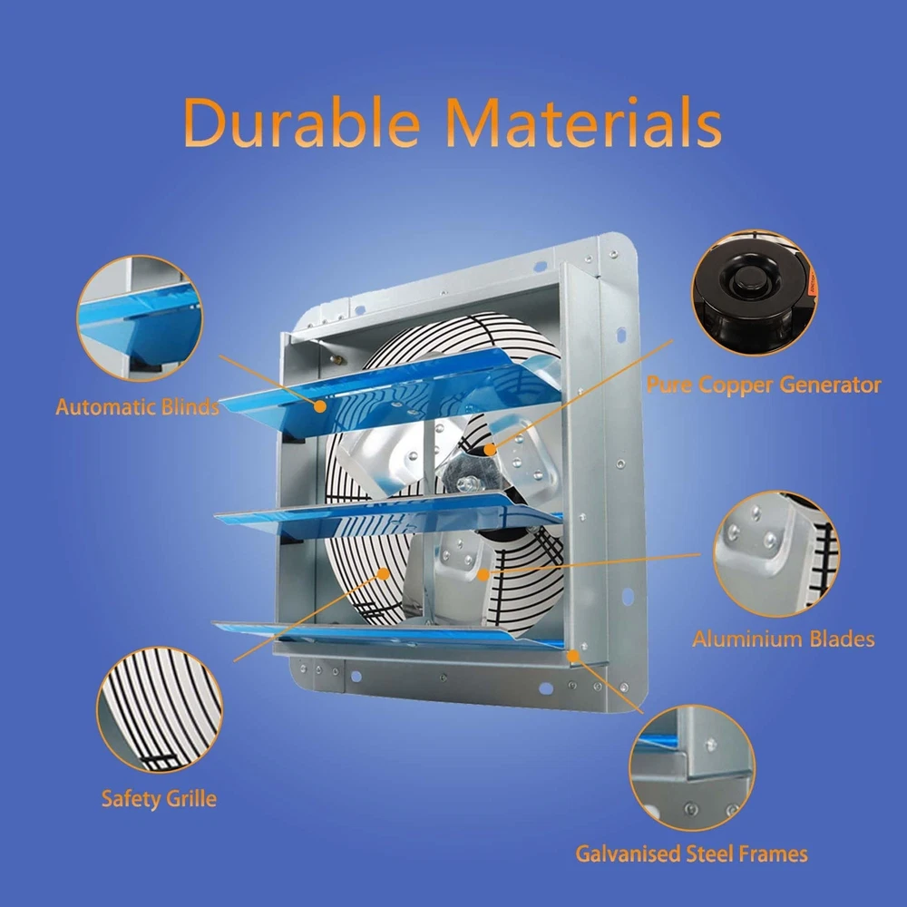 Our wall mounted extractor fan is of sturdy quality, high displacement, low noise, low energy consumption, equipped with automatic shutters that can be automatically Open or close, complete size, wide range of uses, is your best choice for sheds, warehouses, basements. Specification Grille diameter: 12 inches Voltage: AC 110-120V Frequency: 60 HZ Power: 60W Attention Due to manual measurement, the size may have error. The accessories included in the product are subject to the pictures. Rust-proof Material: The frame of the louvered exhaust fan is made of galvanised steel, and the louvered blades are made of high-quality aluminium alloy, equipped with pure copper generator machine, which can maximise the airflow, anti-rust and anti-corrosion, solid and durable, long service time. Easy Installation: The louvered exhaust fan wall mounted is already assembled, just install the fan in the desired position, wide-angle suction that It can effectively ventilate and exhaust the air. Quality Performance: The aluminum blades fan has strong wind power, large displacement, low noise and low power consumption, which can help you save energy costs while creating a quiet and comfortable space for you. Automatic Switch: Our wall mounted shutter are equipped with automatic louvres that open and close as the fan runs. Wide Range of Uses: Ventilating shutters can be used in a variety of situations, whether in factories, car parks basements, warehouses sheds, it removes excess heat odour and improves air quality.