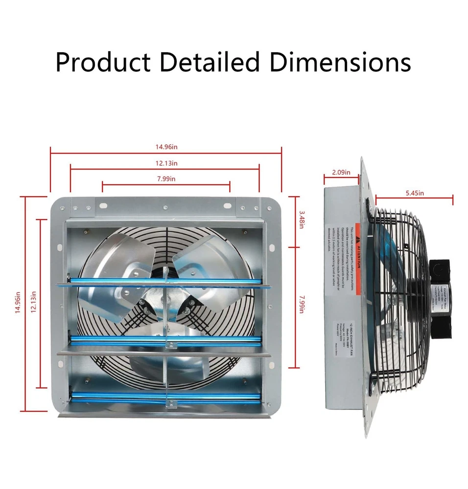 12 Inch Shutter Exhaust Fan, Exhaust Fan Wall Mounted with Speed Controller, ...
