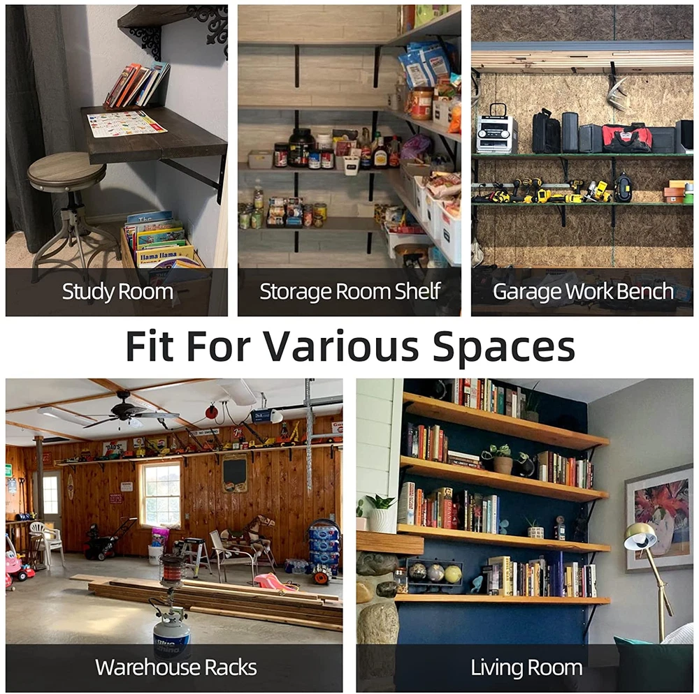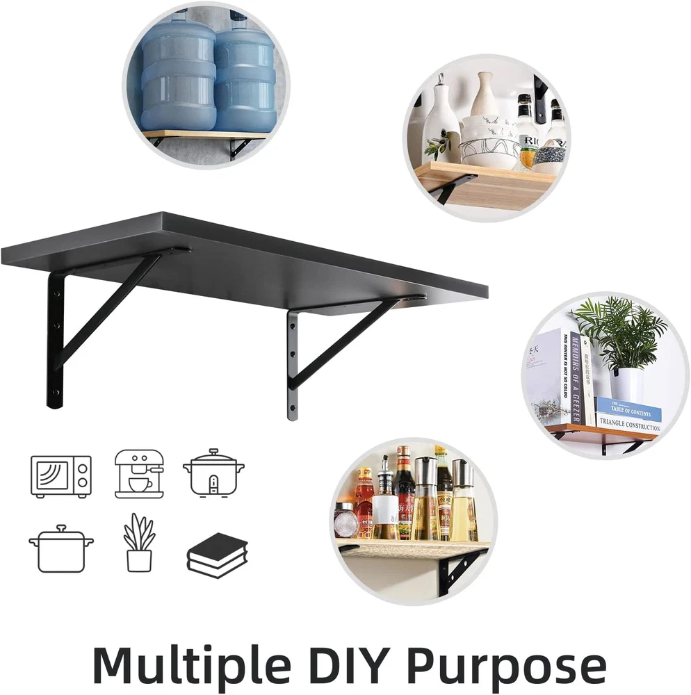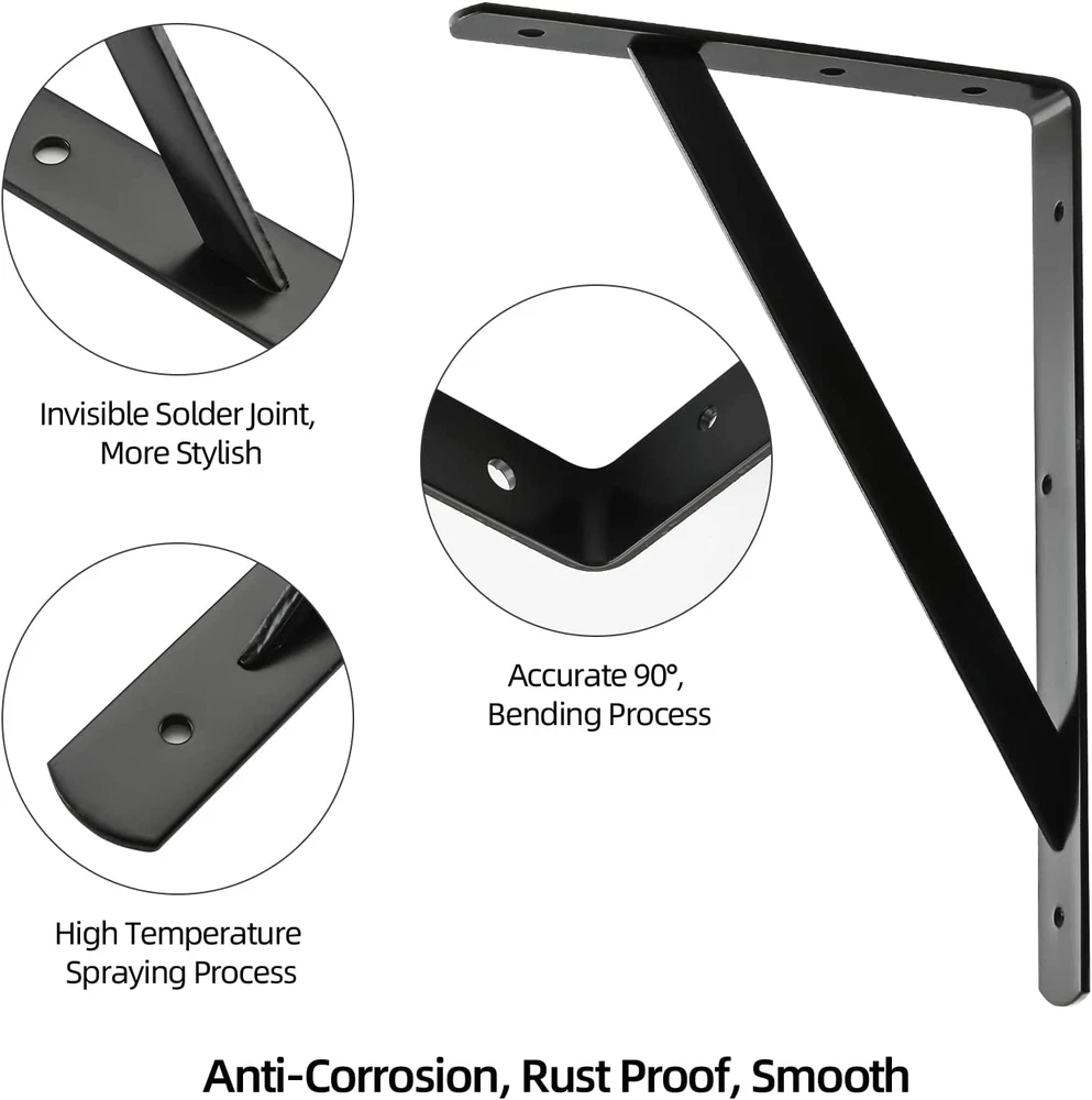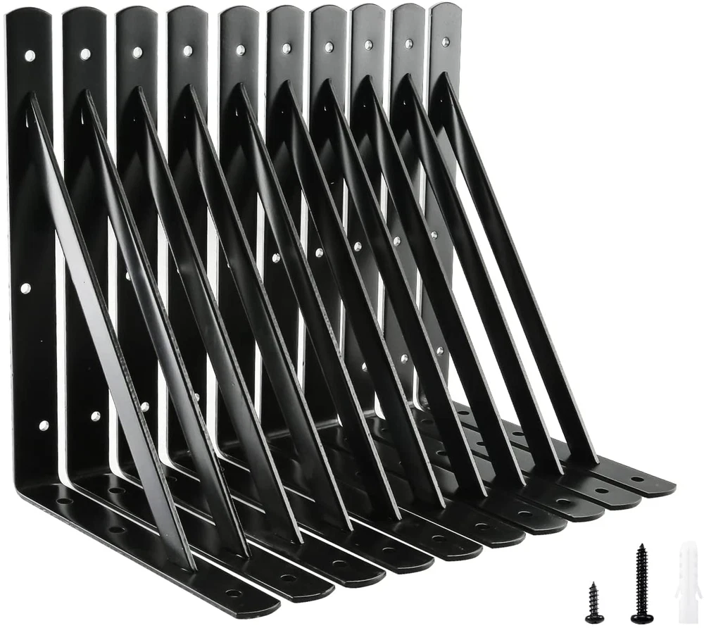 Store New Arrivals Add to Favorite View Feedback Contact 12 Inch X 8 Inch Heavy Duty Shelf Brackets, Load Capacity: 600Lb, Black Metal 90 Degree Supports for Shelves 10-Pack, Wall Mounted L Bracket for Floating Shelving with Screws Description Item model number 306512AC Part Number 306512AC Batteries Required? No Mounting Type Wall Mount Item Package Quantity 1 Color Black Material Steel Item Depth 1.17 Package Dimensions 12.76 x 8.94 x 7.2 inches Item Weight 2 Pounds Batteries Included? No Color Name Black Size 12 inch x 8 inch Is Discontinued By Manufacturer No Size Name 12 inch x 8 inch Number Of Pieces 10 Heavy Duty: Experience unparalleled support for your shelves with heavy duty shelf brackets featuring a stable 90-degree triangle structure capable of holding up to 600 lbs per pair High-quality Material: Made from high quality steel, each 12" x 8" shelf bracket is incredibly durable and sturdy, providing reliable support for your shelves Premium Coating: With a sleek black coating, these brackets are both resistant to corrosion and rust while being incredibly easy to maintain Suggestions for Use: For optimal support, we recommend using a 24-inch length of board for each pair of brackets, or increasing the number of brackets for longer boards Multiple Applications: Ideal for a variety of applications, you can use these brackets as decorative shelf brackets, for kitchen open shelving, bookshelves, exhibition stands, and more Multiple Scenarios: Suitable for use in kitchens, garages, basements, storage rooms, stores, offices, and factories, the elegant and simple design of these brackets fits seamlessly in most homes and businesses Package Content: With 10 pcs brackets and mounting screws included in the package, installation and DIY projects are easy We stand behind our products with a good after-sales service, ensuring that if anything ever goes wrong, we are here to provide the best service possible Product Description High Quality Shelf Brackets The shelf brackets make the perfect addition to your space.Designed to be used to your home, greatly save the space of your home. Drilling installation steps 1 Drilling with an electric drill Drilling installation steps 2 Use brush to clean dirt in the hole Drilling installation steps 3 Punch the screw holder into the hole with a hammer Drilling installation steps 4 Tighten the long pan screw to fix the bracket Package Include: 10 Pack 12 x 8 inch Shelf Brackets 20 Pcs Plastic Wall Anchors 20 Pcs Long Screws for Wall 20 Pcs Short Screws for Wall Sturdy & Durable Constructed of high quality steel which black coated finished, shelf brackets are smooth, anti-rust,anti-corrosion and durable that could remain their best looking for longer time.The shelf brackets will hold up 1200 lbs. per pair Easy to Install Each shelf bracket provides 2 pcs screws and 2 pcs anchors for use.Use a drill to dig a hole on the wall or board and then install it with the included screws and anchors, quick and easy installation. Wide Application in Daily Lfie The floating shelf bracket can be utilized all over the house. It's used as decorative shelf brackets, open shelving for kitchen, bookshelf brackets small metal shelf bracket or etc .and easily matching different decoration style house. HOME MASTER HARDWARE *Home Master Hardware is the source factory of American home hardware. Millions families use our products (Shelf Bracket ,Door Hinge,Gate Kit ,Garage Kit,Door Stop ,Barn Door Hardware,Mop Holder,Storage Hooks and etc.)every year in the United States, so Home Master Hardware products have high quality and service. ABOUT US We offer the best prices around on high quality products. Our E-store includes media such as books, movies, music and games while offering electronics, toys, sporting apparel, clothing, tools, general home, garden items and more. SHIPPING We are always working hard to ensure your package arrives as soon as possible. Please understand that some factors like weather, high postal traffic, and the performance of shipping companies are outside of our control. We offer free shipping to the lower 48 states and ship within 2 business days of payment, usually sooner. We do not accept P.O. Boxes. Please provide a physical address. For shipping outside of the continental USA, we only use eBay's Global Shipping Program.The item is shipped to KY and then sent to the rest of the world. International customers are responsible for all duties and taxes. Continue to check out in order to calculate costs for shipping the item to your country. Messages regarding eBay's Global Shipping Program MUST be directed at eBay EXCLUSIVELY. RETURNS We offer a 30-Day Return Policy on items which you are not completely satisfied with. You have the option for a full-refund or an exchange of the item. No returns are available on items shipped outside of the USA. PAYMENT We accept PayPal. CONTACT US This page content is yet to come Please ad us to your favorite seller and visit again later Thank You CUSTOMER SATISFACTION We try our very best to make sure every customer is completely satisfied. If there's a problem, message us! We're happy to help. WE ACCEPT Copyright © 2021 AutoDS. | All Rights Reserved