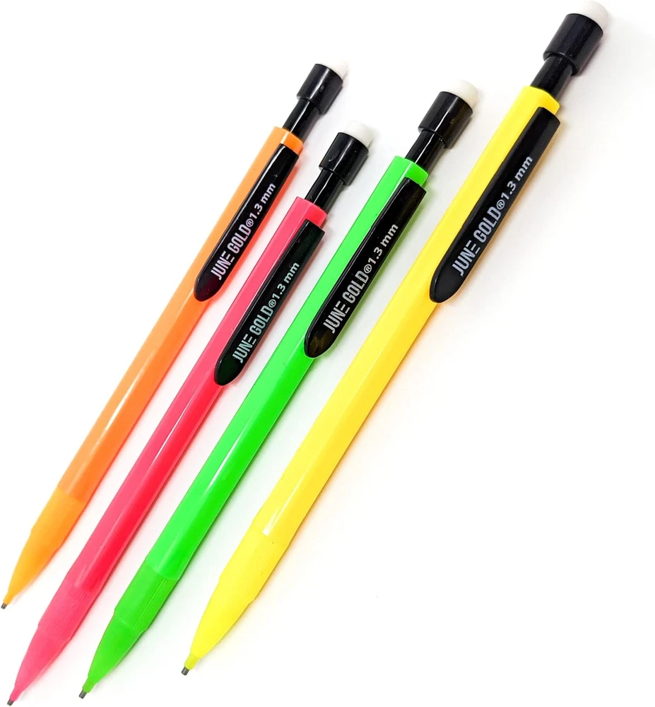 12 Pack of 1.3 mm HB #2 Refillable Mechanical Pencils Pre-filled with 2 Black Graphite Leads GRAPHITE LEAD: 1 dispenser with 30 graphite lead refills are included. Each lead is break resistant, writes smoothly, and appears dark & vibrant on paper. ERASER: 12 bonus eraser refills are included. Each eraser is durable, smudge resistant, and leaves no residue. REFILL PROCESS: Each pencil can be refilled by removing the rear eraser and dropping additional lead down the tube. You can also hold the rear clicker down and slide the lead through the front. BARREL: Each pencil sports a hexagon barrel and clip to prevent your pencil from rolling away. Product Description Premium Where it Matters Balanced, Comfortable, and Premium When it comes to mechanical pencils, we have a pencil for everyone. Our pencils come with a variety of features and sizes that will meet your needs. Compare some of our products below to find what works best for you. Refill Sizes and Hardness We offer graphite refills in 0.3 mm, 0.5 mm, 0.7 mm, 0.9 mm, 1.3 mm, 2.0 mm, 2.8 mm, and 5.6 mm. Some sizes are available in hardness HB, 2B, and 4B. Colored refills are also available in 2.0 mm and 2.8 mm. Scroll down to view a sample of these options. Important Details Graphite in HB, 2B, and 4B Pencils in 0.7 mm, 0.9 mm, 1.3 mm, 2.0 mm, and 2.8 mm Break resistant lead Comfortable pencils Premium components