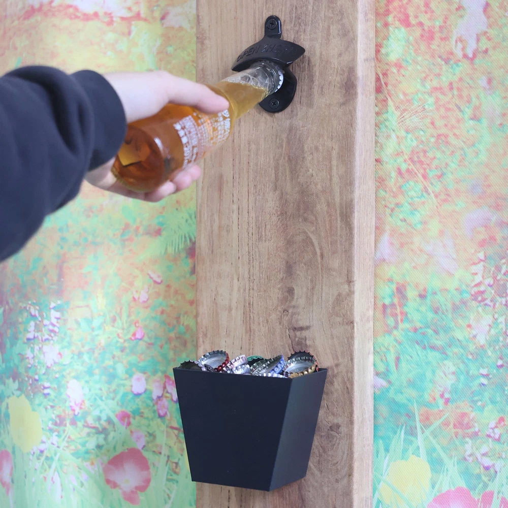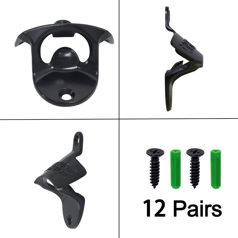 Cost-effective: 12 PCS black rustproof bottle cap opener wall mount and 12 pairs of black stainless mounting screw include of the box Durable and Embossed Design: The black soda beer bottle opener table mount is made of high-quality stainless materials with "OPEN HRER" embossed finish, suitable for indoor or outdoor use Mounting Screws Included: black post mounted bottle top opener (3.15x2.56x1.14 inches) contains mounting screws, you only need to find the installation position to complete the installation of the wall mounted bottle opener -Handed Easy Opening: Effortlessly open bottles without spills or mess, even with just hand. This stainless screw in wall drink opener allows you to swiftly remove caps from your favorite beer or soda bottles Used in different occasions: This wall mounted bottle opener can be installed on wooden caddy, cooler, post, table, shelf, bench, as well as indoor and outdoor scenes such as garages, cabins, man cave, backyard kitchens