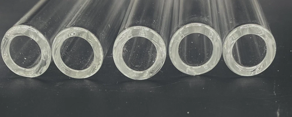 12 pieces of 12 Inch Borosilicate Pyrex Glass Blowing Tube. Clear Tubes. Outer Diameter: approx.12mm Inner Diameter: approx. 8mm ID Thick wall of approx. 2mm. Smooth Fire Polished End.
