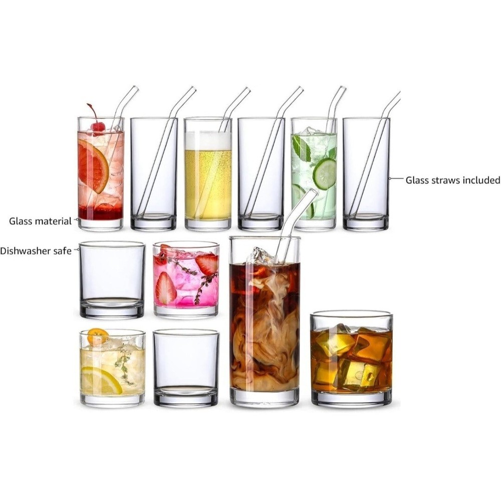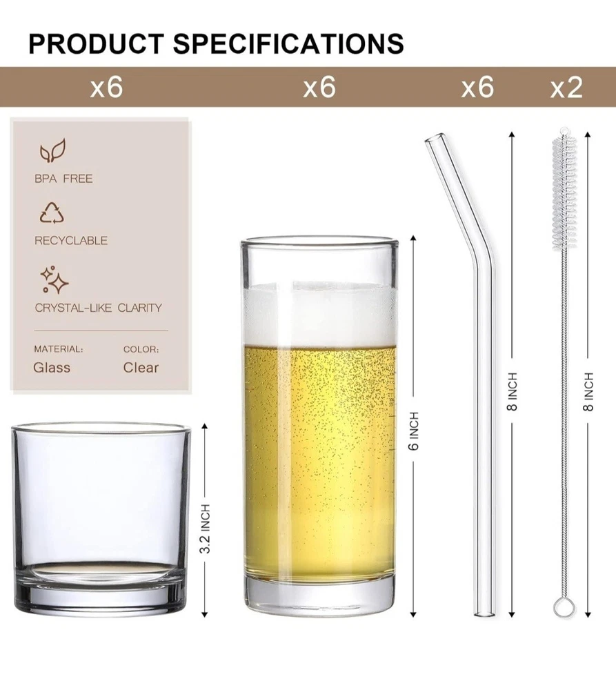 [ 12 Pack ] Glass Cups with Glass Straws, 12oz Highball & Rock Drinking Glasses, Everyday Drinkware Glasses Set, Cute Tumbler Cup, Kitchen Glasses for Iced Coffee, Water, Beer, Cocktail, Whiskey Gift. CLASSIC GLASSWARE SET : This comprehensive package includes 6 hurricane glasses, 6 rock glasses, 6 glass straws, and 2 clearing brushes, with simple, elegant linear design and has a classic look. Versatile glass set can meet all your demands for daily use or serving use, and enjoying your favorite beverages. For vibe, it is popular and chic SAFE, DURABLE, DISHWASHER SAFE : Our glasses set is made from high-quality, durable crystal glass that is safe, transparent. The thick bottom design not only enhances the texture of the glass but also provides an excellent feel. This delicate and durable glassware is perfect for both hot and cold drinks, and is easy to clean – simply hand wash or put it in the dishwasher MULTI-PURPOSE : Highball and rock glasses are beloved by families, restaurants, cafes, and bars alike. Whether you’re enjoying iced coffee, tea, juice, beer, cocktails, whisky, Mojitos, Collins, Bloody Marys, or any other holiday drink, our versatile glasses are perfect for any occasion A GOOD GIFT CHOICE: This glassware set makes a wonderful gift choice for any occasion like birthdays, Father’s Day, Mother’s Day, Christmas, and Thanksgiving. Thanks to its elegant design, practicality, and versatility. Whether you’re looking for a present for a housewarming, wedding, or holiday celebration, this set is sure to delight anyone who enjoys entertaining or appreciates fine glassware Payment ●Payment must be received within 3 business days of auction closing. ●Please Note: Import duties, taxes and chargers are not included in the item price or shipping charges. These charges are the buyer's responsibility. Shipping ●Items will be shipped within 3 days after the cleared payment. All items will be checked carefully and packages in good condition. ●We will ship to ebay's address only. Please make sure your address on ebay is the same with your shipping address before you pay. ●Shipping and Handling will be determined based upon the ship to address ●If you didn't receive your package, this time schedule, please do not hesitate to contact us. Within 24 hours we will try to update you with the latest tracking details of the shipment. Return and Feedback ●We sincerely hope that you can leave us a positive feedback. If, for any reason you are not satisfied with your purchase, please contact us through "Ask Seller Questions" before leaving neutral or negative feedback ●If you are not satisfied about your received item, please return it within 30 days for a refund. ●We will accept any return and give a full refund (without shipping cost) on any item. The item must be returned to us in original condition and the buyer need to pay return shipping cost