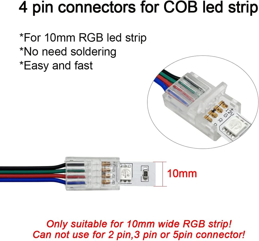 Store New Arrivals Add to Favorite View Feedback Contact 12 Pack COB Led Strip Light Connectors 4 Pin, Led Strip to Wire Solderless Transparent Track Lighting Adapter Connection with 6M/19.68Ft Led Wire Extension Cable for RGB 5050 Led Tape 12/24V Description Item model number 4PIN-10MM Light Source Type LED Style Modern Number of Items 12 Power Source Corded Electric Number of Light Sources 12 Control Method Remote Theme Indoor Batteries Included? No Controller Type Button Control Batteries Required? No Material Copper, Polyvinyl Chloride Form Factor Elongated, narrow shape Package Dimensions 14.33 x 5.35 x 0.71 inches Included Components 12 pack strip to wire connectors, 6M/19.68ft extension cable, 2 pack opening clips Indoor/Outdoor Usage Indoor Light Color RGB Water Resistance Level Waterproof Item Weight 5.6 ounces Connectivity Technology 4-pin Special Features Waterproof Special Feature Waterproof Part Number 4PIN-10MM Color White Wattage 72 watts Voltage 24 Volts Size 4 Pin, 10mm Cob led light connectors:the strips to wire without stripping insulation, no soldering. This 4 pin led light connectors are suitable for 10mm flexible LED strip lights, One end connects 2-conductor 22 gauge extension cable and another end for cob led strip lights RGB The led wire is easy to store: package included 6m/19.68ft 22AWG extension cable,Wire comes wrapped around a plastic spool, cut into any length based on needs, the rest of wire is easy to store with spool This led connectors for strip lights compatible with 5v, 12v, 24v led light strips, work for 10mm 4-pin soldering pads tape light. You only need to align the front side (led surface) of the light strip with the pins of the connector, and then buckle the transparent cover to achieve a stable and good connection This cob led strip connectors is made with high quality tin plated copper core and PVC plastic wire cover ensure steady, safety and long-lasting connection, firmly bite through the led light strip, much stronger than old style lights connectors, The clear terminal is easier to pierce the wire, and the one-time success rate is higher.Perfect for NON-WATERPROOF LED Tape Light DIY project.A not bad pin led connectors Package includes:12 Pack strip to wire connector+6M/19.68ft extension cable +2 pack opening clip Product Description ABOUT US We offer the best prices around on high quality products. Our E-store includes media such as books, movies, music and games while offering electronics, toys, sporting apparel, clothing, tools, general home, garden items and more. SHIPPING We are always working hard to ensure your package arrives as soon as possible. Please understand that some factors like weather, high postal traffic, and the performance of shipping companies are outside of our control. We offer free shipping to the lower 48 states and ship within 2 business days of payment, usually sooner. We do not accept P.O. Boxes. Please provide a physical address. For shipping outside of the continental USA, we only use eBay's Global Shipping Program.The item is shipped to KY and then sent to the rest of the world. International customers are responsible for all duties and taxes. Continue to check out in order to calculate costs for shipping the item to your country. Messages regarding eBay's Global Shipping Program MUST be directed at eBay EXCLUSIVELY. RETURNS We offer a 30-Day Return Policy on items which you are not completely satisfied with. You have the option for a full-refund or an exchange of the item. No returns are available on items shipped outside of the USA. PAYMENT We accept PayPal. CONTACT US This page content is yet to come Please ad us to your favorite seller and visit again later Thank You CUSTOMER SATISFACTION We try our very best to make sure every customer is completely satisfied. If there's a problem, message us! We're happy to help. WE ACCEPT Copyright © 2021 AutoDS. | All Rights Reserved