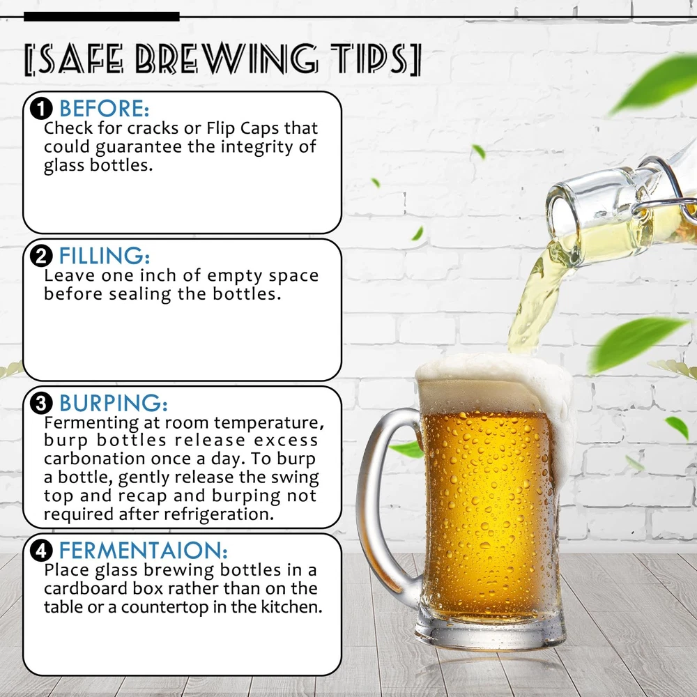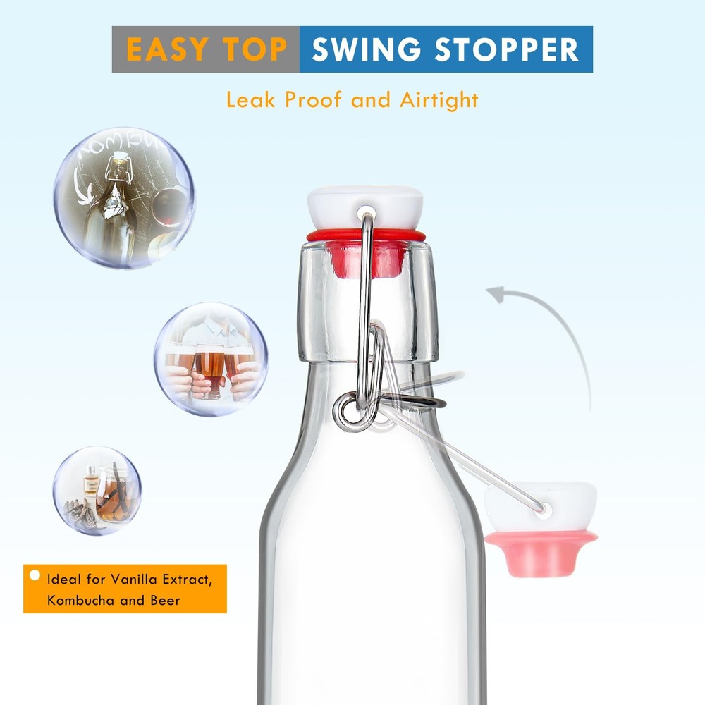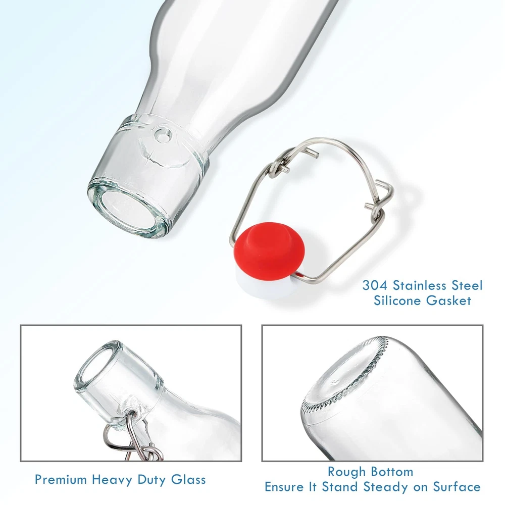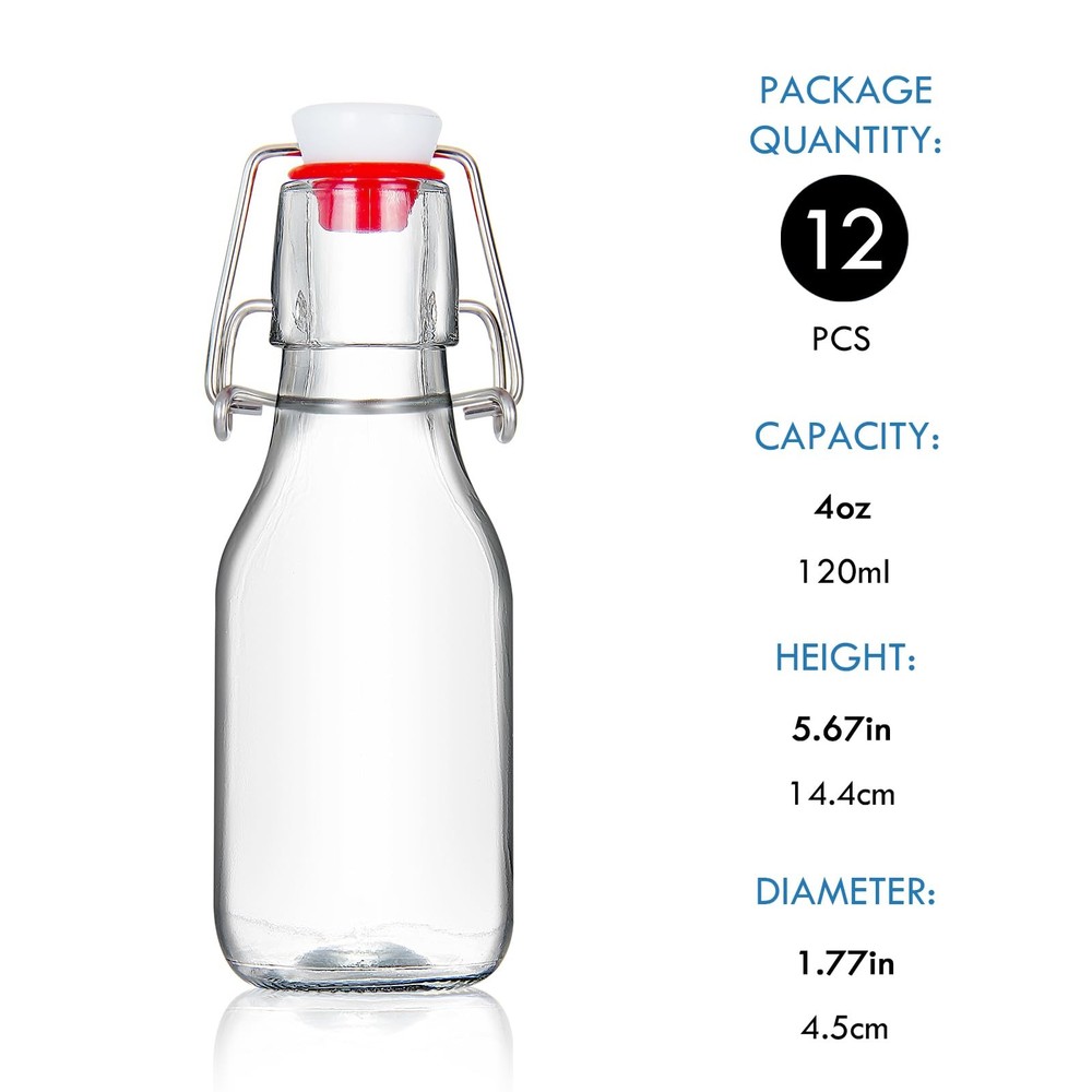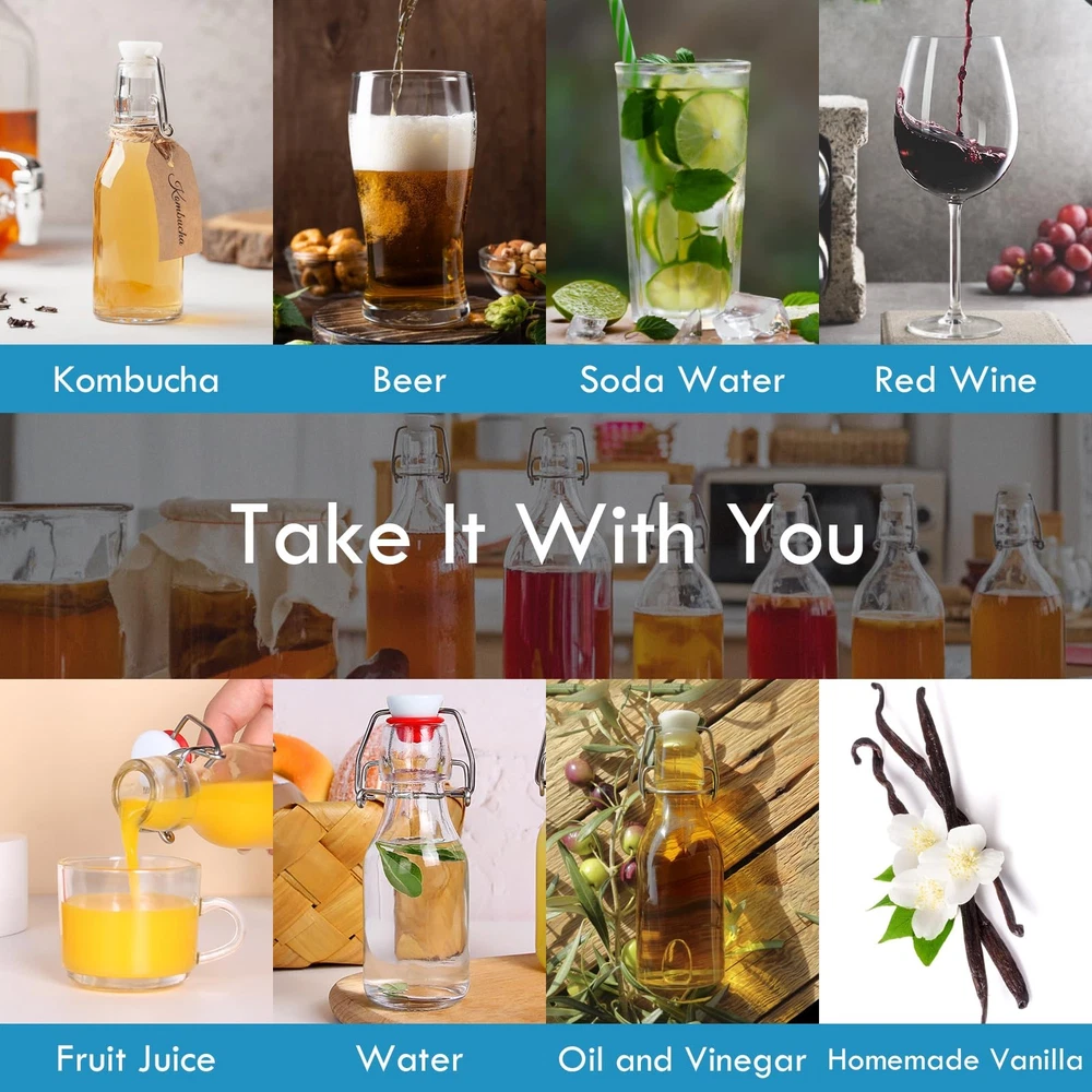 Our glass beer bottles are made with thick, durable BPA-transparent glass and 304 stainless steel swing caps with gaskets. Reusable glass bottles are a great alternative to plastic bottles and will be your choice for storing brewing beer, vinegar, oil, homemade soda, kombucha, soft drinks, sauces, kefir, limoncello and so on. High Quality and Durable: 4 oz beer brewing bottles with the flip caps are made of premium durable transparent glass to ensure you can see what is inside and the swing top caps with stainless steel closures and high pressure gaskets for flip top glass bottle 4 oz creating a secure airtight seal and leakproof for your contents to lock in freshness and flavor. Versatile Usages for Liquid Storage: Swing top glass bottles 4 oz with airtight lids are ideal for homemade drinks, such as syrup, wine, soft drinks, water, beer, juice, smoothies. Also vanilla extract bottles 4 oz,small flip top glass bottles for carbonated drinks as it retains the gas, such as beer, soda, coke as perfect gifts for someone's , Thanksgiving, Christmas, etc. Easy to Clean and Dishwasher Safe: Easy pouring spout makes 4 oz glass bottles with lids perfect dispenser for messy oil and vinegar. Once swing top glass bottles, you can just put our beer bottles, reusable bottles straight into the dishwasher or simply handwash with bottle brush and soap, then you can reclose the glass brewing bottles for repeat-use 4 oz glass bottles with lids. Safe Package Including: Our glass bottles 4oz with the flip top lids are bubble wrapped with dividers in a secure with an economical 6 pack 4 oz swing top glass bottles with additional 6pcs chalkboard labels, a liquid chalk pen and 1 collapsible silicone funnel so that safe package ensures that flip top glass bottles,4 oz vanilla extract bottles,glass beer bottles arrive safely. Satisfaction: Our final goal is to provide customers with high quality 4 oz flip-top glass bottles and warm services. If you have any questions on flip top bottles 4 oz,swing top bottles 4 oz,vanilla extract bottles 4 oz, please feel to and we will reply you within 24 hours to make sure you have a satisfactory shopping experience with .