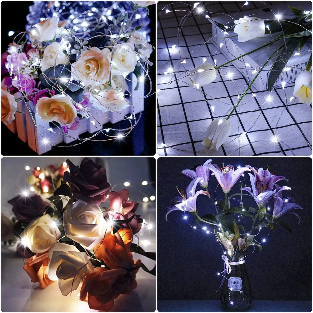 1 【Premium Fairy Lights】The fairy lights battery operated are made of 7 ft silver wire and have 20 LED light beads that can emit a bright light, each fairy light includes 2 x 2032CR batteries, the battery life is 48 hours, high-quality battery operated string lights do not have color difference phenomenon. 【Flexible Silver Wire】This fairy lights battery operated have 7 ft of sturdy silver wire, silver wire can be easily bent, you can assemble the fairy lights arbitrarily and wrap them around the place you want to decorate, the silver wire of the battery operated string light has IP65 waterproof, you can put the twinkle light into a water cup filled with water to make a beautiful water cup light. 【Safety】The fairy lights use 2 x 2032CR batteries, fairy lights battery operated can work at low voltage, so the twinkle lights emit a small amount of heat when working, the silver wire of the fairy lights for bedroom is also very robust and has great electrical conductivity, all these elaborate designs reflect our pursuit of safety. 【Easy to Use】This fairy light uses a new battery box technology, battery replacement has become easier, directly opening the battery box back panel and you can easily replace the battery, fairy lights battery operated using a simple switch design, just pull out the insulating piece of the fairy lights battery cover and open the switch to use. 【Perfect Decoration】The battery operated string lights have a lightweight and small size, you can easily hide the fairy lights in the decoration, the great security and waterproof performance of the fairy light allow you to put them anywhere, these perfect fairy lights battery operated are suitable for Christmas, bathrooms, festivals, weddings, twinkle lights can be used for holiday decorations to create a lively holiday atmosphere.