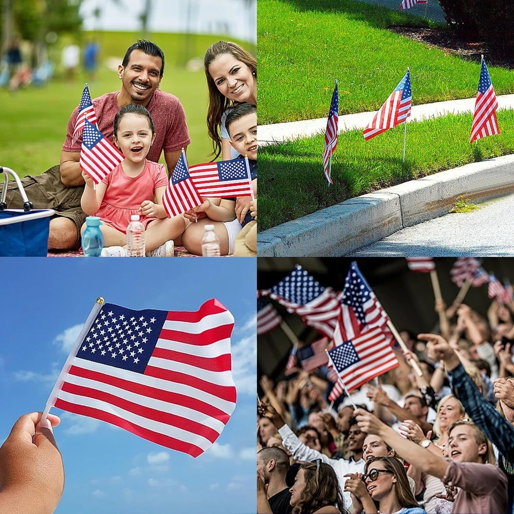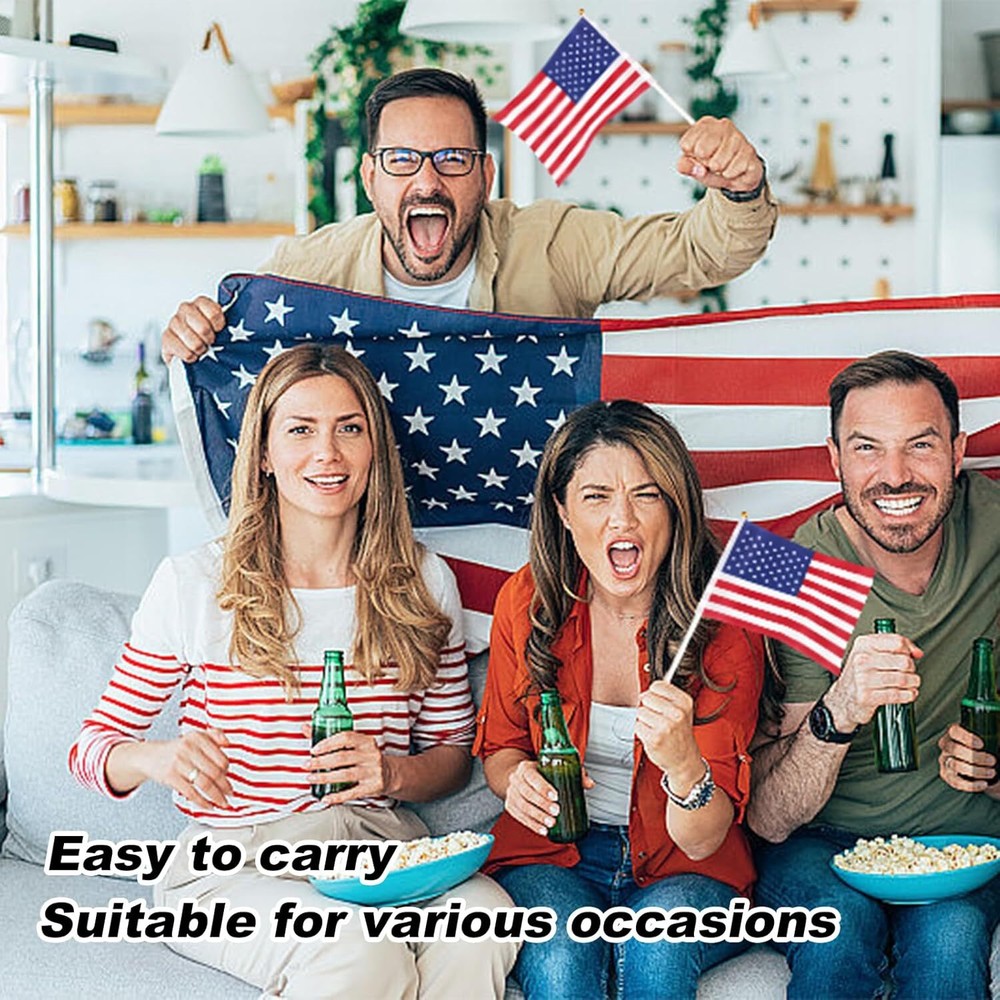 12 Pack Small American Flags Mini American Flag/Us Flags on Stick 8X12 Inch US 【High-quality Materials】: These mini American flags are made of durable polyester fabric, ensuring long-lasting use and resistance to fading. 【Perfect Size】: Measuring 8x12 inches, these handheld flags are the ideal size for displaying your patriotism in a compact and portable way. 【Pack of 12】: With this 12 pack, you'll have enough mini American flags to decorate your yard, patio, or even hand out at patriotic events and celebrations. 【Easy to Use】: Each flag comes with a sturdy stick that allows you to easily wave and display your American pride.