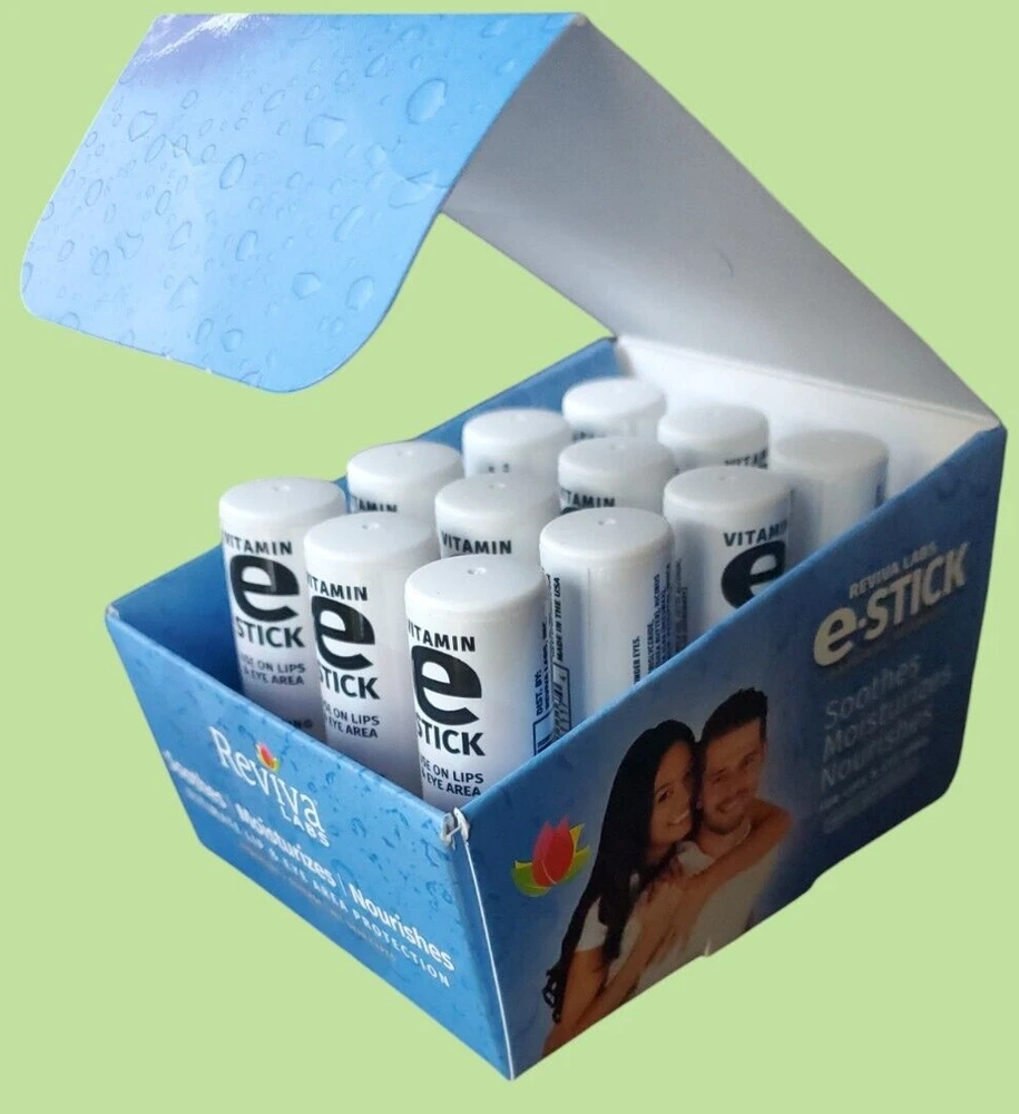 12 Pack Reviva Labs Vitamin E Stick LIP Balm MULTI-PURPOSEFUL FORMULA: Can be applied under eyes, cheeks, or any place that’s exposed. Can be applied over or under lipstick. 12 Pack New Sealed Exp. Date 10/2025