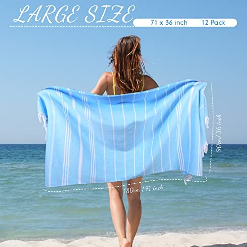 Return Policy Fast Delivery Trusted seller 12 Pack Turkish Beach Towel Bulk 71x36 Inches Cotton Turkish Bath Oversized Sand Free Quick Dry Blanket Towels for Beach Pool Bathroom(Sky Blue) Product Description Large Beach Towels: the Turkish beach towels are made of cotton, can be applied regardless of front or back; Nice absorbent, sturdy, not easy to deform, fade or shrink; Extra large beach towel measures approx. 36 x 71 inches when unfolded, each beach towel is individually wrapped for your safe and clean using Quick Dry and Sand Free: the Turkish beach towels are suitable for using at the beach, w the sand can be shaken off quickly, so you do not have to deal with the sand afterward; The towel dries quickly and is soft and lightweight; Dry faster with air dryer and tumble dryer in low temperature Multi Functional: these Turkish bath towels can be taken to the beach and applied as pool towels; Whether as a bath towel, swim towel or beach mat; Use your imagination, they can also be applied as aprons, shawls and scarves, bringing you a nice experience of using beach towels Portable Travel Towel: the Turkish towels are thin, but have the same absorbent properties; You can take Turkish towels with you wver you go; Convenient to pack and carry for travel, not bulky Ideal Gift: the oversized beach towels are ideal gifts for family and friend, which can be applied in bathrooms, spas, beaches, gyms and swimming pools, etc., they will be delighted to receive such versatile towels Shipping Returns Payment Shipping Shipping is FREE to all addresses other than APO/PO boxes in the lower 48 states. All our stock ships from US-based warehouses. Shipped via USPS or UPS (depending on location and package weight) Unless stated otherwise, all orders will ship within 24-72 hours of your payment being processed. Check our feedback to see the great reviews of FAST shipping we offer. Returns Seller does not accept returns Payment We currently accept payment via eBay managed payments only. Once payment is cleared, we will dispatch your shipment within 1-3 business days. Please refer to the "Shipping" tab for more information regarding shipping speed to your destination.