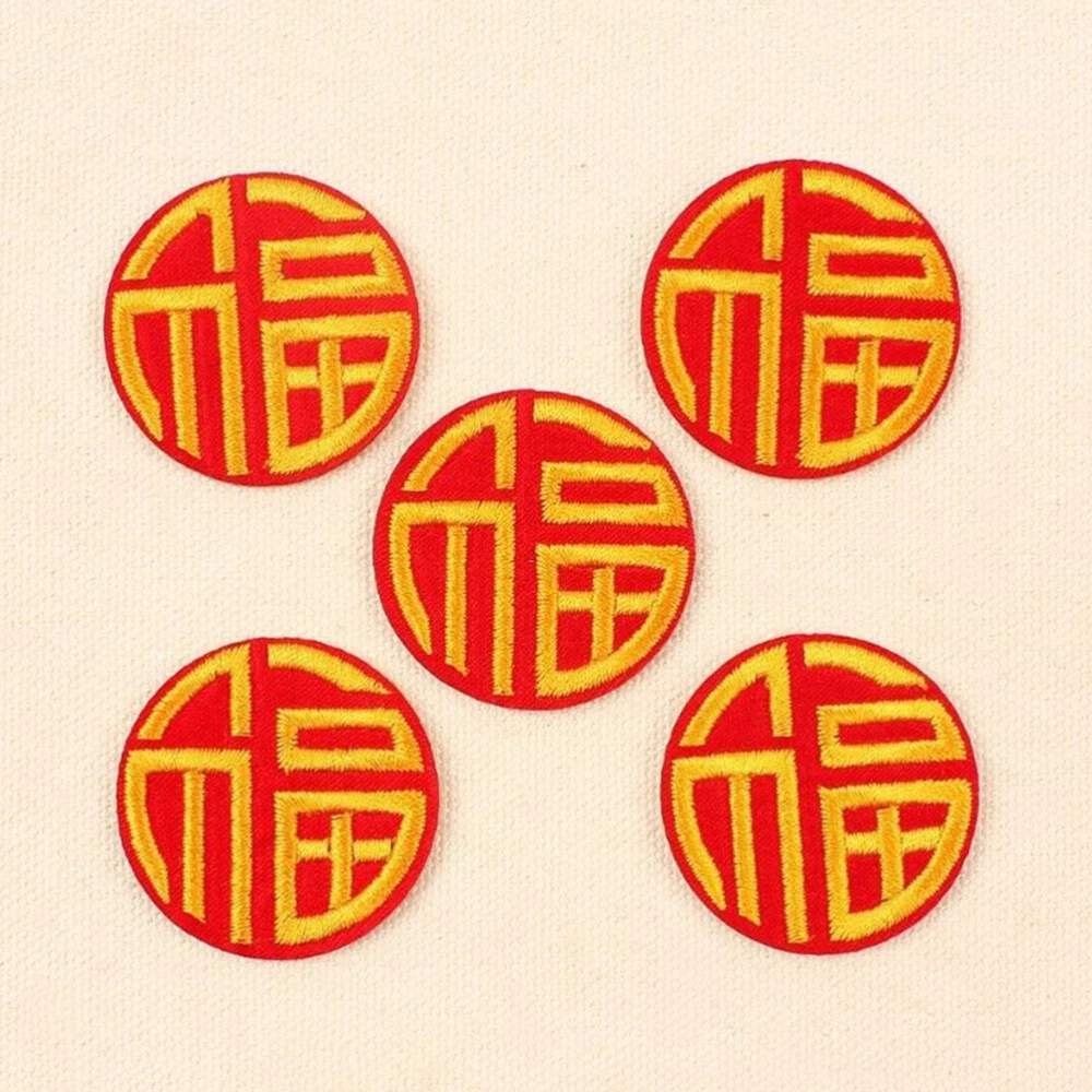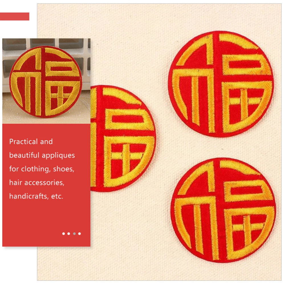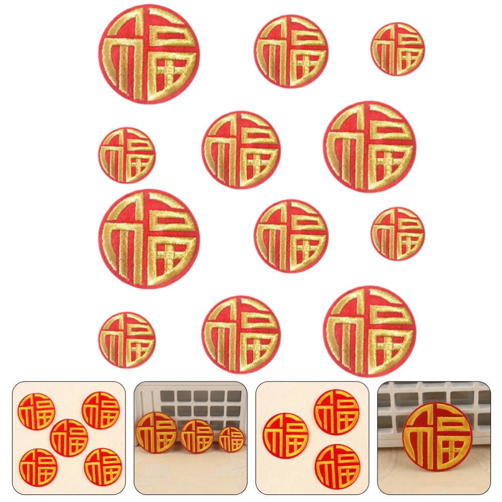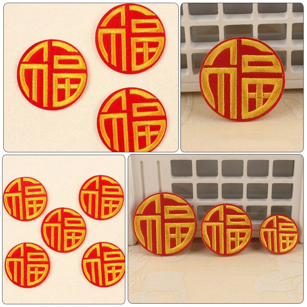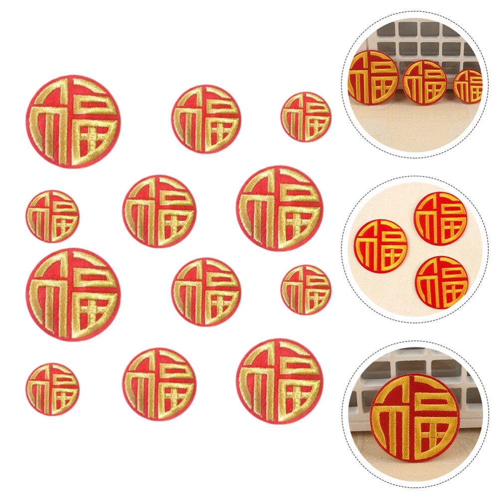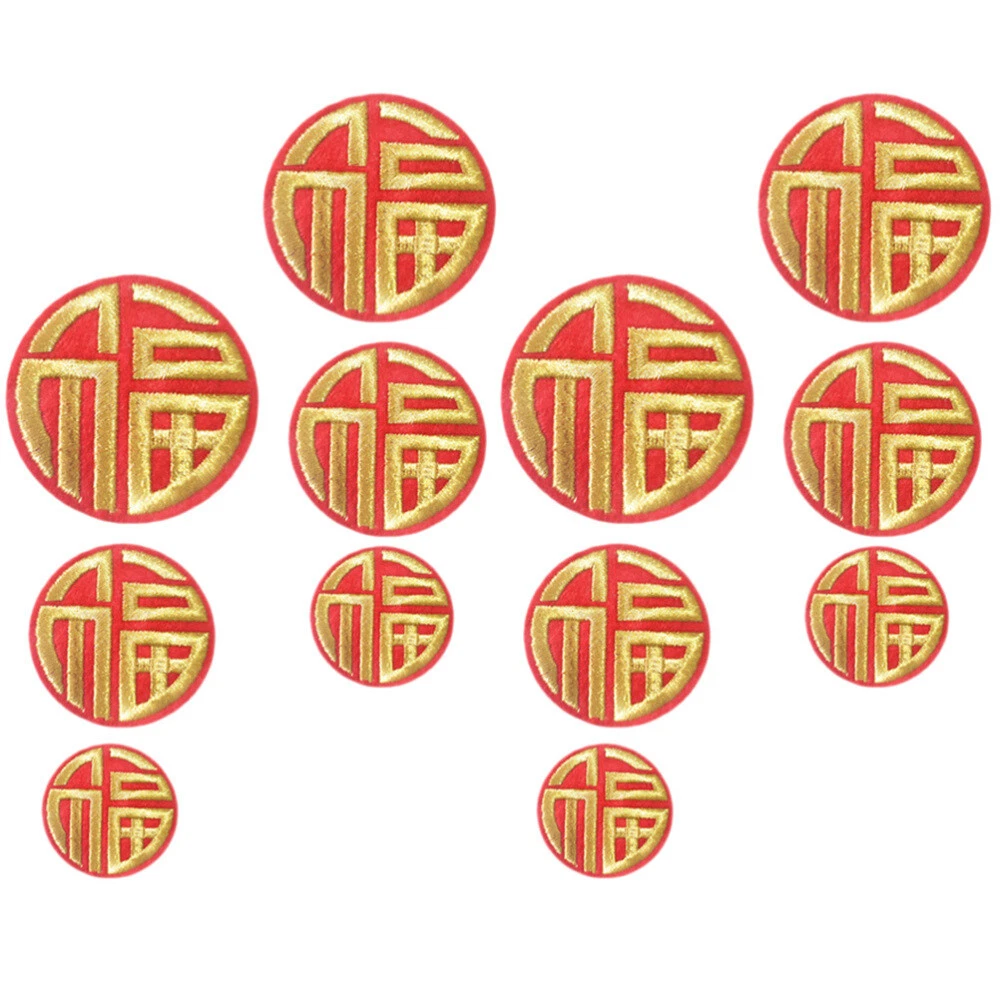 12 Pcs Chinese Character Luck Patch Fu Word Cloth Sticker Sew on Patches Child
