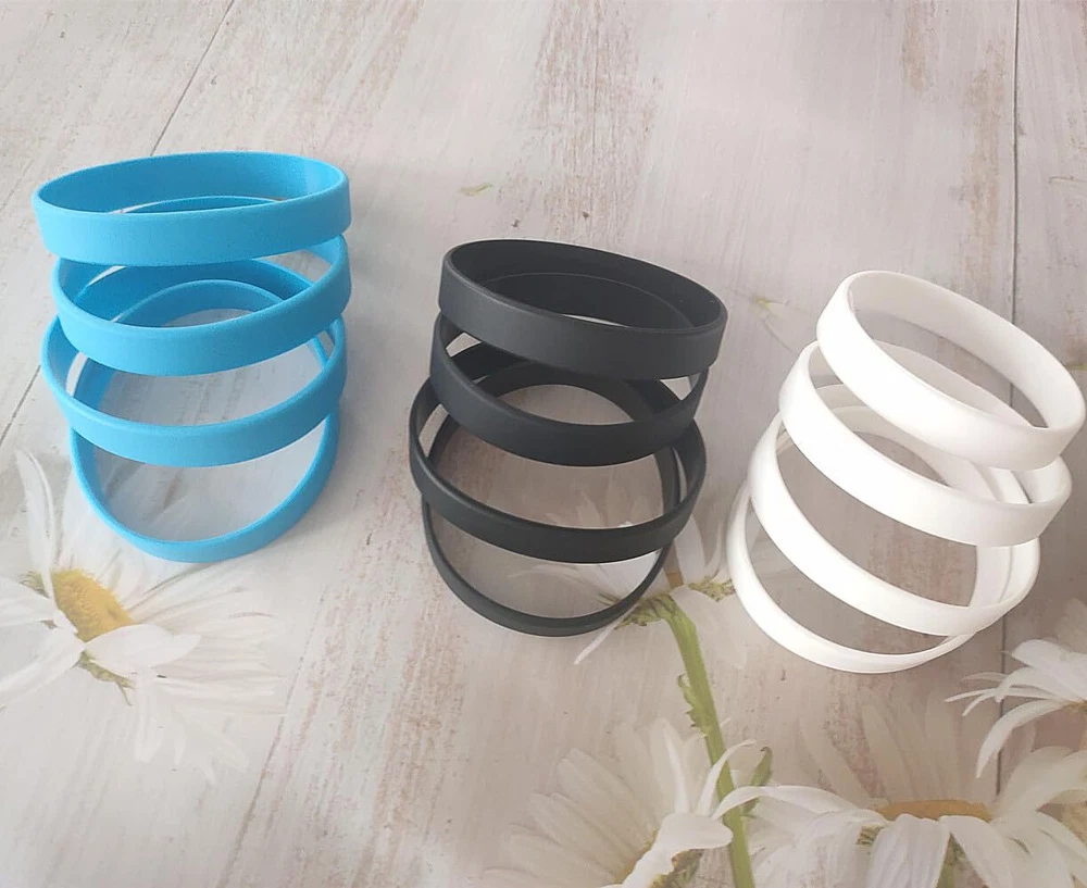 Specifications: Size: 2.56 x 0.5 inches Color: Black, White, Blue Material: silicone rubber. Easy To Wash, Non-Toxic, Soft And Comfortable. DIY personalized wristbands: You can add your name, telephone number, company logo, address, a special date or any reminder to your silicone bands, which helps you keep important things well in your mind. Comfortable to wear: These rubber wristbands are made of soft silicone, comfortable to wear, easy to put on and take off. Package includes: 12 x Wristband bracelets Durable and Soft Material: These sports silicone wristbands are made of high quality silicone material. Comfortable and safe to wear, no allergy no adverse reaction. Waterproof, no need to be remove even when you are taking a shower. Dimensions: the rubber wristbands measure approx. 2.56 x 0.5 inches in diameter and width, has nice elasticity, can be stretched according to your wrist circumference, fit for most people. DIY personalized wristbands: you can add your name, telephone number, company logo, address, a special date or any reminder to your silicone bands, which helps you keep important things well in your mind. Suitable occasion: Can be used as sports bracelets, a sort of cup label, medic alert bracelets and more. A great decoration accessory. Package including: 12 silicone wristbands with 3 colors, black, white and Blue. 4 packs for each color, enough to meet your needs.