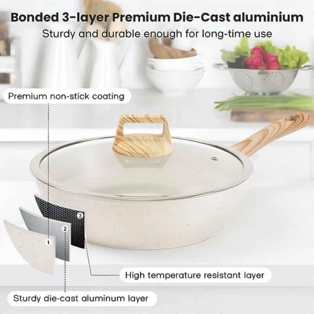 12pcs Pots and Pans Set Non Stick Kitchen Cookware Sets Induction Cookware Nonstick Granite Cooking Set with Frying Pans, Saucepans, Steamer Silicone Shovel Spoon & Tongs (Black) Superior Granite Quality: Feature premium granite coating ensures long-lasting durability and exceptional non-stick properties, making cooking a breeze. Non-stick and PFOS & PFOA-free,SGS Approved cookware sets allow you to cook healthy and safe. Rapid & Even Heat: Nonstick pots and pans set is equipped with durable aluminum core to make pan heats up quickly and distributes heat evenly, ensuring efficient and precise culinary results. Compatible with All Stovetops: From gas to electric and induction, nonstick cookware set are designed to work flawlessly on any cooktop. Effortless Cleaning: Simplify your kitchen routine with our cooking set, designed for easy cleaning and maintenance. Simply wipe with a paper towel or rinse with water to reduce time and water waste. Durable Bakelite Handle: With heat-resistant properties allow you do not worry about burning fingers in picking up the pot. Perspective glass lid ergonomic design allow you to check the status of the food in the pot in time. Versatile Cooking Set: SODAY 12 pcs kitchen cookware set includes 9 inch/11 inch frying pans, 11 inch/4.5QT saute pan with lid,4.3 QT saucepan with lid and steamer,1.5 QT saucepan with lid and silicone shovel spoon & tongs ideal for your daily cooking. Reliable After-sale Guarantee:If you have received defective nonstick pots and pans set due to delivery, please do not hesitate to contact us, You will be guaranteed a full refund or a new replacement. Upgrade your kitchen with this non-stick 12-piece granite cookware set. The set includes a saucepan, lid, and frying pan, all compatible with induction stoves. The black granite material and non-stick surface coating make cooking and cleaning up a breeze. The set is perfect for those who want a high-quality cookware set without the hassle of maintaining one. Get ready to cook like a pro with this Kitchen brand pan set. ABOUT US We offer the best prices around on high quality products. Our E-store includes Household category, sports category, holiday supplies, maternal and child products, etc . SHIPPING We are always working hard to ensure your package arrives as soon as possible. Please understand that some factors like weather, high postal traffic, and the performance of shipping companies are outside of our control. We offer free shipping to the lower 48 states and ship within 3 business days of payment, usually sooner. We do not accept P.O. Boxes. Please provide a physical address. RETURNS We offer a 30-Day Return Policy on items which you are not completely satisfied with. CUSTOMER SATISFACTION We try our very best to make sure every customer is completely satisfied. If there's a problem, message us! We're happy to help. WE ACCEPT PayPal On Nov 21, 2024 at 04:53:04 PST, seller added the following information: On Dec 13, 2024 at 00:22:58 PST, seller added the following information: