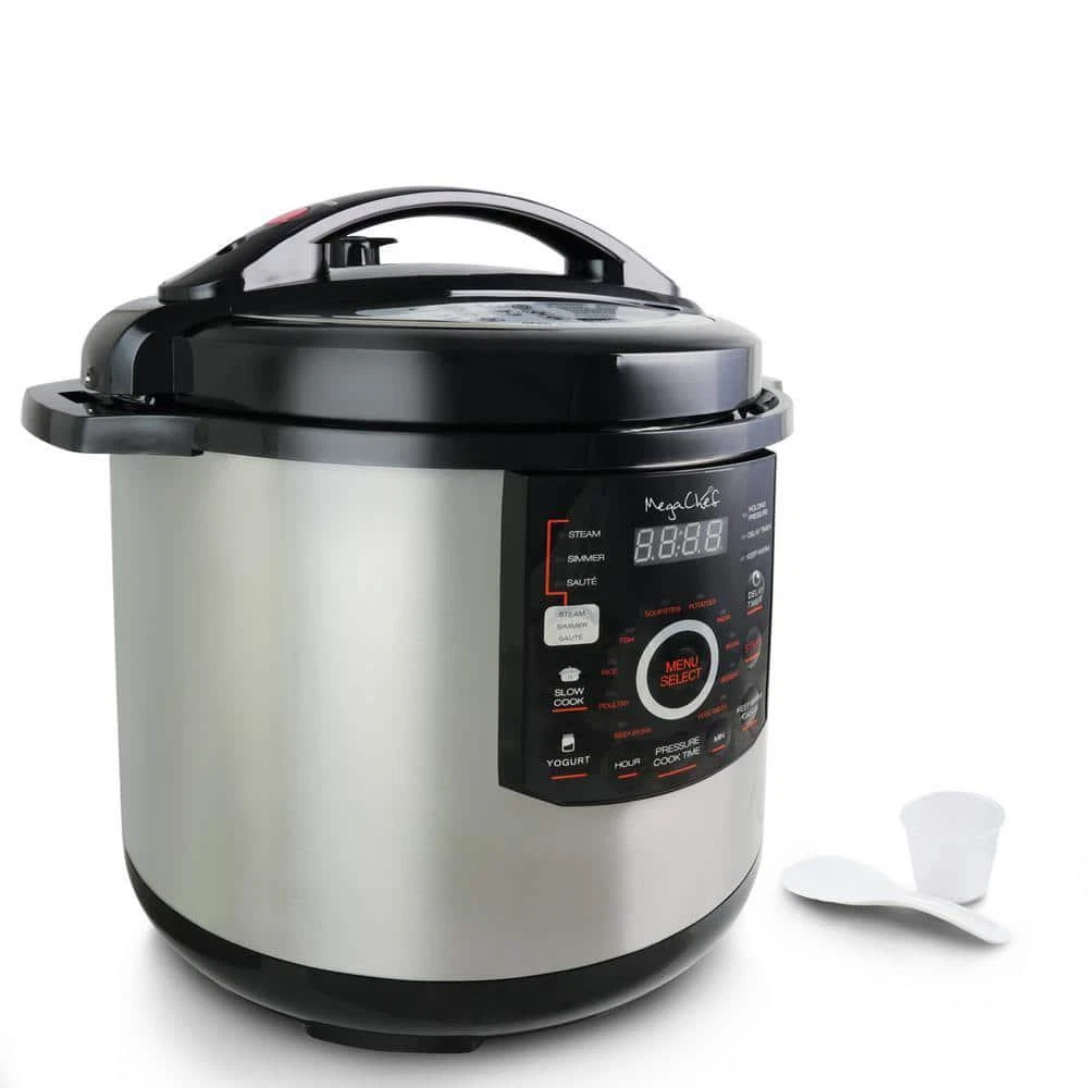 12 Qt. Black And Silver Electric Pressure Cooker With Automatic Shut-Off And Keep Warm Setting Store New Arrivals Add to Saved Sellers View Feedback Contact 12 Qt. Black And Silver Electric Pressure Cooker With Automatic Shut-Off And Keep Warm Setting Electric pressure cooker with 15 presets simplifies usage Digital control panel ensures intuitive control 12 qt. capacity is ideal to feed a large family Automatic shut-off feature prevents accidents Stainless steel interior is easy to clean with a normal detergent Mega chef 12 Qt. Digital Pressure Cooker with 15 Presets is sure to become your favorite kitchen sidekick. This versatile kitchen appliance will serve you well in those busy times when you need a hot homemade meal to serve without the hours it takes to prepare. You'll love how easily you can produce the best possible results with succulent and delectable dishes. With this pressure cooker you also have the option to cook using the slow cook function for up to 9.5 hours. That means some of the heartiest stews and chilies your guests have ever tried, and they're all prepared by you from scratch. Cooking under pressure allows you to cut the cooking time up to 70% and that means you have more free time to really enjoy the things you'd love to make more time for. Appliance Type: Pressure Cooker Capacity (L): 11.35 Capacity (oz.): 384 oz Capacity (qt.): 12 qt Color/Finish: Black, Silver Color/Finish Family: Silver Commercial Use: Residential Features: No Additional Features Handle Material: Aluminum Heat Source: Electric Includes: No Additional Items Material: Stainless Steel Number of Lid Locks: 1 Number of Pieces: 6 Number of Temperature/Cooking Controls: 12 Preset Cooking Options: Desserts,Keep Warm,Meat,Poultry,Rice,Soup,Steam,Vegetables Product Weight (lb.): 18.7 lb Small Appliances Color Family: Grey Small Electric Product Type: Pressure Cooker Style: Casual,Classic Wattage (W): 1600 W Certifications and Listings: UL Listed Manufacturer Warranty: Limited Handle Length (in.): 1 in Product Depth (in.): 15 in Product Height (in.): 17 in Product Width (in.): 17 in ABOUT US Customer service is our top priority! Please be sure to read the description thoroughly to make sure that this is the item you want before making a purchasing decision. If you have any questions about this item, please contact us via eBay messages before placing your order. We make every effort possible to accurately describe and depict the items. Please be aware that slight variations in color may be due to differences in lighting and computer monitor resolutions. All items are in stock at the time of listing; however, in the unlikely and unforeseen event that we are unable to fulfill your order through any of our networked warehouses, we will notify you as quickly as possible and offer you a 100% refund on your purchase. Thank you for shopping with us. We appreciate your business! SHIPPING We provide fast, free shipping. Most items are shipped within 3-5 business days of receiving cleared payment. We ship to the lower 48 contiguous United States only. We do not ship to P.O. Boxes or APOs. For select items, we ship internationally through eBays Global Shipping Program. We do ship most of our smaller items internationally using eBays Global Shipping Program. If ordering electrical items outside of the U.S., please note that they will come equipped with a standard U.S. voltage plugs. You will need a suitable adapter to use the item in your country. Certain restrictions apply. Standard or Economy Shipping is ALWAYS FREE! You will be notified via eBay messages as soon as your items ship. Special Notice for Freight Items: If an item ships via Freight (Truck) Delivery, a valid phone number will be required so that we can contact you to schedule delivery. The item may be delivered with curbside delivery. An adult signature will be required. Please be sure to have available help on hand to assist you with moving the item to the desired location in or outside of your home. Freight items must be inspected upon delivery. In the unlikely event that damage is observed, you MUST refuse delivery and note the damage on the shipping receipt and send it back via the Freight carrier. Returns will not be accepted on Freight items after they have been delivered, inspected, and the driver has left the premises. RETURNS When returning an item, it must be in all of the original packaging and include all of the original accessories or items that came with it. The item and package should be in original and perfect condition. You will be required to cover shipping on the return of non-defective items. All returns MUST be done within 30 days of date of purchase. Please note that we cannot give refunds or replacements after the 30 day limit has expired. When sending in a return, please note that it can take up to 7 business days for the return to be processed. We do our best to process as quickly as possible. We are extremely fair, and in the rare event of something out of the ordinary happening with our products or shipping, we will gladly work with you to find a fair resolution. PAYMENT We accept all of the standard payment options offered at eBay checkout. To provide a safe experience, eBay only allow payment methods that offer strong protection for buyers and sellers. Your order will be processed pending receipt of cleared payment. Sales tax may be charged depending on your location. DISCLAIMER We are sorry, but we do not honor product exchange requests. If you need to exchange an item received, you will need to go through the normal returns process identified in our returns section and then order the correct item, if it is still available. Orders are processed immediately and dispatched to fulfillment as soon as they are received. For this reason, we are typically unable to honor cancellation requests. If you need to cancel the transaction, please contact us as soon as possible and we will attempt to cancel the order. If the order has gon