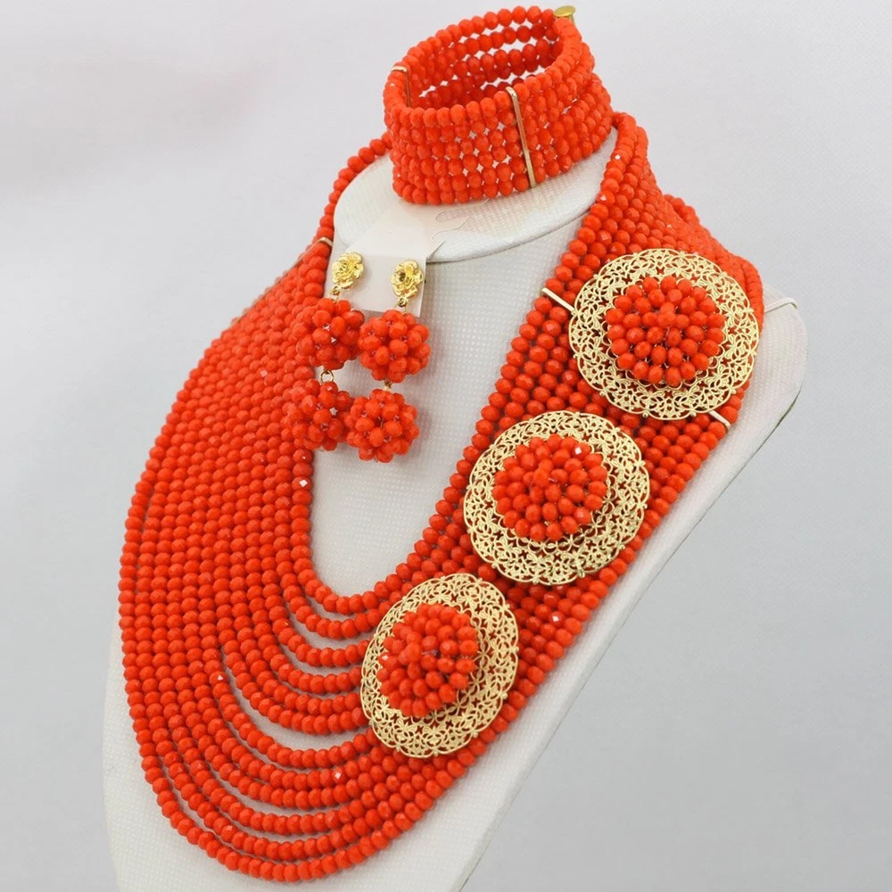 12 Rows 6mm Nigerian Wedding Beads Necklace Orange Crystal African Jewelry Set Product Details Is Discontinued By Manufacturer : No Package Dimensions : 6.57 x 5.08 x 1.77 inches; 14.4 ounces Item model number : AB0874 Department : womens Date First Available : June 17, 2015 Manufacturer : Africanbeads Country of Origin : China Brand, Seller, or Collection Name: Africanbeads Metal stamp: NO Metal: alloy Material: Crystal Chain: No Chain Clasp: Golden Tone Clasp Resizable: No Number of stones: 66 Model number: AB0874 African Necklace, Beads Jewelry set,Nigerian Wedding African Beads Jewelry Set,Wedding Necklace Included Item: Necklace/Earrings/Bracelet Jewelry style:African Beads Jewelry Set Size of Beads:6MM Package:1Necklace 1Bracelet 2Earrings