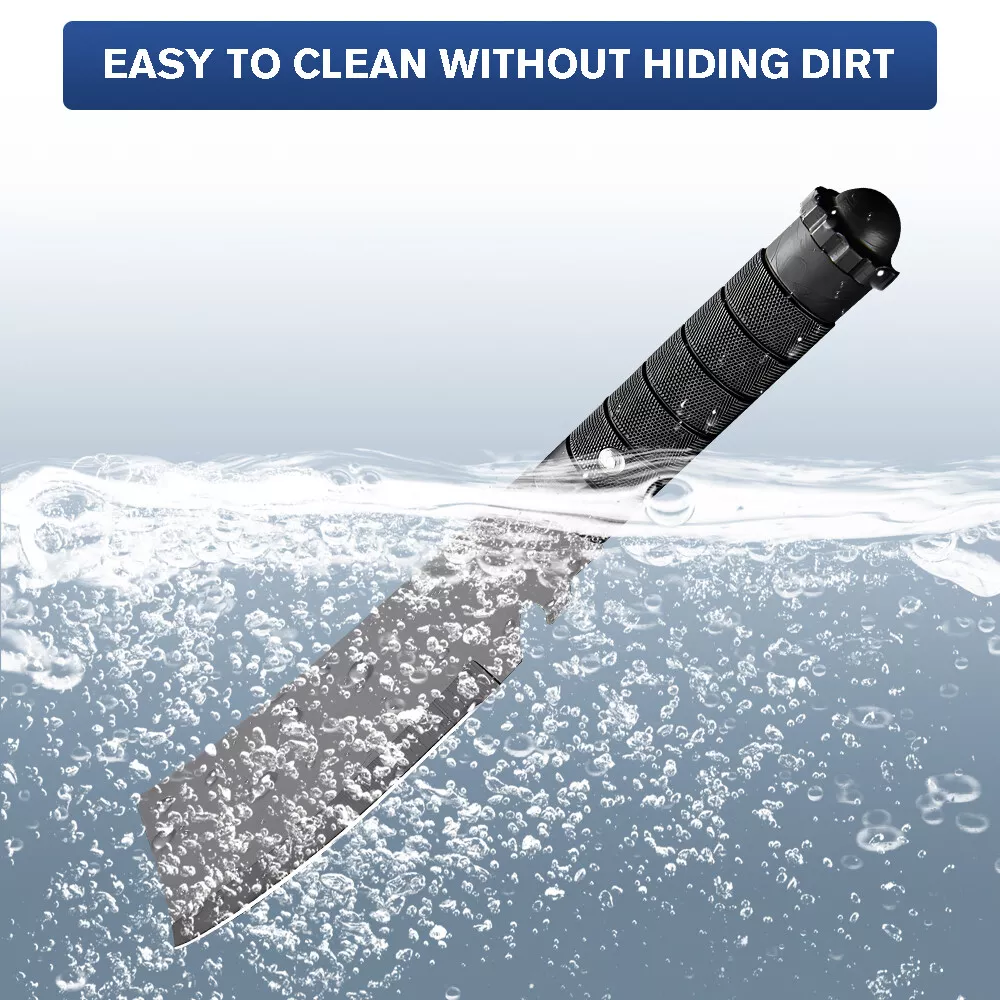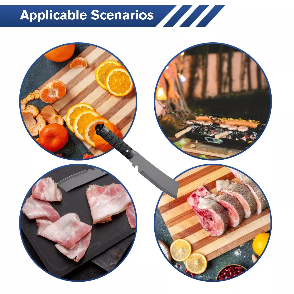 Length: 30.5cm (12.0 inches) Weight: 165g (5.82 oz) Blade Length: 18.5cm (7.28 inches) Blade Thickness: 1.8mm (0.07 inches) Blade Material: 4Cr13MoV Stainless Steel Handle Material: ABS DURABLE: Blade Is Made Of Reliable 7Cr17Mov Black Oxide High Carbon Stainless Steel With A Black, Aluminum Handle DEPENDABLE: Quick And Easy Access With The Convenient Pocket Clip, Finger Flipper And Ambidextrous Thumb Knobs Making It Ideal For Everyday Carry SECURE: Have Confidence That The Blade Will Not Slip With The Security Of The Liner Lock BE PREPARED: Knife Features Jimping And Serrations
