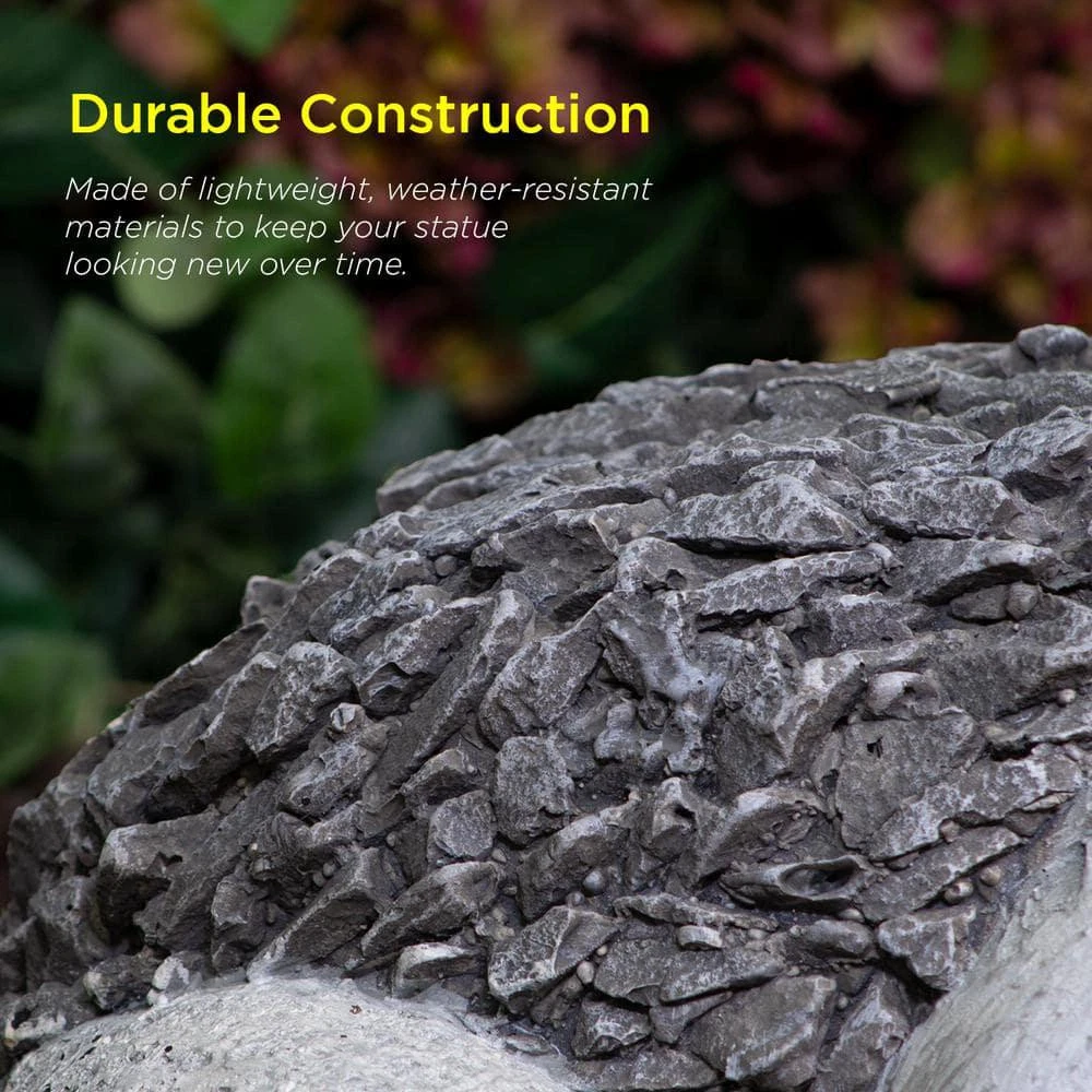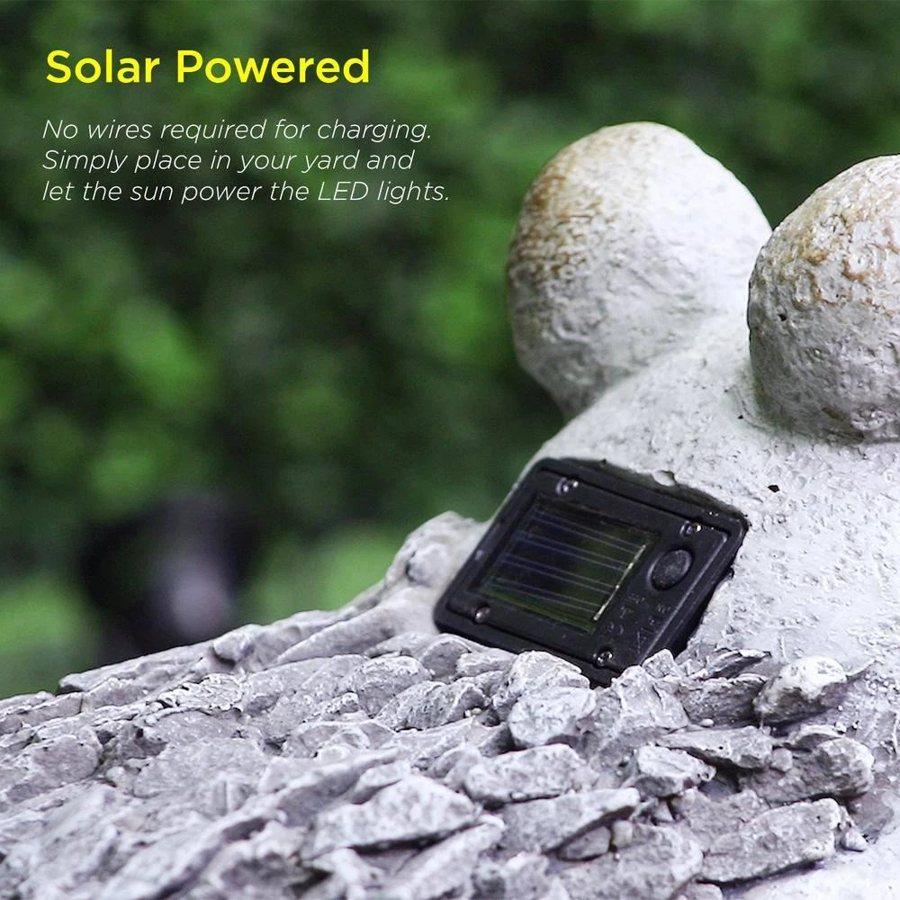 12 in. Tall Outdoor Solar Powered Frog Yard Statue with LED Lights, Gray Solar powered - set it in a sunny spot in your yard and enjoy Features LED lights for a lovely ambiance Durable and versatile for long-lasting enjoyment Welcome your house guests with the warm and inviting 12 in. Outdoor Solar Powered Frog Yard Statue with LED Lights from Alpine Corporation. This statue features an adorable happy frog that provides a unique and decorative addition to your home's exterior Decor. The lighted yard art is powered by solar energy to keep your outdoor yard statue lit up and features a pair of white LED lights located in the frog's eyes. Constructed from durable magnesia, the yard art is made tough for outdoor use and is weather-resistant for long-lasting, quality use on your porch, patio, or flowerbeds. Add one or multiple statues to create an enchanted garden display. The yard decor is perfect for display on pathways, entryways, decks, courtyards, and outdoor living spaces. The outdoor garden statue measures 14 in. L x 16 in. W x 12 in. H to fit almost any outdoor space and a 1-year manufacturer's warranty from date of purchase. Color Family: Gray Garden Décor Features: Lighted Included Parts: LED Light(s) Indoor/Outdoor: Outdoor Material: Plastic Mounting Type: Free standing Outdoor Compatibility: Weather Resistance Primary Power Source: Solar Product Weight (lb.): 8.57 lb Returnable: 90-Day Style: Coastal Manufacturer Warranty: 1 Year Limited Warranty Product Depth (in.): 14 in Product Height (in.): 12 in Product Width (in.): 16 in