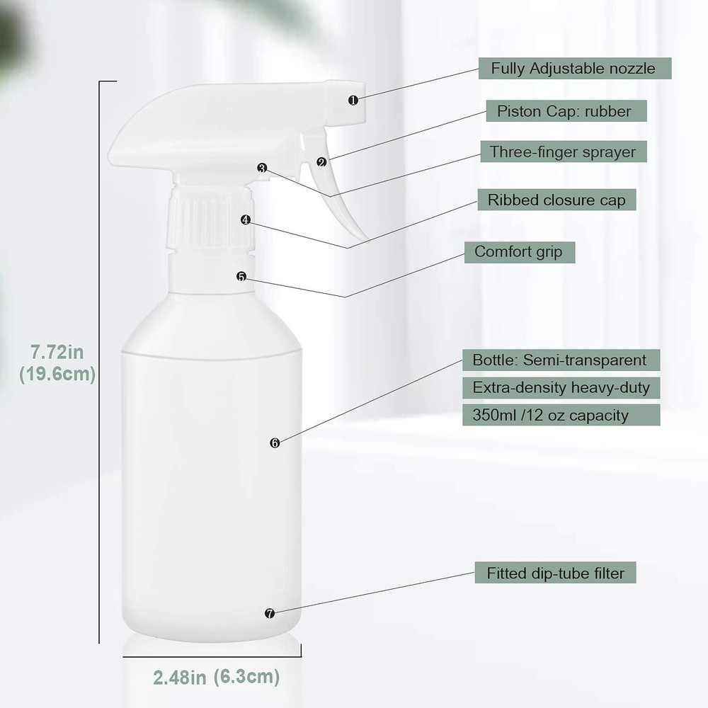 12 oz Leak-Proof Spray Bottle 2-Pack with Adjustable Nozzle for Versatile Use ‹ › ‹ › ‹ › ‹ › ‹ › ‹ › ‹ › ‹ › ‹ › ‹ › ‹ › 12 oz Leak-Proof Spray Bottle 2-Pack Experience the ultimate versatility and durability with our 12 oz Leak-Proof Spray Bottles, ideal for various applications from household chores to commercial tasks. This set of two features an adjustable nozzle that adapts to your needs! Features: Adjustable Nozzle with Three Modes: Effortlessly switch between a fine mist, steady stream, or off by simply rotating the nozzle. The long straw ensures complete liquid utilization, preventing residue accumulation. Durable HDPE Bottles: Crafted from HDPE plastic, these bottles are BPA-free and chemically resistant, ideal for solutions like bleach, vinegar, and rubbing alcohol. They withstand drops and resist the corrosion of acids and organic solvents up to 176℉. Leak-Proof Design: With a robust polypropylene spray head and a precision valve, these bottles are tested for over 50,000 pumps to ensure leak-free and clog-free usage, no matter how you position them. Multi-Purpose Use: Perfect for cleaning solutions at home, car detailing, pet training, or even watering plants, these bottles prove to be valuable resources across various activities, making them safe and reusable. Ergonomic Trigger & Neck Design: Enjoy a comfortable grip with the 3-finger trigger feature that reduces hand fatigue, allowing for prolonged use without discomfort. Benefits: Versatile for home, commercial, and industrial applications. Robust design that supports long-term use without compromising performance. Safe for personal and household usage thanks to BPA-free materials. Easy to clean and reuse, promoting eco-friendliness. Convenient ergonomic design enhances user experience. Why Choose Our Leak-Proof Spray Bottles? Transform your cleaning and maintenance tasks with our Leak-Proof Spray Bottle 2-Pack. Built with high-quality materials and meticulous design, these bottles offer unmatched durability and performance, making them the perfect addition to your cleaning arsenal. Whether you’re tackling household chores or professional cleaning, you’ll appreciate the ease of use and adaptability of these versatile spray bottles. Don’t settle for less – order your set today and elevate your cleaning experience! Shipping Free & Fast Shipping - We offer free shipping to most of the USA with a normal delivery time of 3-7 days. However, due to the current situation, additional delivery time (up to 3 weeks) may be required for some items. Alternative Carriers - We may use alternative carriers (e.g. USPS, FedEx, UPS, etc.) to ensure your package arrives safely and on time. Due to the use of multiple carriers, we are unable to provide a tracking number automatically. Handling Time - Orders are processed and shipped within 1-2 business days of receiving cleared payment. Shipping Restrictions - Shipping to Alaska, Hawaii, Puerto Rico, Guam, and other US territories may incur shipping charges or delivery restrictions. Please contact us before ordering, or your order can be refunded/cancelled. State Restrictions - There may be restrictions based on your state of purchase. For example, certain items may not be shipped to California due to state regulations. Contact for Tracking Updates - If you require tracking updates or have any concerns about the delivery of your order, please feel free to contact us, and we will be happy to assist you. Return 30-Day Hassle-Free Returns - We want you to be completely satisfied with your purchase. If you are not, you can return the item within 30 days of receiving it for a full refund or exchange. Easy Return Process - To start a return, simply contact us and we will provide you with a prepaid return shipping label and detailed instructions. Restocking Fee - There are no restocking fees for returns. However, the buyer is responsible for return shipping costs if the return is not due to a seller's error. Refund Processing Time - Refunds will be processed within 5 business days of receiving the returned item in its condition. Payment We accept all major credit cards, PayPal, and Apple Pay for your convenience. Your payment information is secure and encrypted to ensure a safe and seamless transaction. Please complete your payment within 3 days of purchase to avoid any delays in shipping. Feedback Your feedback is extremely important to us. We strive to provide the best products and customer service possible. If you are satisfied with your purchase, please take a moment to leave us a positive review. If you have any concerns or issues with your order, please contact us before leaving negative feedback. We are committed to resolving any problems and ensuring your satisfaction. Contact Us If you have any questions or concerns, please feel free to out to our customer support team. You can contact us through the eBay messaging system. We are available Monday to Friday, 9:00 am to 5:00 pm EST, and we will do our best to respond to your inquiry within 24 hours. Buy it now and enjoy a pleasant shopping experience! Model: Spray Bottle Unit Quantity: 2.0 Material: Plastic,HDPE,BPA Free,Polypropylene Features: Adjustable,Reusable,Leak-Proof,Refillable,3 Ways Adjustable Nozzle,Long Straw,Durable,Ergonomic Trigger Design Type: Spray Bottle Color: Nozzle Size: Standard Unit Type: fl oz