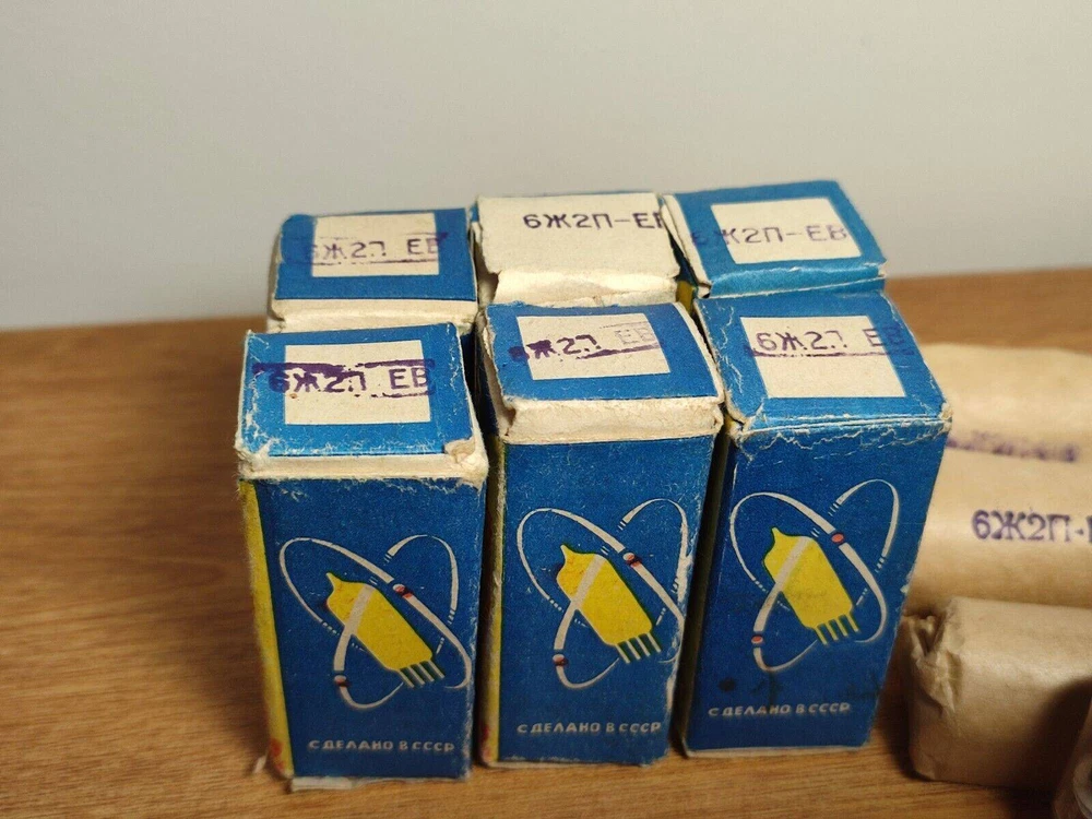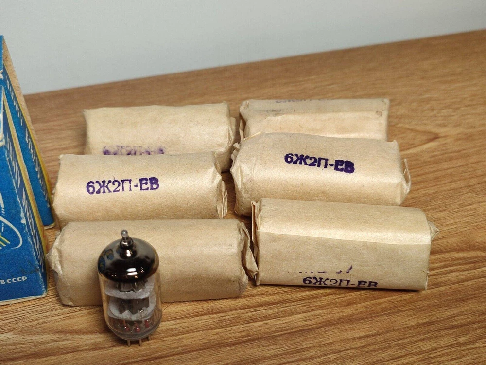 12 pcs 6J2P-EV, 6Ж2П-ЕВ NOS Russian gold grid RADIO tubes equiv. to 6AS6, 6F33 NEW NOS in BOXES AND WRAPPS NOS New Old Stock never used. HF pentode with brought out suppressor grid - pin 7 (not connected with cathode - pin 2 inside the tube) Gold plated control grid see picture. Attribute -EV indicates tube with longer lifetime more than 5000 hours, higher reliability and mechanical endurance. --------------------------------------------------------------------------------------------------------------------------------------------------- Import duties, taxes and chargers are not included in the item price or shipping charges. These charges are the buyer's responsibility. Please check with your country's customs office to determine what these additional costs will be prior to bidding buying. Combine shipping is accepted. If you need less or more items of this type, or if you need add some other items, contact us, and we will make special listing for you. Give us the list of items you need, and we'll do the rest. We have many other vacuum tubes for audio and other, ask us if you need any of them. Items are shipped from Lithuania Post (Europe Union) via expedited International tracking. Returns We guarantee you complete satisfaction with all our high quality products. If you receive an item you did not order, or if an item you ordered is received damaged or defective, we will refund you the price you paid for it or replace it with identical one. The item should come to the above address within 30 days after you received it. After 30 days we will no longer be responsible and the item won't be taken back. Item for returning must have the original tags and packing, otherwise it won't be accepted.