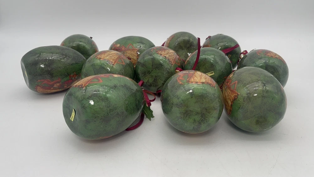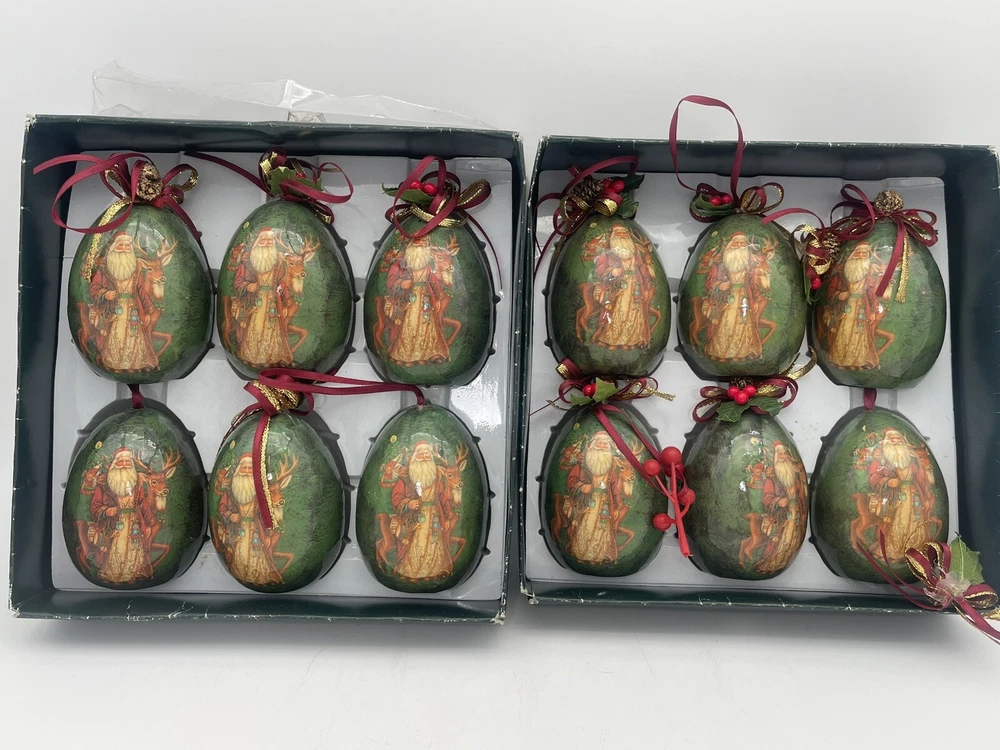12 pcs | Vintage Egg Shaped Decoupage Santa With Reindeer Christmas Ornaments | Paper Mache Christmas tree Ornaments | Mache Christmas See my other listings π£ππβοΈ Please view and zoom in all images for item condition and what the item consists of. Colours may be slightly different than shown due to screen variations. Keep in mind this is a pre owned item and there is visible wear all over from years of loving using. There are scratches, stains, dents, breakage, missing pieces, crazing, rust and colour discolourations. Everyone has a different perception of item quality, thus we leave it up to the buyer to decide and evaluate on an itemβs condition. No original boxes. No chargers/adapters/batteries included. Questions, more pictures, videos? ask us π Happy shopping! *No staging elements are included in this sale* *sorry, no refunds, returns, cancellations or exchanges. For electrical items, please ensure wiring, plugs, batteries, and lightbulbs are compliant/safe before usage. Light cord is for USA-CANADA. Lightbulb not included. Please ensure cables or wires are away from children and pets. Adult supervision is required. I accept no responsibility or liability for the items that I sell. When purchasing jewelry, please ensure claps/connecting hooks are well closed before inserted a chain, charm, etc, or wearing your piece of jewelry purchased. All items are sold AS IS WHERE IS, with no guarantees or warranties (express or implied). I always ship with a tracking number and this number will be provided to you. You are responsible for tracking your order. For orders over $300 CAD for each item (shipping and taxes not included) a signature on delivery will be requested, therefore please ensure that you are available to receive your parcel(s). Unfortunately, I am not responsible for any lost, stolen, missing, undeliverable or unclaimed parcel(s) and no refund or any other type of compensation will be given should this happen. In addition, no recourse towards me will be possible should your parcel(s) be lost, stolen, missing, undeliverable or unclaimed. Once the package leaves our possession, we are not responsible for any damages incurred while transit or reception of opening package. If your package is delivered damaged, please reach out to us immediately (the day of delivery of package- not any other moment), to see if we can help you and assist you with filing a claim with the carrier. You must retain original box, item, and packaging material. Helping you or assisting you with filing a claim does not in any way constitute recourse towards us for your damaged item or that you will be compensated for your item.