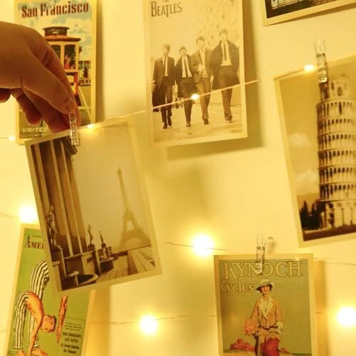 52 Separate Clear Clips:The clips come separately so you can use it with or without photos! 120 LED String Lights total length 40Ft, 10cm between 2 blubs. (Package includes 52 clear clips and 1x 40ft USB led string lights with Remote) It allows you to freely adjust the position of the clips Timer & 8 Lighting Modes: Newly upgraded timing function, fairy lights allowing you to directly select timing of 2H, 4H, 6H, 8H through the remote control, more flexibly meeting your usage needs in different scenarios; With the remote control, you can easily turn on and off the lights, control the brightness, and adjust the lighting mode. Make it the perfect embellishment for your home decoration USB POWER & Remote Control: The fairy string lights with clips quipts with USB port, Suitable for adapters, mobile power supplies, PCs, etc. Twinkle string lighs with usb can be reused, saving battery costs (Notes: Not included USB charger). With a Smart Remote in hand, you can easily turn on/off the lights Safe Decorative Lights: Turned the space from a boring and dull environment, into a fun and inviting place to be. it is NOT ONLY a perfect string lights for bedroom, It is ALSO an outdoor or indoor string lights decoration without the photo pins. String lights with clips to hold pictures can be put in a jar, perfect for hanging pictures for your bedroom, wedding parties, Christmas or birthday party USB Powered & Waterproof: The fairy lights with clips is waterproof and the Silver coated copper wire part can be put into water to achieve amazing atmosphere effects. The light is used with USB power supply, it is easy to carry so that it can be used as a portable string light in any places such as deck, camping, barbecue and so on. Perfect decor anywhere