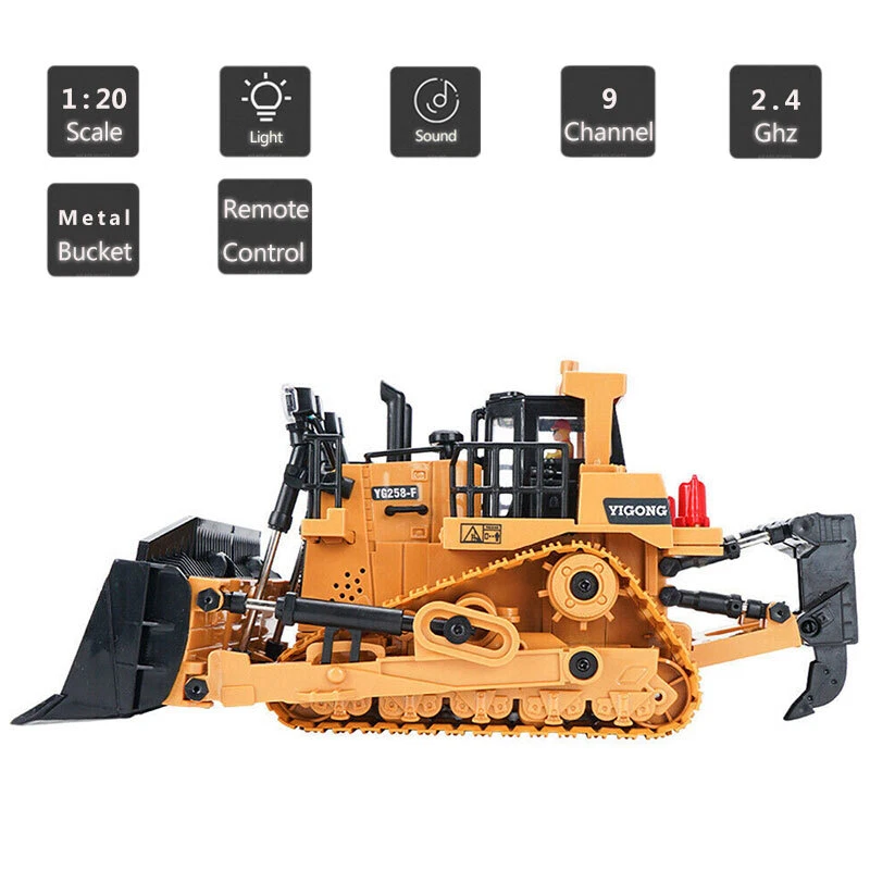 1:20 Remote Control Bulldozer RC Truck Toy Light Sound Toys for Boys Kids Gifts Item Type Remote Control Tos & RC Toys Scale 1:20 Material Diecast (Metal Bucket) and ABS Color Yellow Dimension About L9.8" x W5.3" x H4.3" (L25.0 x W13.5 x H11.0 cm) Vehicle Type RC Bulldozer Function *Can move forward and backward *Can turn left and right *The bucket of the dump truck can be rise and down *With sound and light function Packing Packed in original color box, in excellent condition Tips Great choice of gift for kids, especially for Birthday, Christmas and New Year Gift Warning Don't put in mouth/Keep Away from Fire/Not for Children under 3 Years Notice *Due to manual measurement, please allow a little error *The 2.4 GHz Remote controller needs 2 1.5V AA Batteries (Not Included) *The charging time is about 3-4 hours, for about 30 minutes play time Package include 1 x RC Bulldozer Toy 1 x 2.4 GHz Remote Controller (Batteries Not Included) 1 x USB Charge Cable 1 x 3.7V Rechargerable Battery 1 x Instruction Manual Payment Delivery details Terms of sales Payment We accept paypal only. Delivery details We ship orders within 24 hours upon receipt of payment. Terms of sales We provide great products and service. If you have any problems with the order,please do contact us before leaving negative feedback and opening case on eBay.