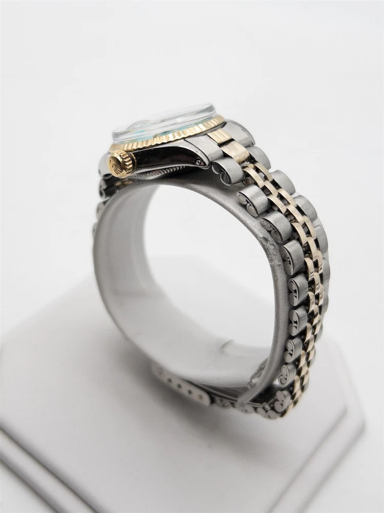 Item Description: 18k Yellow Gold and Stainless Steel. RARE Find and so nice and rare ROLEX DATEJUST. Blue Tiffany & Co dial and mesmerizing. 6.7 inches long and just serviced with a 1 year parts and labor warranty. This is a service that Rolex would charge around $2000 for...you get it for peace of mind at no additional charge. WOW!!! Great looking timepiece and just awesome. RetaiL $12,000. Brand: Rolex Metal: 18k Yellow Gold and SS Movement: AUTOMATIC Gram Weight: 40.2 Powered by SixBit's eCommerce Solution
