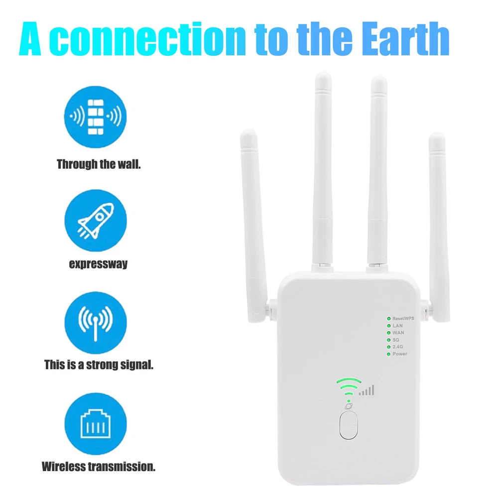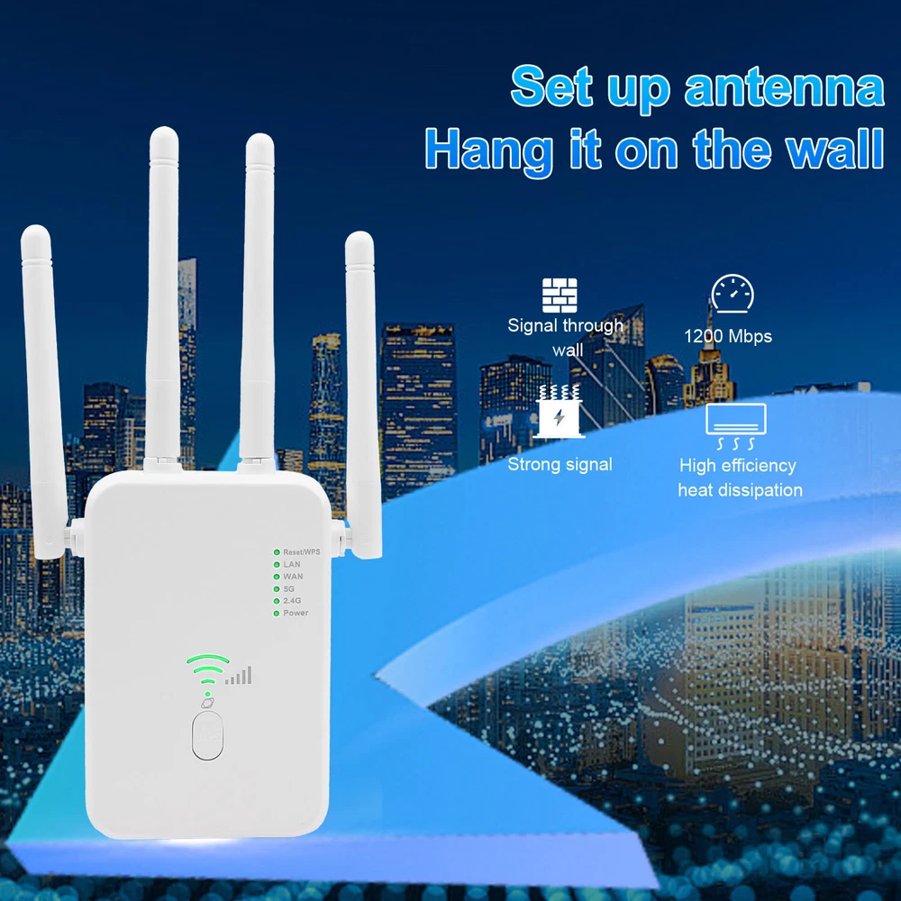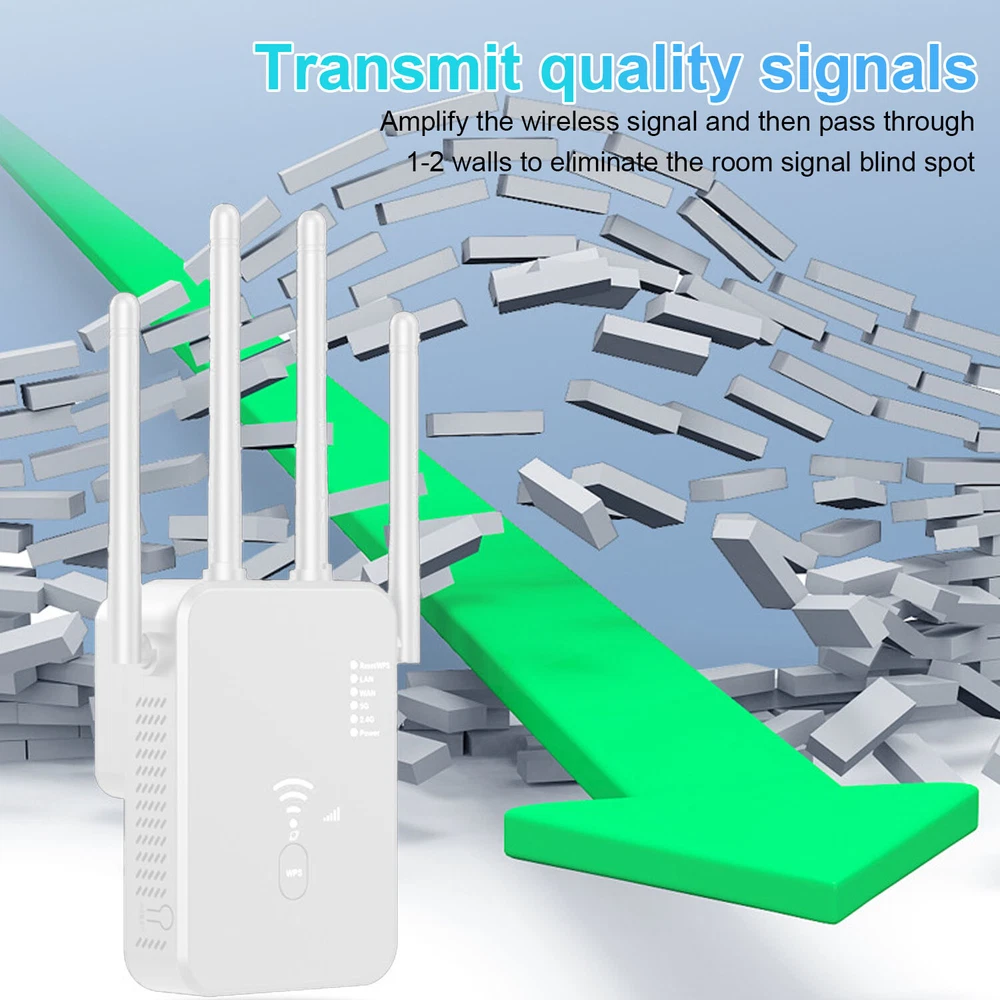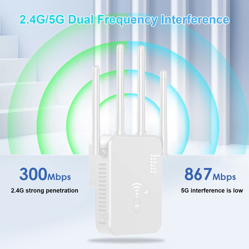 Feature: 【STABLE SIGNAL BOOSTS】- With dual band technology, this WiFi range extender can automatically choose high-quality band for better performance. It offers up to 300Mbps for 2.4GHz and 867Mbps for 5GHz. Totally 1167Mbps is available for your use, maximizing reduces the loss of data transmission. 【EASILY FIND THE PERFECT SETUP SPOT】- Smart signal indicator helps you to find the best location for wifi coverage. This WiFi range extender can help you get rid of testing instantly and set up quickly. After extending successfully, you can relocate a perfect spot which can maintain a best extending effect. 【FULL SIGNAL COVERAGE】- Equipped with dual external antennas, this WiFi repeater extends WiFi coverage 360 degree by up to 50M. Reliable data transmission rate up to 1167Mbps covering your bedroom, floors, restroom and garden. Gigabit Ethernet port also allow this WiFi booster function as a wireless adapter to connect wired devices. Specification: Material: Plastic Color: White/Black Rated Voltage: 100-240V Wi-Fi Band: 2.4GHz Plug Type: US Interface: 1x10/100M Wan Port 1x10/100M Lan Port Transmit power: <200dBm (EIRP) Package includes: 1 x Dual Band Wifi Repeater 1 x Networking Cable 1 x Manual
