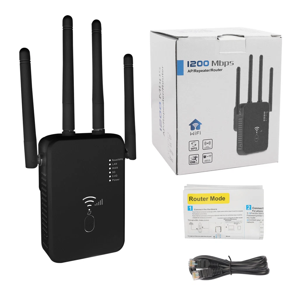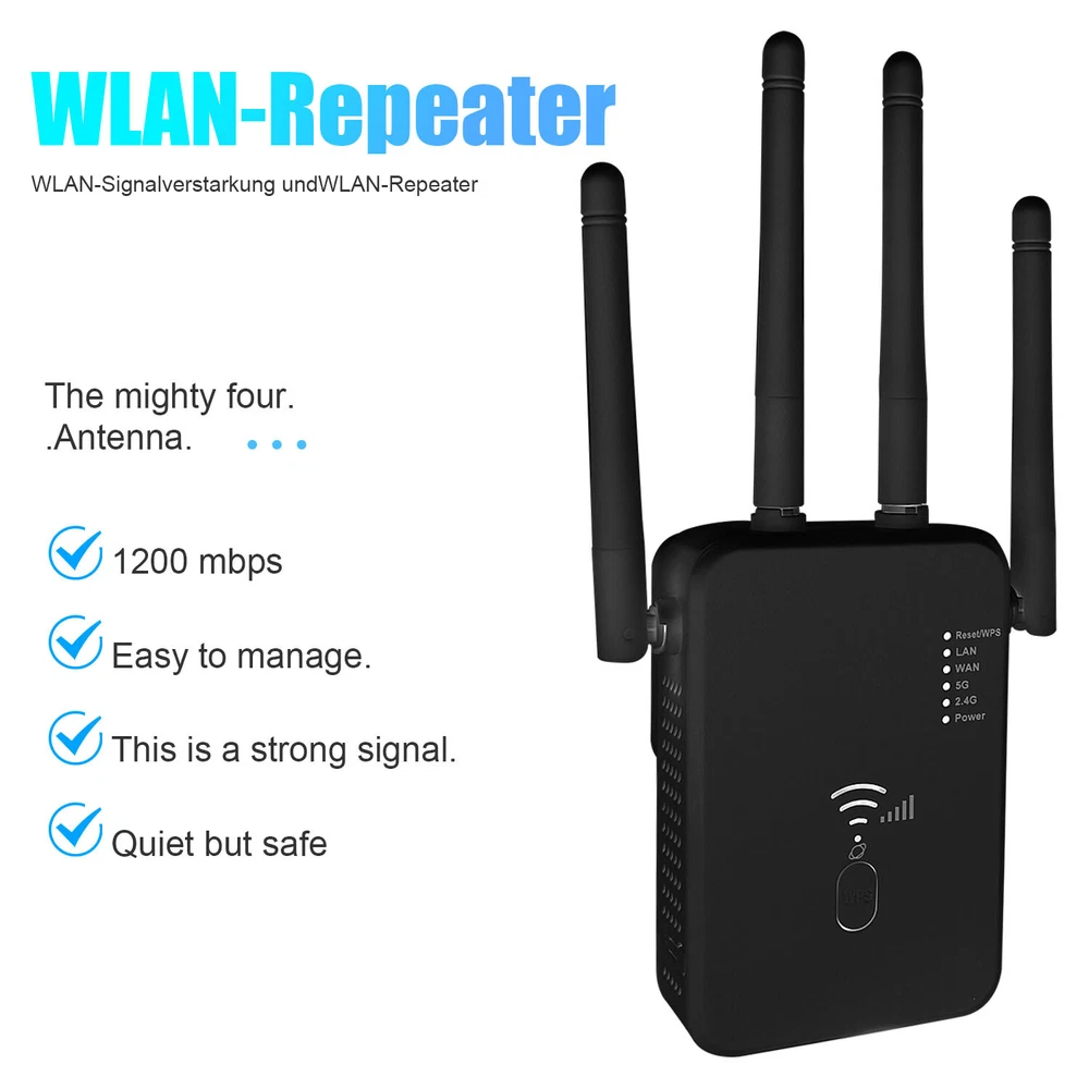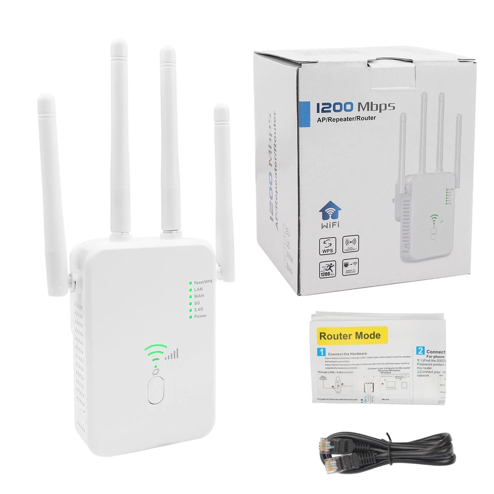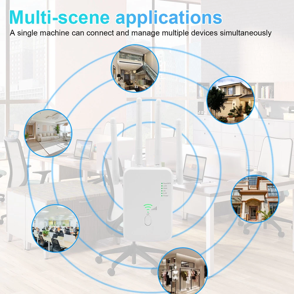 Feature: 【STABLE SIGNAL BOOSTS】- With dual band technology, this WiFi range extender can automatically choose high-quality band for better performance. It offers up to 300Mbps for 2.4GHz and 867Mbps for 5GHz. Totally 1167Mbps is available for your use, maximizing reduces the loss of data transmission. 【EASILY FIND THE PERFECT SETUP SPOT】- Smart signal indicator helps you to find the best location for wifi coverage. This WiFi range extender can help you get rid of testing instantly and set up quickly. After extending successfully, you can relocate a perfect spot which can maintain a best extending effect. 【FULL SIGNAL COVERAGE】- Equipped with dual external antennas, this WiFi repeater extends WiFi coverage 360 degree by up to 50M. Reliable data transmission rate up to 1167Mbps covering your bedroom, floors, restroom and garden. Gigabit Ethernet port also allow this WiFi booster function as a wireless adapter to connect wired devices. Specification: Material: Plastic Color: White/Black Rated Voltage: 100-240V Wi-Fi Band: 2.4GHz Plug Type: US Interface: 1x10/100M Wan Port 1x10/100M Lan Port Transmit power: <200dBm (EIRP) Package includes: 1 x Dual Band Wifi Repeater 1 x Networking Cable 1 x Manual
