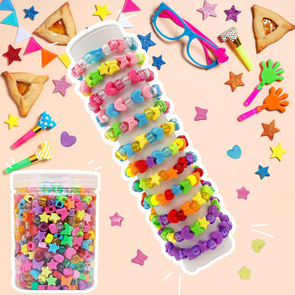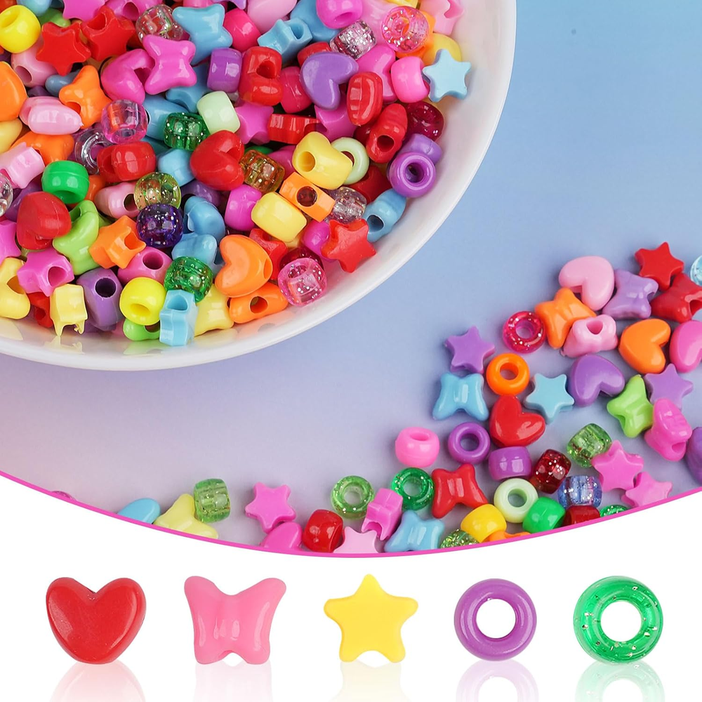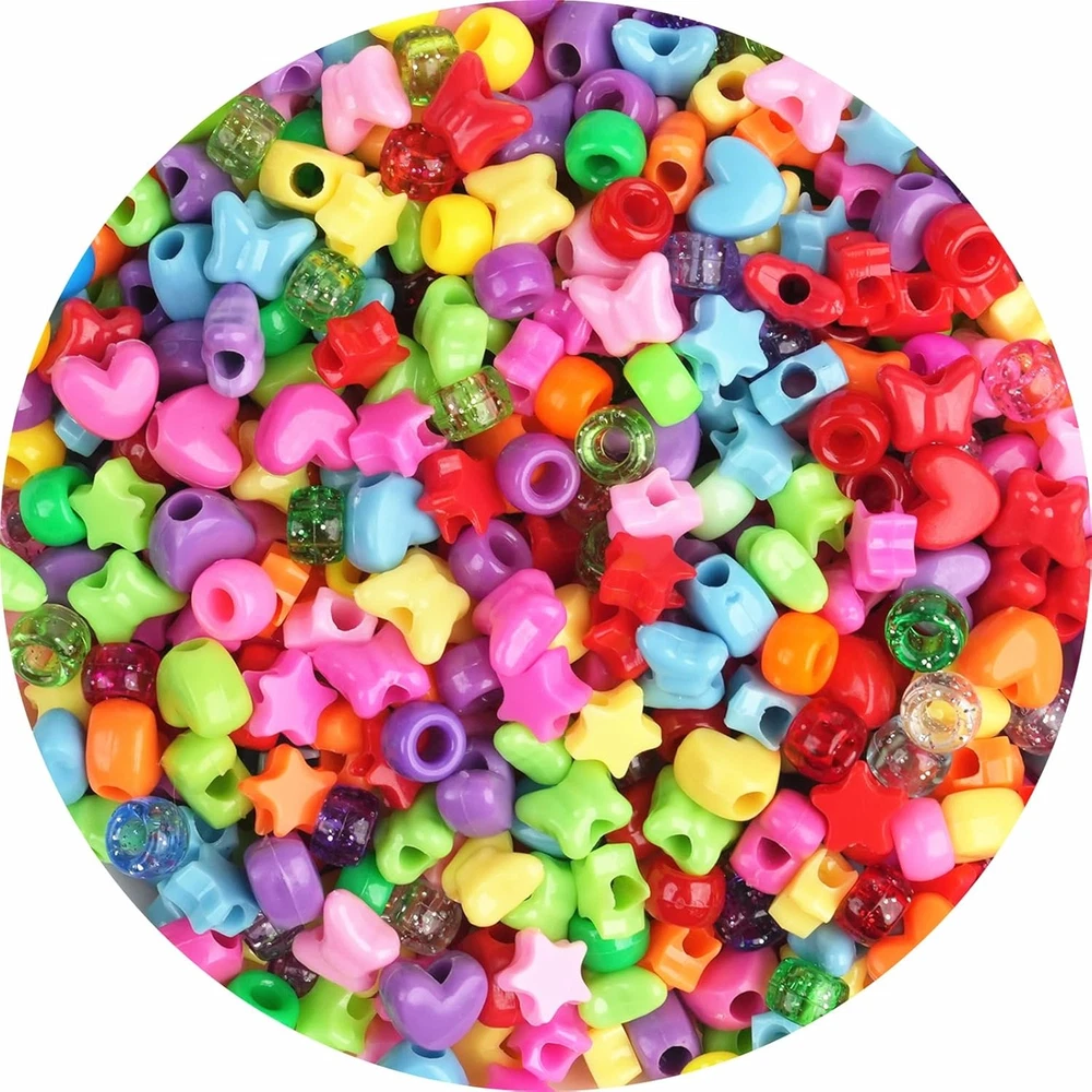 【Bead Assortments and Size】You will receive 1200pcs pony beads bulk, including heart beads, five-pointed stars, butterfly beads, opaque colored pony beads and glitter pony beads. With multi assorted colors and designs, which can meet the needs of different handicraft creations. These beads have exquisite packaging, easy to access. They are made with the common size, the hole is all the same, 4mm large hole is ideal for stringing, very easy to match and use 【A Great Choice for Crafts and Gifts】These colored beads are suitable for a huge variety of craft projects. They are perfect for jewelry making, DIY name bracelets and friendship bracelets, necklaces, earrings, it also can be used for various party decorations, key chains, phone chains, wind chimes, hair accessories beading, etc. These are perfect as a small gift for your family, lovers, your best friends, classmates, colleagues, etc. In addition, it can be used for various festival decorations, birthday party, music festival, etc 【Good Learning Tool】These colored shaped pony beads are a great tool for teachers and parents. They are widely used in the home or community centers, there are many functions. They can be used to learn to sort colors, weigh and count, exercise fingers and develop the sense of aesthetic, various shapes and colors can better stimulate creativity 【Enjoy a Happy DIY Time】With a sufficient number of beads in each pack, you can share with friends to make friendship bracelets or handicrafts, which can be preserved for a long time, witnessing the happy DIY time and retaining good memories, this will be a very meaningful thing 【Quality Guaranteed】These pony beads are made of good-quality colored plastic, well made with a smooth surface, sturdy, lightweight and durable, not easy to break and fade, they can be used repeatedly for a long time. If you have any problems with your purchase, please feel free to contact us, we will provide you nice service to meet your satisfaction Product Description Share the Good We insist on the idea of conveying beauty to more people, carefully selecting high-quality plastics to make pony beads to better meet your use of experience. Bead Assortments and Size You will receive 1200pcs good-quality colored plastic pony beads bulk, with multi assorted colors and designs, including heart beads, five-pointed stars, butterfly beads, opaque colored pony beads and glitter pony beads. With multi assorted colors and designs, which can meet the needs of different handicraft creations. Each colored pony bead beads for jewelry making is designed with a large hole, which is ideal for stringing and they are convenient for assorting with letter beads, flower beads, hexagon beads, etc. They are suitable for all kinds of crafts, jewelry makings, hair braids. Assorted Colors and High Quality These assorted colors beads are cute in shape, full and bright in color, very textured, the whole body is made of high quality plastic, molded in one piece. They are well made with a smooth surface, sturdy, lightweight and durable, not easy to break and fade, they are the perfect choice for handicrafts. High-quality beads can better show your excellent taste. The Perfect Choice for Handmade Full colors and shapes can make your handicrafts more vivid and increase your taste for fashion. In addition, bright colors can add vitality to life. The process of making handicrafts makes your fingers more flexible, enables you to concentrate better and relaxes your body and brain. The smooth exterior of the beads provides better protection for hands. The large 4mm hole diameter, greatly reduces the difficulty of use, in the process of handmade DIY easily gain the confidence of creation, better cultivate creativity and imagination, improve aesthetic ability. Exquisite Packaging and Widely Used These beads have exquisite packaging, easy to access, the width of the jar storing beads is 3.35inch, the height is 4.33inch. They are perfect for jewelry making, DIY name bracelets and friendship bracelets, necklaces, earrings, it also can be used for various festival decorations, key chains, phone chains, wind chimes, hair accessories beading, etc. A Great Choice for Gifts Use your fingers and imagination to make some small gifts for your friends. Whenever your friends see the small gift you sent,they will remind of you, as if you are always with them, better increase the feelings between each other, which is such a meaningful thing. Move your hands, play the imagination, experience the fun of DIY.