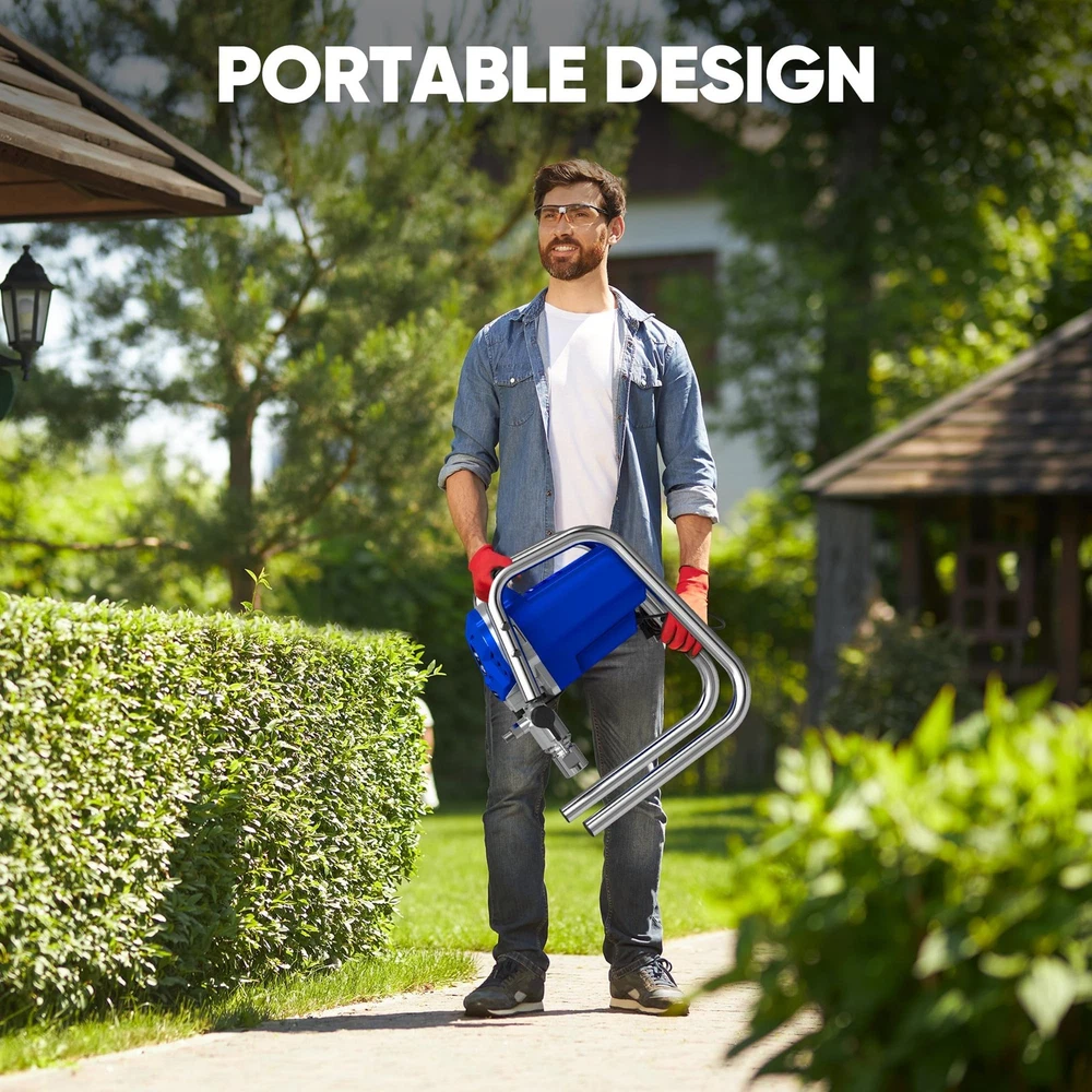 airless paint sprayer 【POWERFUL MOTOR】 airless paint sprayer has a 1200W motor that delivers a flow rate of 1.2L/min, which is 5X faster than roller painting, helping you to save your spraying time. 【TWO USE METHODS】This electric paint sprayer is very simple to use with the push of a switch, which has a direct nozzle and a 12-inch extension pole that can be used in two ways, making it easy for you to spray near and far. 【EVEN SPRAYING】With an adjustable spray pressure of up to 3300PSI, our electric paint sprayer is capable of efficient and even spraying, and is equipped with a 515 nozzle to make the paint more delicate, presenting a professional spray effect. 【COMPACT DESIGN】stand airless sprayer weights only 16.5 lbs, and is also designed with a multi-purpose portable handle and a 29.5 ft. long hose storage rack, making it not only convenient to store, but also easy to move and carry. 【WIDE APPLICATION】The paint sprayer machine is suitable for home interior and exterior, furniture, fences, decks, garage, etc., making it an excellent spraying companion. And please you can contact us if you have any problems in using.