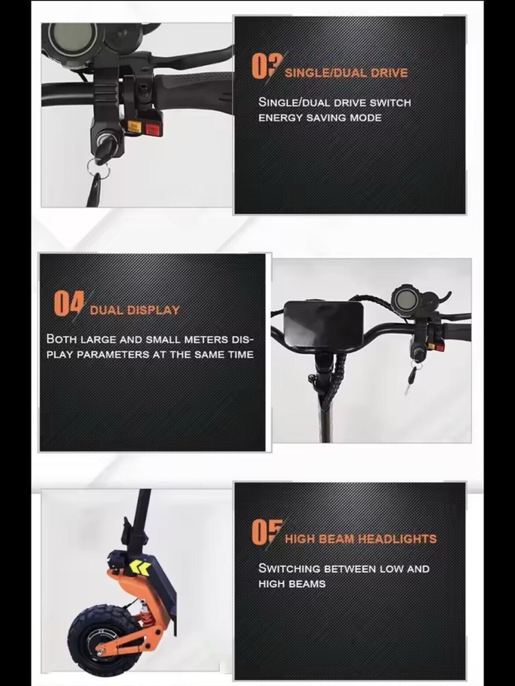 Wireless Headphones Bluetooth Noise Cancelling Stereo Earphones Over Ear Headset 17.09 USD 17.99 USD Free shipping 5% off Car Under LED Strip RGB DIY LED Strip Underbody System Neon Light Kit &Remote US 17.85 USD 18.79 USD Free shipping 5% off Professional German Nail Clippers for Thick Nails, Stainless Steel Nail Clippers 12.99 USD Free shipping German Nail Clipper,Ultra Sharp Stainless Steel Nail Clippers for Men Women US 12.99 USD Free shipping Wireless WiFi Smart Video Doorbell Phone Door Ring Intercom Security Camera Bell 32.0 USD Free shipping Product name: X5-48 black-orange Motor power: single motor 48V1200W Electric control power: built-in sine wave controller 25A Battery capacity: Lithium battery 48V18A Input voltage: AC100V--250V 50-60Hz DC54.6V4A Drive mode: Single drive Maximum speed: 100KG (speed 20KM/H) 70KG (speed 40KM/H) Product material: 6063 aluminum alloy Brake system: XOD oil brake Charging time: 10 hours with standard battery Maximum range: 80KM (flat road, 70KG) Climbing capacity: 10° Tires: 11 inch tires Ambiance: Orange ambiance lights on both sides Shock absorber: spring shock absorber Screen: Large screen + swivel Detailed dimensions Body: 1300*580*1320 After folding: 1270*280*500 Packing: 1300*300*600 MM Packing list: Folding scooter *1 ordinary charger *2 instruction manual *1 Multifunctional wrench *1 with seat *1 You may also like DUKA 24 in 1 Multi-Purpose Ratchet Screwdriver Bits Set DIY Toolbox C1W6wgza4r3 31.99 USD Free shipping FarDriver ND72450 Controller Bluetooth 48 60 72v to 84v. 200A Battery 450A Phase 188.87 USD Free shipping Hitway H5-H6 Electric Scooter LCD Display with Lock 6-Cell Dashboard Accessories 34.19 USD 35.99 USD Free shipping 5% off Screen Display Replacement for Lectric XP 2.0/3.0 Mountain Bike Electric Scoot3I 55.54 USD Free shipping 5600W 60V 27AH Foldable Electric Scooter Adult Dual Motor 11in Off-Road Tire h87 934.48 USD Free shipping Electric Scooter 48v 800W For Adult 10"Off Road Fat Tires Fast Speed USA MAX vV 421.0 USD Free shipping