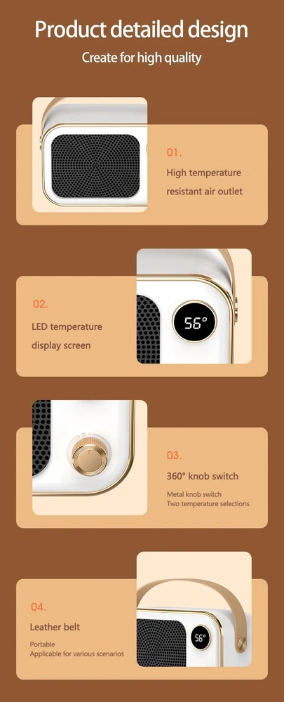 Free and fast shipping , shipping take up 1-7 Business Days 30 Day Return Accepted EASY PAYMENT via PayPal, Credit Card, PayPal Credit, Google Pay... 1200w Heater Portable Electric Plastic Multicolor Free Stand Switch Plug-in Home Main features 1. This space heater is with two temperature selection: 56℃, 75℃ 2. Overheating temperature protection, safe use & worry free. 3. Dumping automatic power off, safe use & worry free. 4. PTC ceramic heating, quick heating in 3 seconds. 5. Low noise operation, good sleep every night. 6. A portable heater, applicable for various scenarios. 7. Product size is about 207*133*110mm, net weight is about 680g. Package Details Electric heater*1pc, user manual*1pc About Shipping 1.Worldwide shipping is available (with some exceptions, including APO/FPO). 2.Orders will be processed as soon as possible after verification of payment. 3.We only ship to the confirmed order address in . If you want to change the shipping address, please do inform us before order shipment. 4.The actual delivery time is provided by the carrier and excludes weekends and holidays. The delivery time may vary, especially during the holiday season. 5.If you have not received your parcel by the estimated delivery date, please contact us. We will track the shipment and get back to you as soon as possible. 6.Due to stock status and time differences, we will ship your item from our first available for prompt delivery. 7.The buyer is responsible for any tax or duty charges. About Returns 1.If there are any problems with your order or products, please contact us within 7 days. 2.Note that the images may not represent the actual item and are for your reference only. 3.Products are measured by hand, so there may be a small margin of error. 4.If you have received your item, please contact us and return it within 15 days for a replacement or money back. 5.All returned items must be in the original packaging and you must provide us with the shipping tracking number, specific reason for the return, and your order ID. 6.Return shipping cost is paid by the buyer. About Feedback 1.Your confirmation will be highly appreciated after your receiving the items. 2.When you have received the product, if you are happy with our product and service, your positive feedback like 5 stars will be highly appreciated. 3.BEFORE you leave a negative feedback. PLEASE do contact us at first, and we will do our best to help you solve the problem and make you satisfied. 4.If you have any further questions, please contact us through . About Payment 1.We accept Alipay, Visa, Mastercard, , Qiwi Wallet and Bank Transfer. All payments shall be processed through the secure payment processor Escrow. 2.Payment shall be made within 3 days when you place the order, or it will close automatically. If you can't checkout immediately after the auction closes, please wait for a few minutes and try again, thanks. REVIEWS The product came very well packaged. I'm very happy. thank you for everything. Seller strongly recommended. This is great! I definitely recommend! Product looks amazing Delivery was fast. Excellent seller, great communication. I advise everyone to buy it!