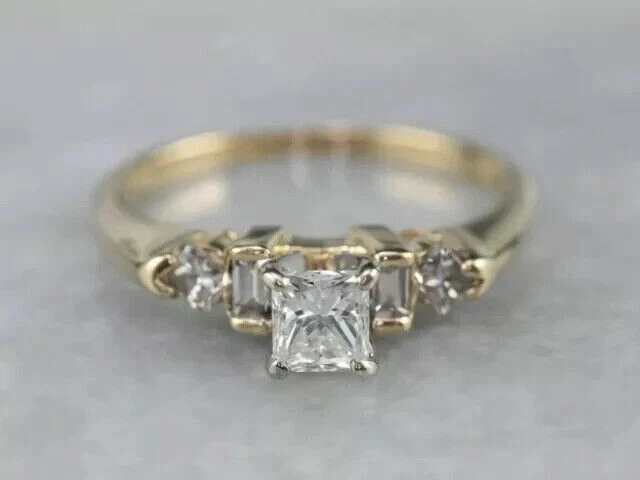 1.20Ct Princess Cut Simulated Diamond Engagement Ring In 14k Yellow Gold Plated