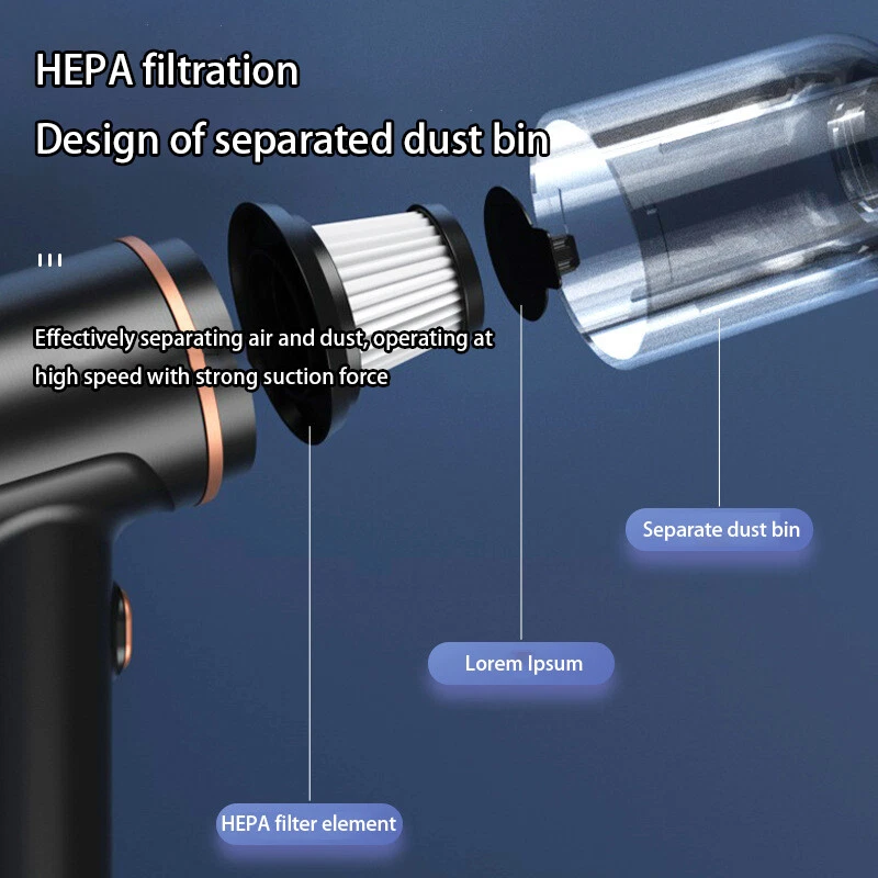 Specification: Name: Wireless Vacuum Cleaner USB Charging Handheld Portable Car Vacuum Cleaner Colour: Silver Working temperature: - 20℃~+50℃ Rated voltage: DC 12V Rated power: 120W Rated speed: 45000 (r/min) Vacuum suction power: about 12000 Pa Charging method: USB charging Battery used: Built-in rechargeable lithium battery Battery capacity: 1500 mAh Charging time: about 2h Battery life: about 30 minutes Product size: 18.9*14.9*3.6cm Product net weight: 380g Package list: 1*vacuum cleaner 2*Air extraction nozzle 2*Brush 1*Filter (included with product) 1*USB charger 1*Instruction manual Payment: We only accept Payoneer. Payoneer is the only online payment method we accept. Please make sure you have a valid/confirmed Payoneer account prior bidding. And please make sure that your Payoneer registed address is the same with your eBay registed address. Shipping: It usually takes about 10-30 working days to arrive for economy shipping which not including tracking number; 7-15 working days for standard shipping which including tracking number. Transit time may be a little delayed because of the bad weather and customs inspection. If you do not receive your item within 30 working days since payment finished, please contact us immediately for further assistance. PS: We also offer faster shipping service (3-5 days to deliver), such as DHL,EMS, but buyers need to pay for the extra shipping cost. Please contact us if you need it. Return Policy: If you are dissatisfied with our item or service, then please follow the good eBay practice to contact us by eBay message before leaving any feedback. We are committed to resolve all issues in a friendly and satisfactory manner. We always reply to eBay messages within 1-2 business days. If you do not get a response from us, then please check your eBay message. Only unused, undamaged and original condition item can be qualified for a return. Feedback: We strive for 100% customer satisfaction! Positive Feedback is very important to us. If you have any questions, please feel free to contact us instead of leaving negative feedback. We will reply your email within 24 working hours.